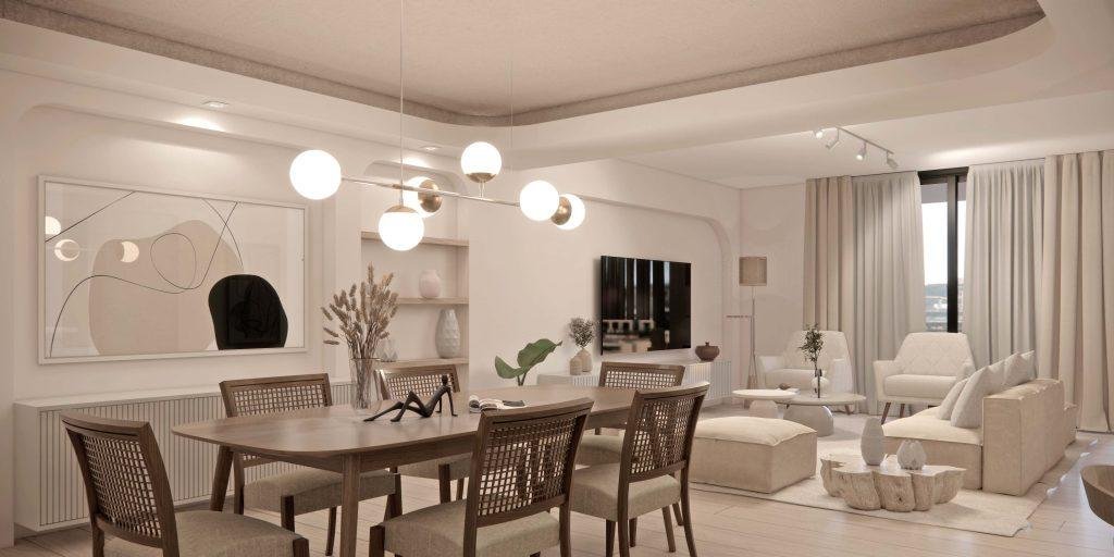 • LIVING Y DORMITORIO: Porcelanatos o pisos vinilicos y pre instalación para aire acondicionado. Placares completos con frente de melamina 18 mm y kit aluminio para sistema corredizo. En unidades de 2 y 3 dormitorios calefacción por radiadores y agua caliente a través de caldera dual.