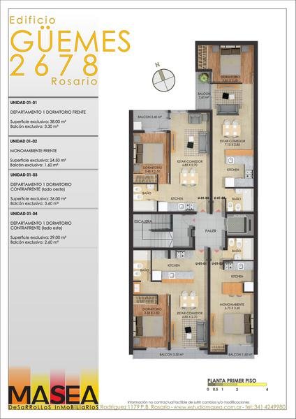 Edificio de 4 pisos con ascensor y azotea con terrazas exclusivas con parrilleros. Excelentes deptos 1 dormitorios. Oportunidad de inversión