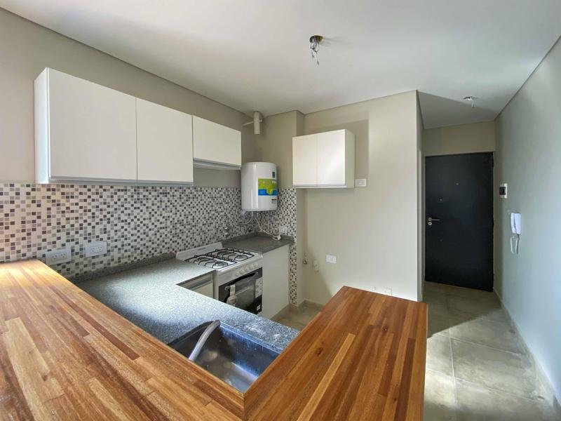 Construcción moderna y con un diseño único. Unidades con excelentes terminaciones, pisos de porcelanato de 1º calidad, pisos de cerámica de alto tránsito (primera calidad) en cocina y baños, en dormitorios pisos flotantes con zócalo, frente de placar de melamina blanca y kit de aluminio para sistema corredizo. Baños con griferías FV, lavatorio línea Mónaco, duchas. Bachas de acero inoxidables en cocinas, muebles de cocina completos con bajo mesada y alacena en melamina color blanco y perfil de aluminio anodizado, mesada gris perla. Agua caliente con calefón, cocina instalada, pico de gas para estufa.