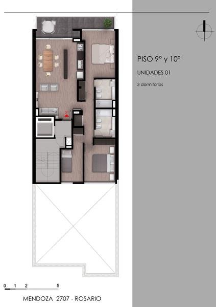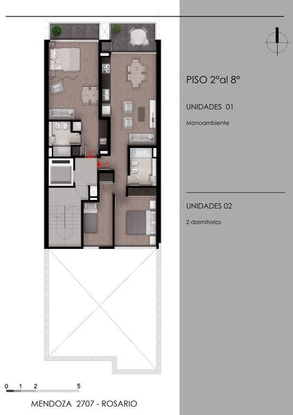 Porcelanato 60cm x 60cm o similar de primera calidad en palieres y áreas comunes en color gris claro. Las escaleras y locales de servicios, tendrán terminaciones de cemento alisado. Las unidades funcionales tendrán piso vinílico de alta resistencia simil madera de primera calidad. Zócalos pre pintados blancos.