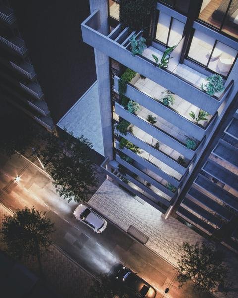 Edificio desarrollado en planta baja y 10 pisos, con local comercial, cocheras, patio de uso común con pileta, balcones exclusivos y ascensor de última generación. Un total de 28 unidades de departamentos compuestos por monoambientes, un dormitorio y unidades de dos dormitorios los cuales cuentan con terrazas exclusivas con acceso propio.