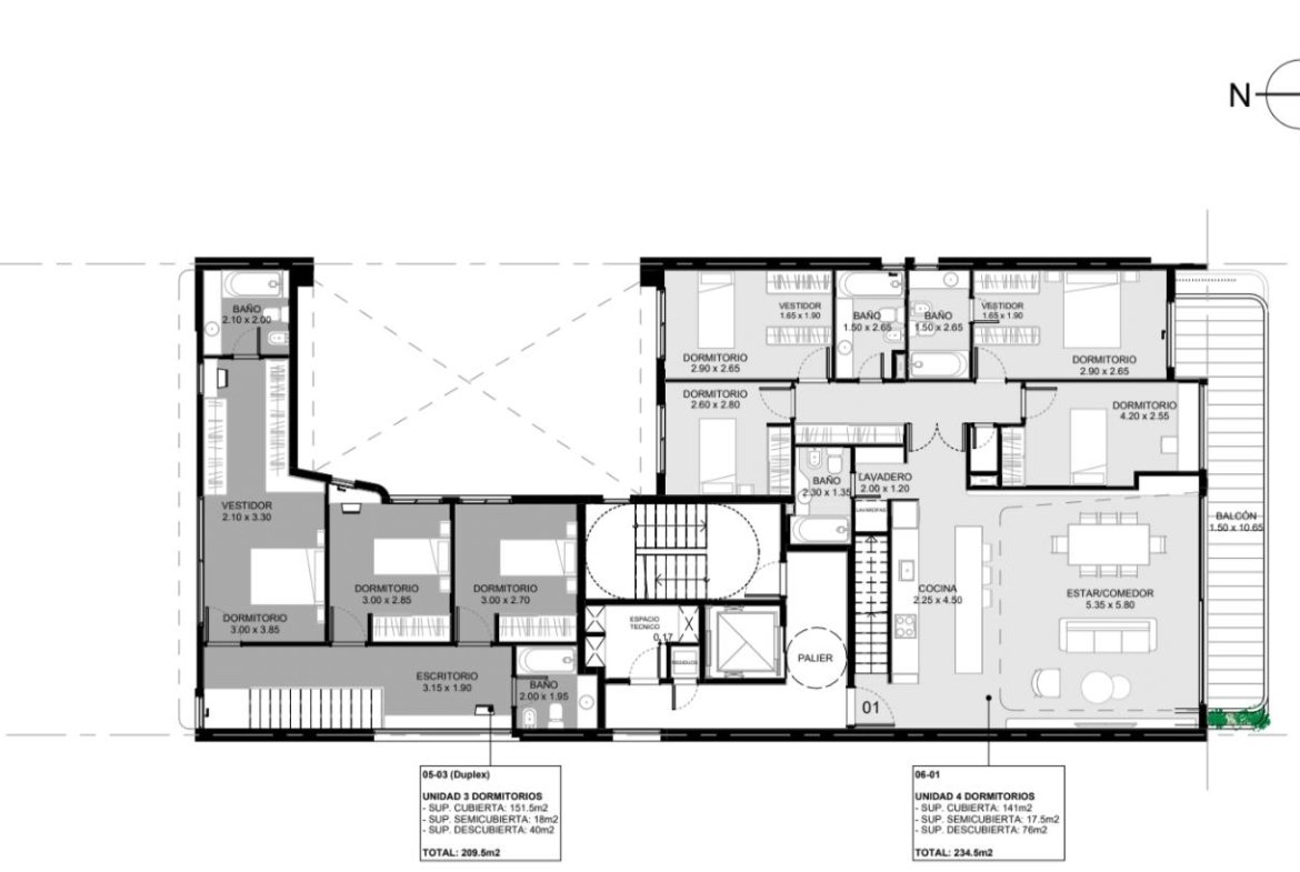 • Cochera Vehicular: Para autos medianos: 2.50×5.00m (C01 a C05 en EP +1.42 y C08 a C12 en SS).