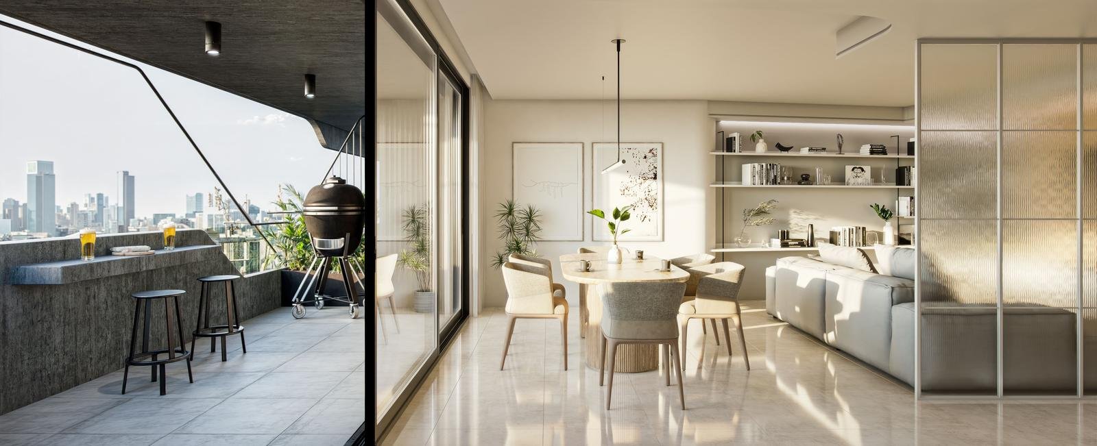 A su vez, el emprendimiento contará con una amplia gama de amenities que incluyen piscinas, quincho y gimnasio, el edificio asegura el máximo confort y satisfacción para sus residentes. Contará con un área de relax equipada con mobiliario confortable y un fogonero, brindando un espacio tranquilo y acogedor para relajarse y disfrutar de momentos de calma al aire libre.
