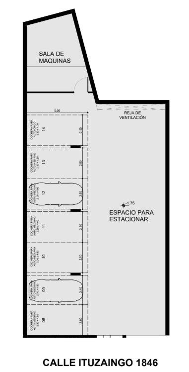 Para autos chicos: 2.30×4.20m (C06, C07 en PB +1.42 y C13, C14 en SS).