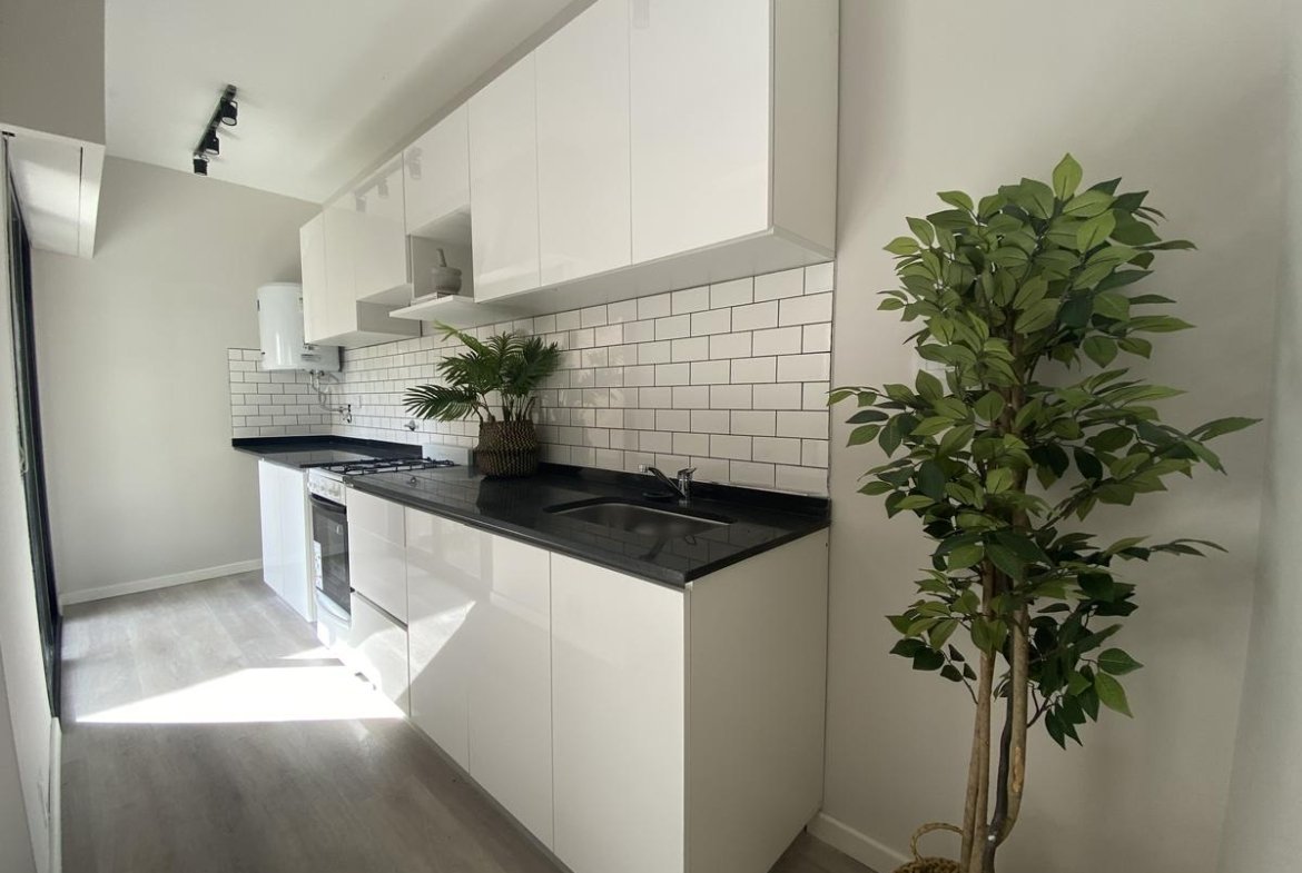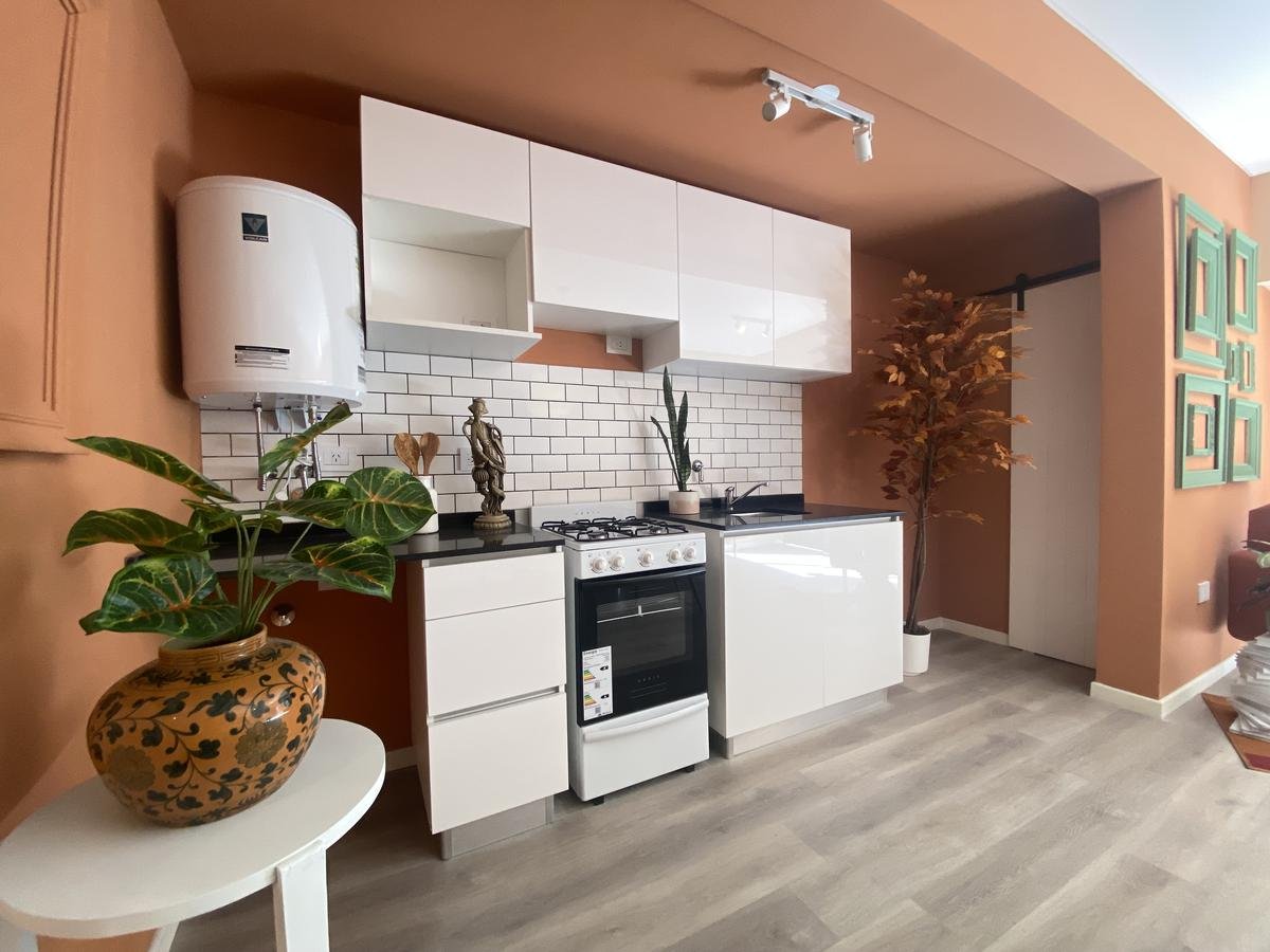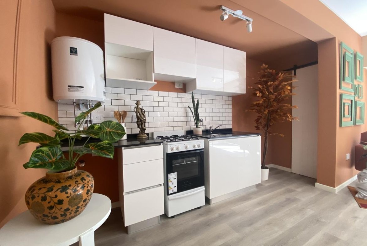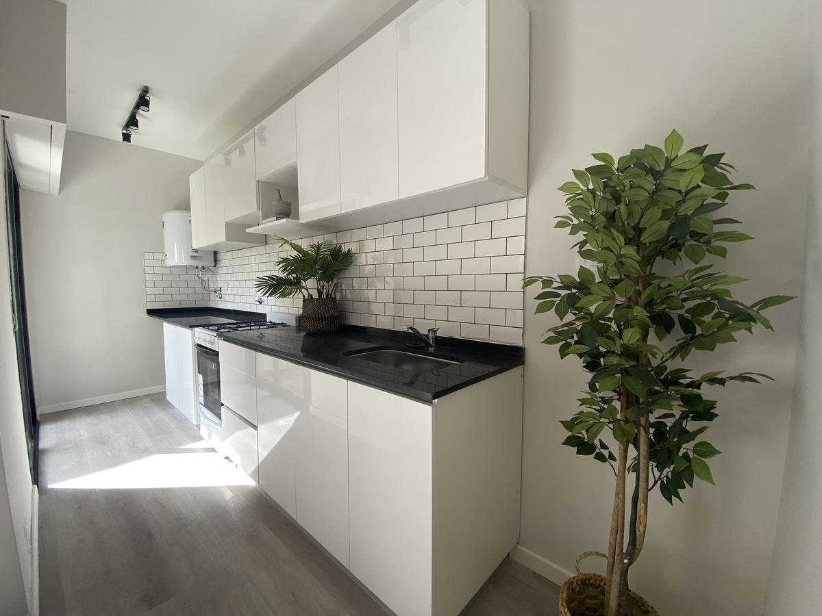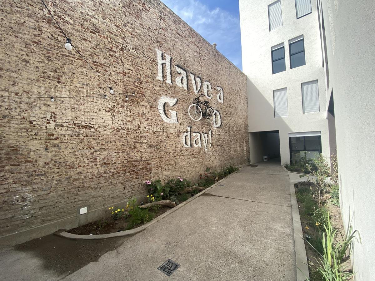 Edificio de pasillo con un diseño de vanguardia, acceso a gran patio central intervenido arquitectónicamente, compuesto por PB + 4 pisos, orientación perfecta al norte con gran luminosidad. Unidades a estrenar, con excelentes terminaciones, cuentan con acceso por puertas de acero laminado, aberturas linea Modena, pisos vinílico símil madera, todo con su correspondiente zócalo, frente de placar de melamina, baños con revestimientos cerámicos de primera calidad, duchadores, loza sanitaria y griferías de primeras marcas con vanitory y espejo. Desarrollo de cocina completo con mobiliario en bajo mesada y alacenas, bacha de acero inoxidable Johnson, griferías FV y mesada granito negro Brasil, cocina a gas.