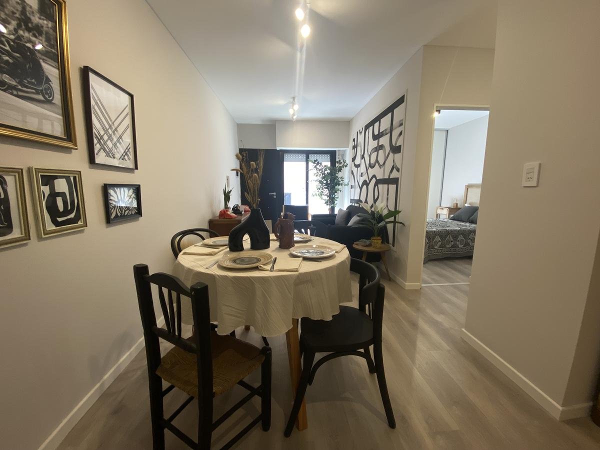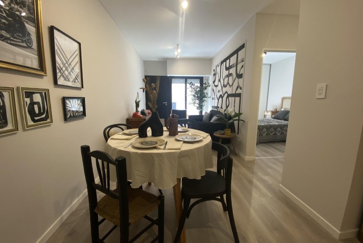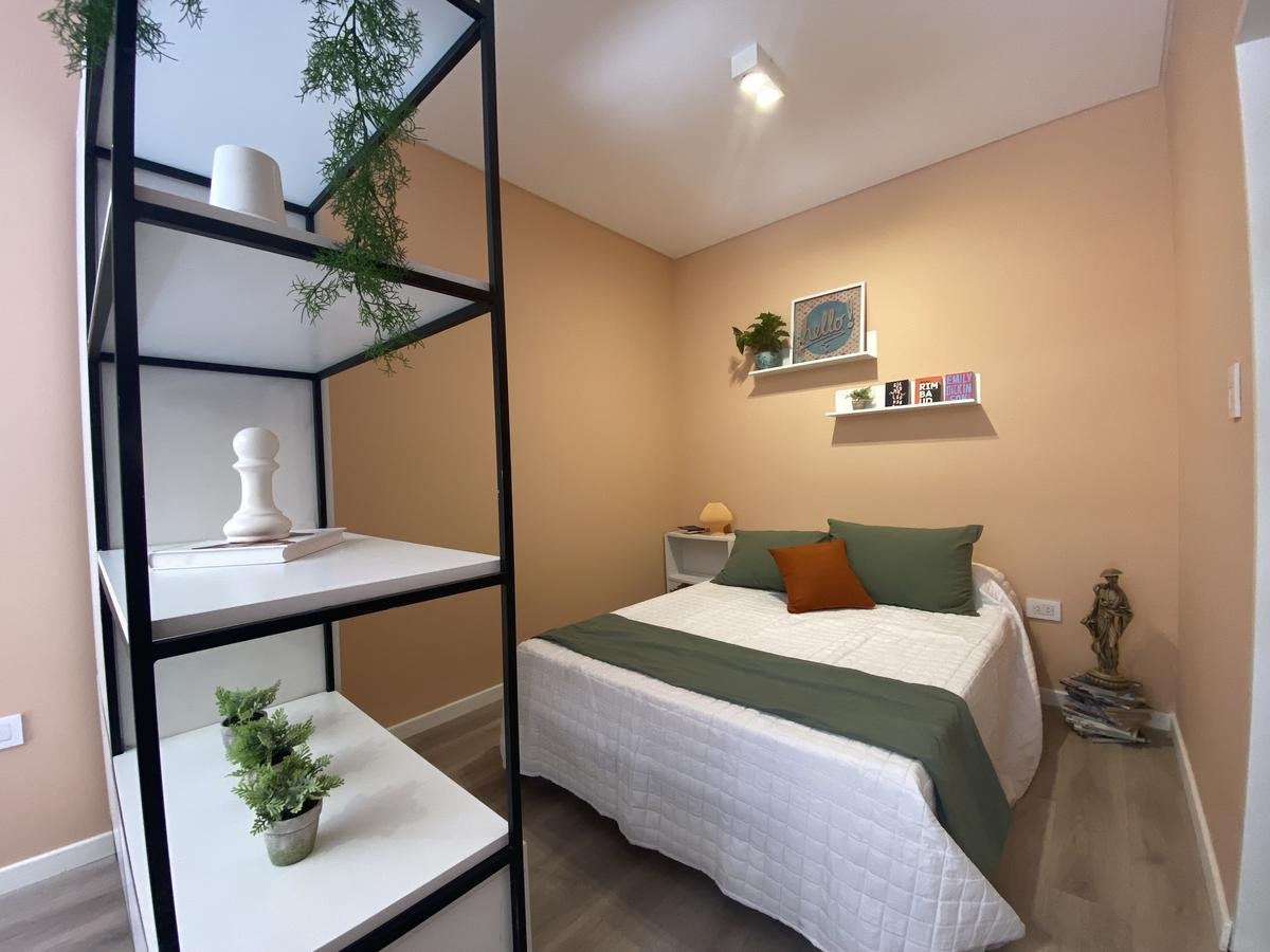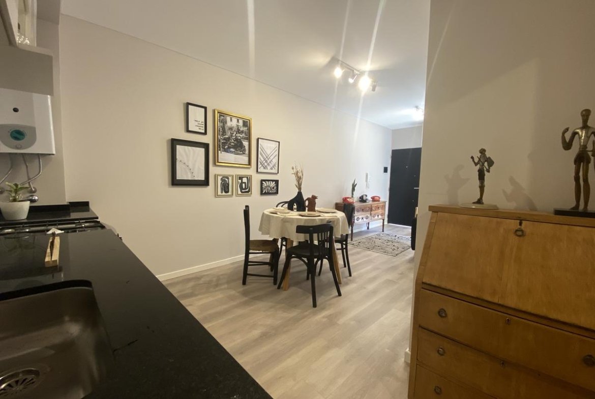 Edificio de pasillo con un diseño de vanguardia, acceso a gran patio central intervenido arquitectónicamente, compuesto por PB + 4 pisos, orientación perfecta al norte con gran luminosidad. Unidades a estrenar, con excelentes terminaciones, cuentan con acceso por puertas de acero laminado, aberturas linea Modena, pisos vinílico símil madera, todo con su correspondiente zócalo, frente de placar de melamina, baños con revestimientos cerámicos de primera calidad, duchadores, loza sanitaria y griferías de primeras marcas con vanitory y espejo. Desarrollo de cocina completo con mobiliario en bajo mesada y alacenas, bacha de acero inoxidable Johnson, griferías FV y mesada granito negro Brasil, cocina a gas.