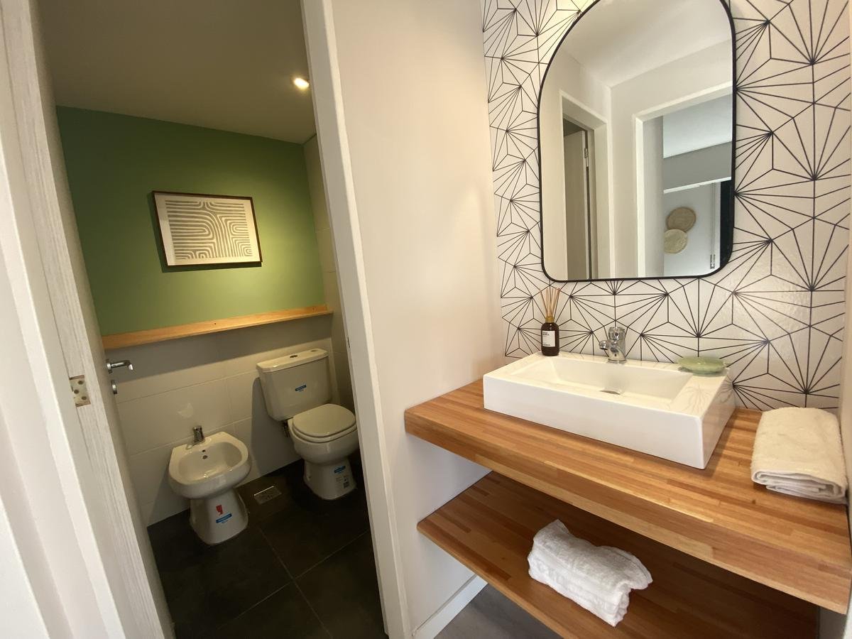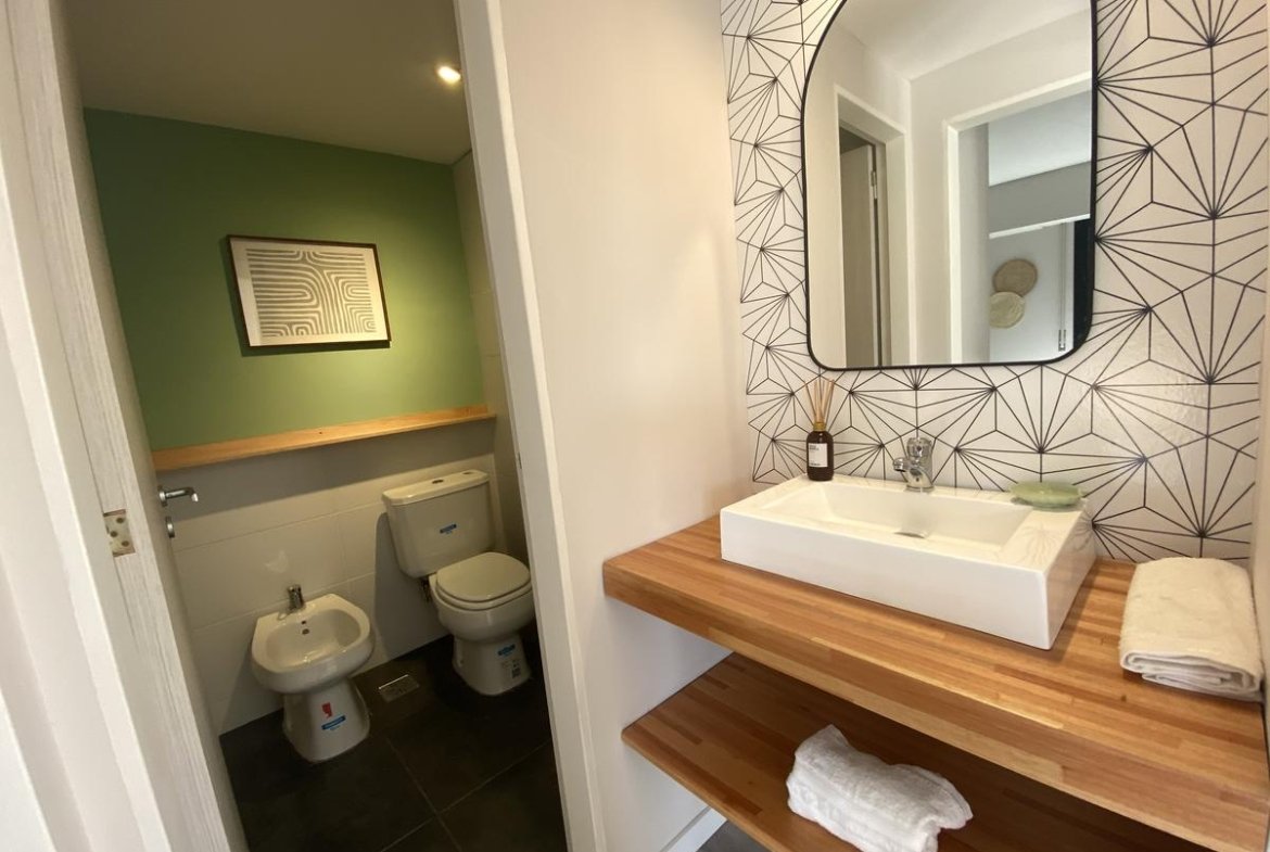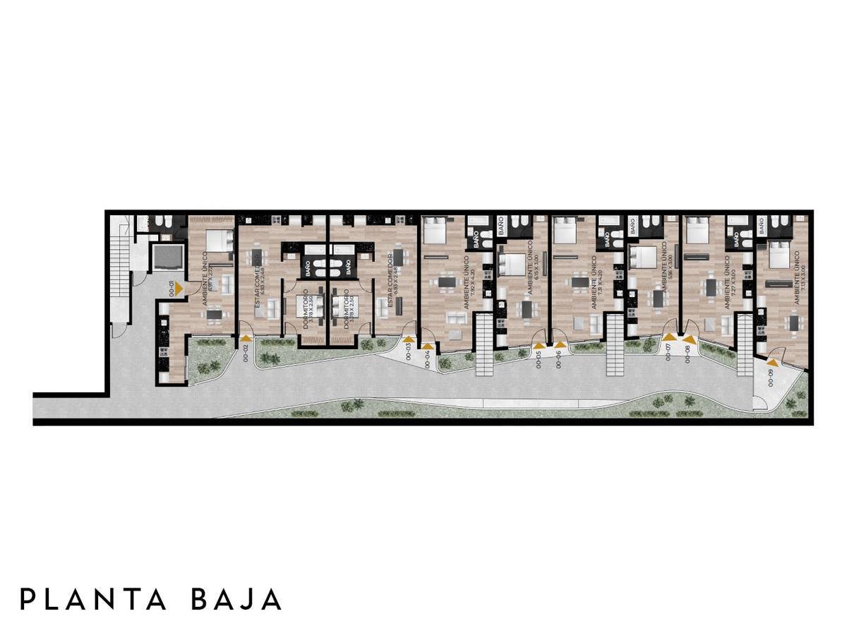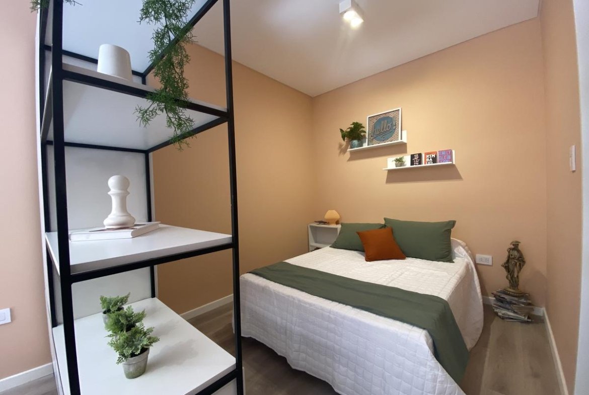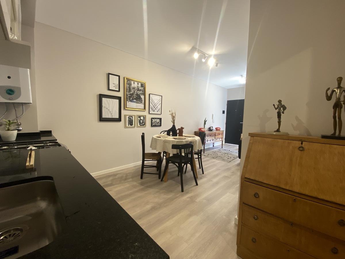 Edificio de pasillo con un diseño de vanguardia, acceso a gran patio central intervenido arquitectónicamente, compuesto por PB + 4 pisos, orientación perfecta al norte con gran luminosidad. Unidades a estrenar, con excelentes terminaciones, cuentan con acceso por puertas de acero laminado, aberturas linea Modena, pisos vinílico símil madera, todo con su correspondiente zócalo, frente de placar de melamina, baños con revestimientos cerámicos de primera calidad, duchadores, loza sanitaria y griferías de primeras marcas con vanitory y espejo. Desarrollo de cocina completo con mobiliario en bajo mesada y alacenas, bacha de acero inoxidable Johnson, griferías FV y mesada granito negro Brasil, cocina a gas.
