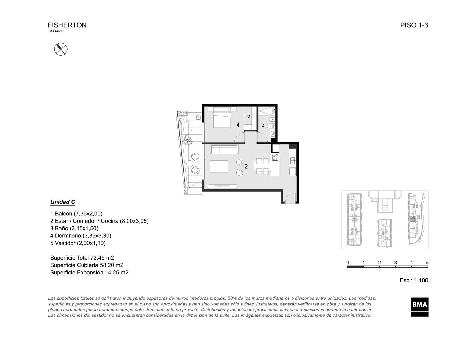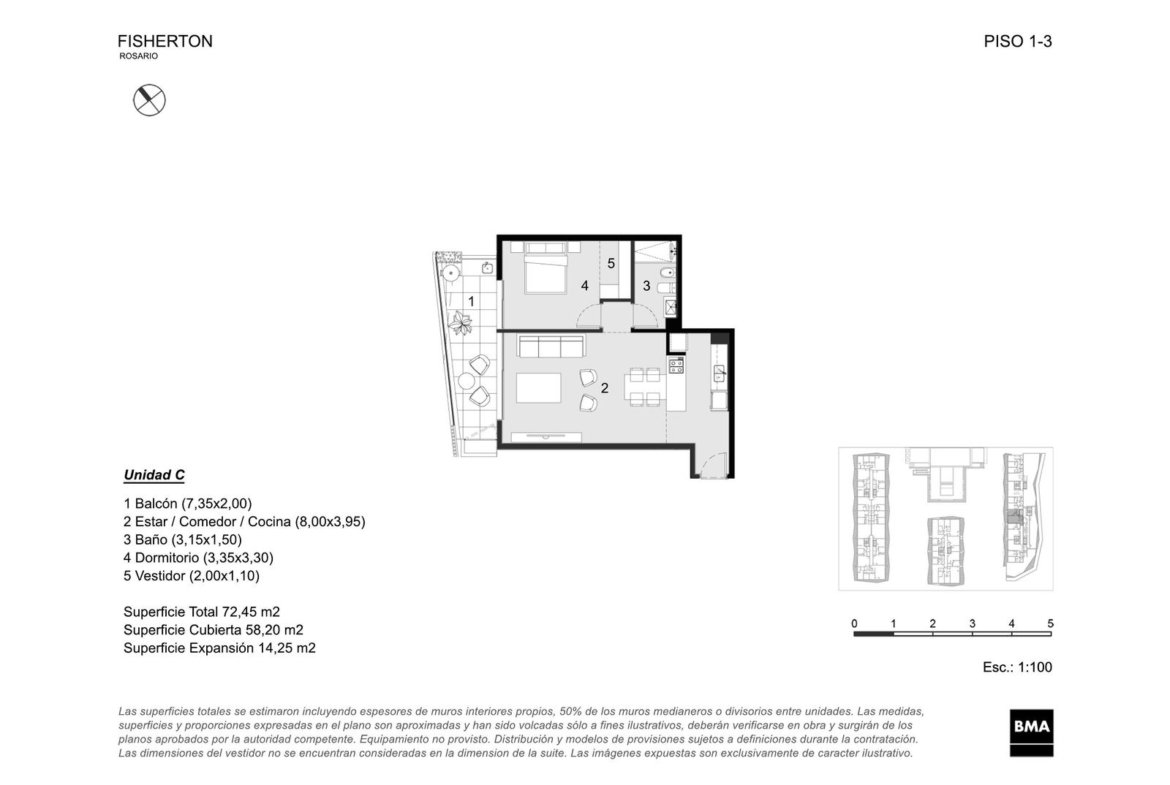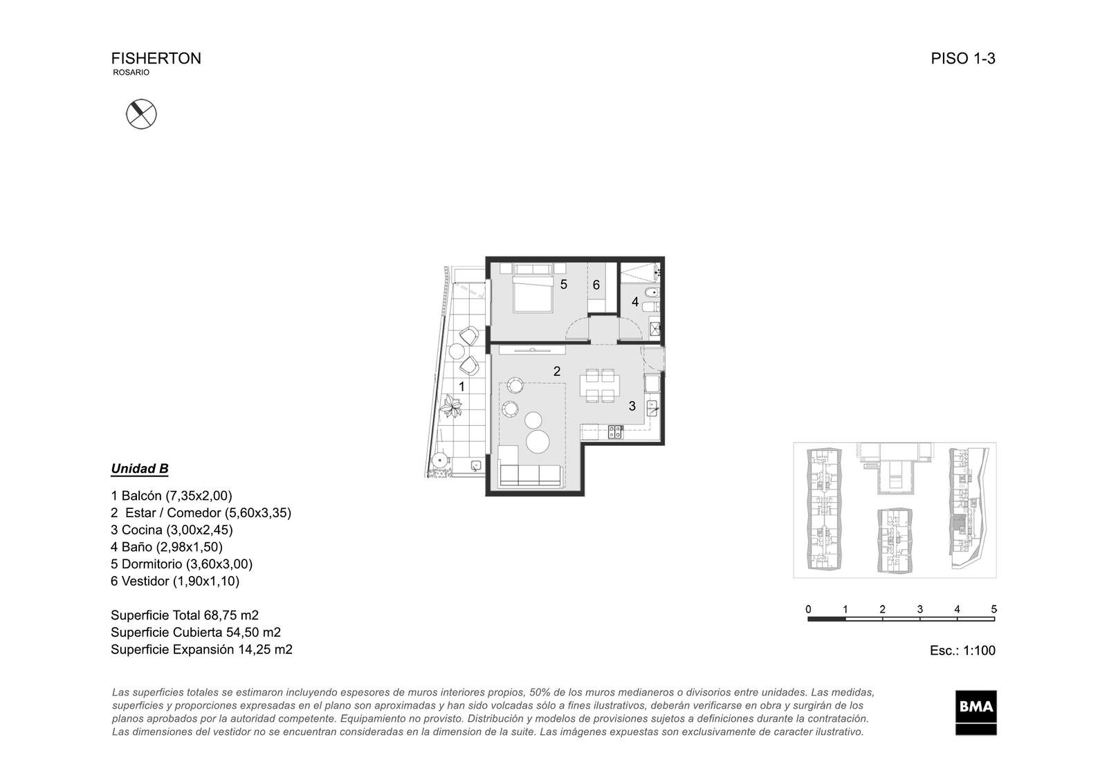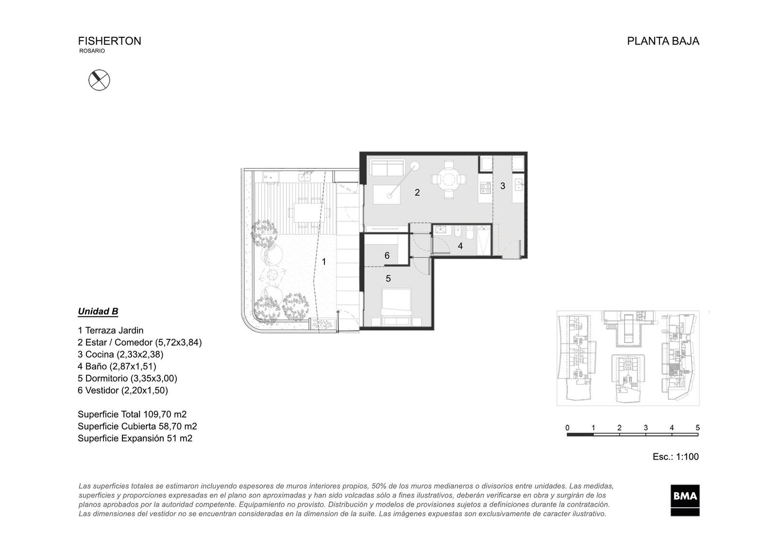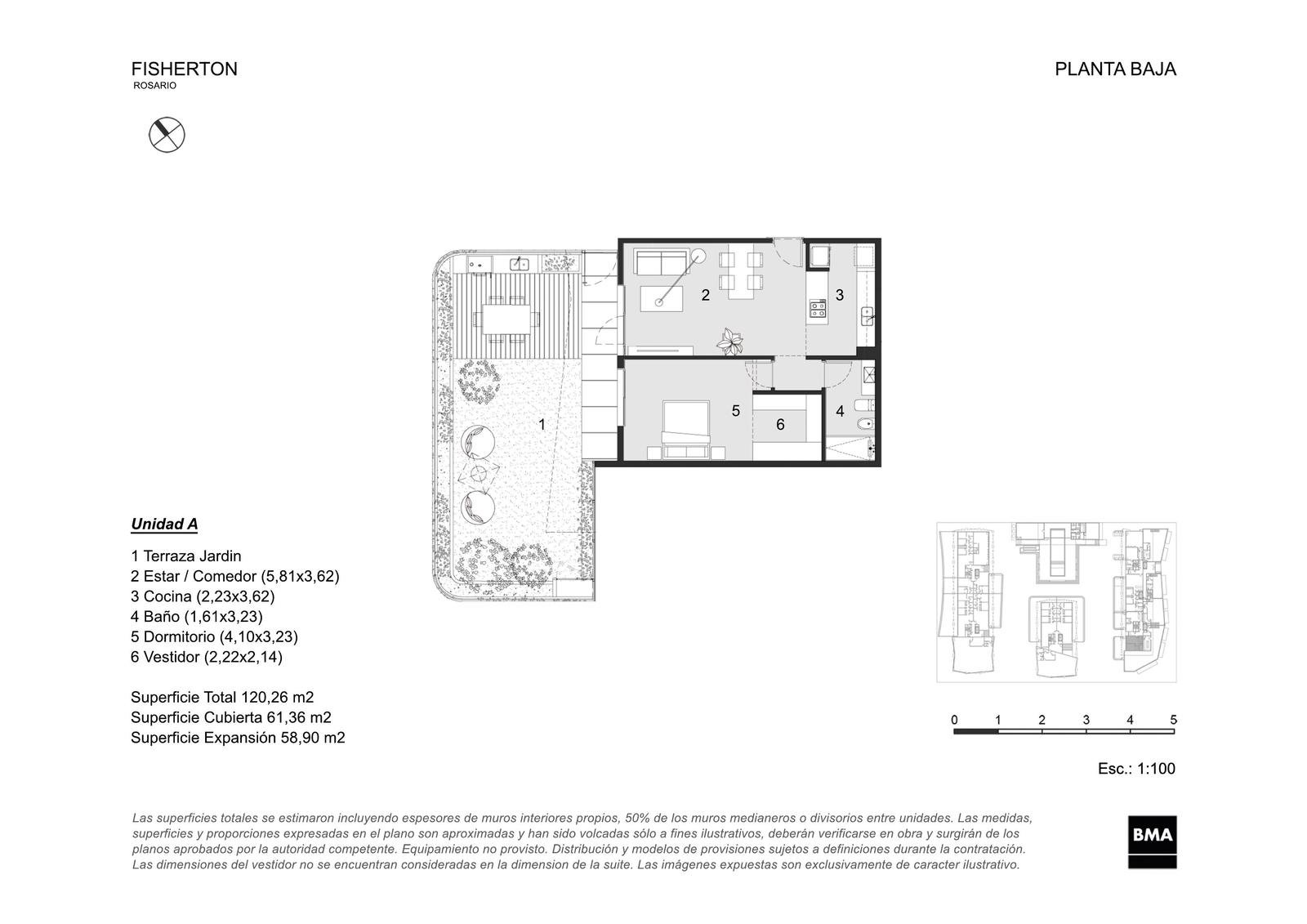 Departamentos: se prioriza la amplitud de la superficie de uso cubierta, añadiéndose terrazas de uso exclusiva para algunas unidades, y otras con amplios balcones con vistas a los espacios comunes verdes del desarrollo.