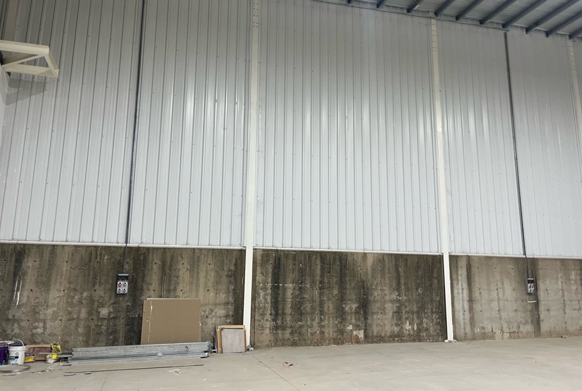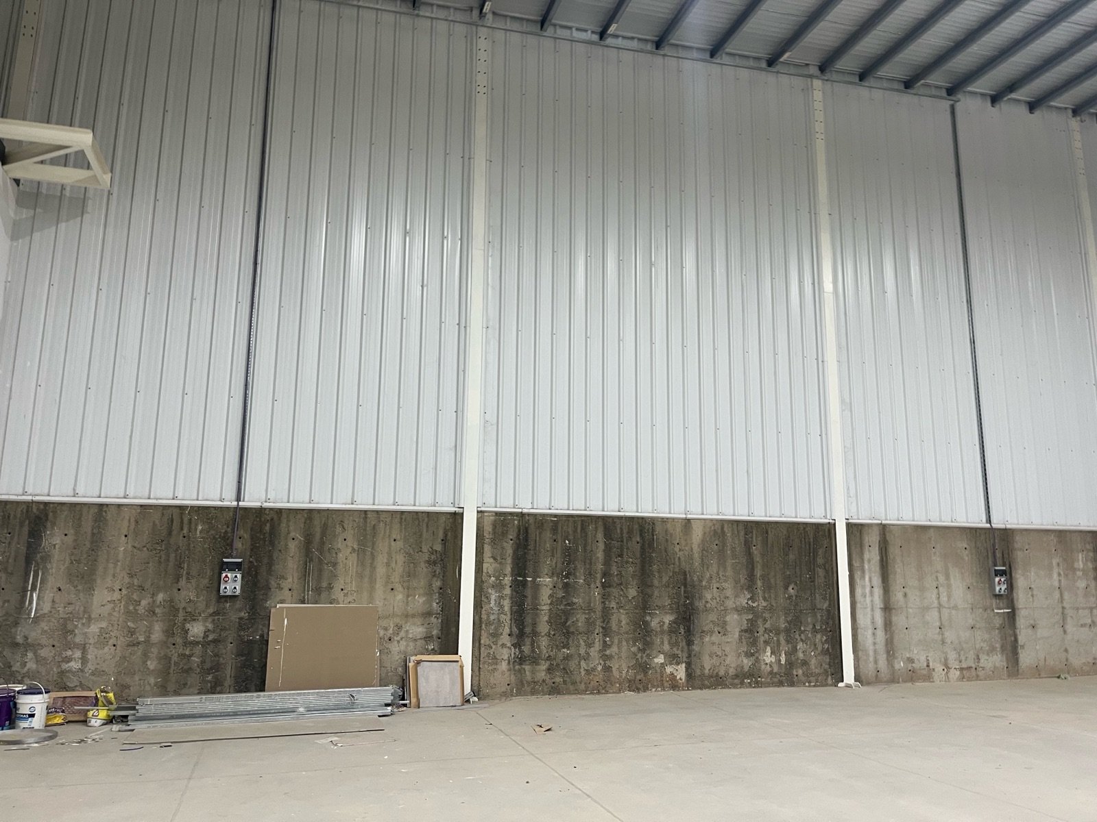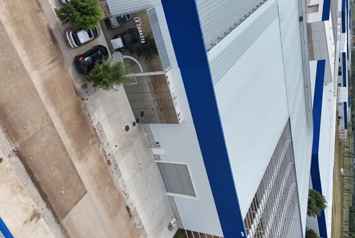 La nave presenta dimensiones aproximadas de 33,60 m x 24,50 m y altura libre interior de 6,10 m, con altura máxima cercana a 8–9 m en cumbrera, estructura metálica y cubierta de chapa con pendiente para correcto escurrimiento pluvial.