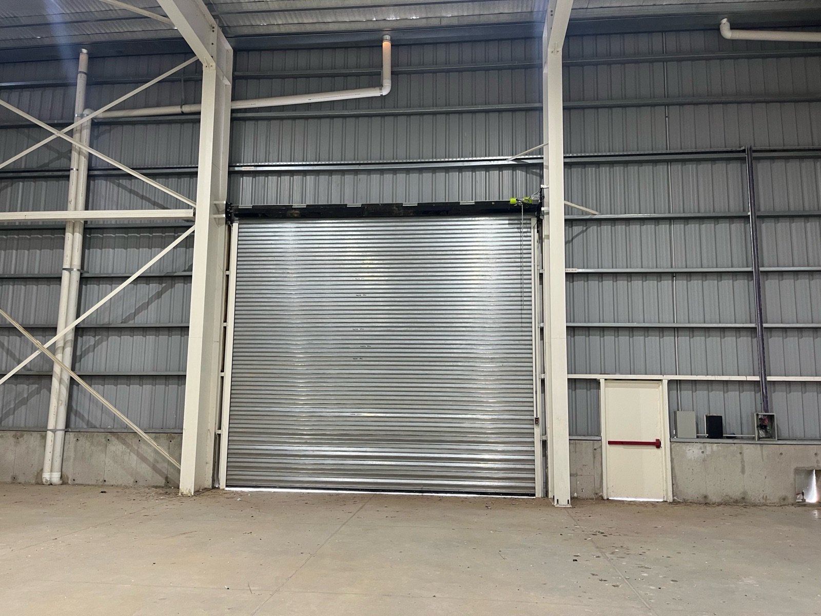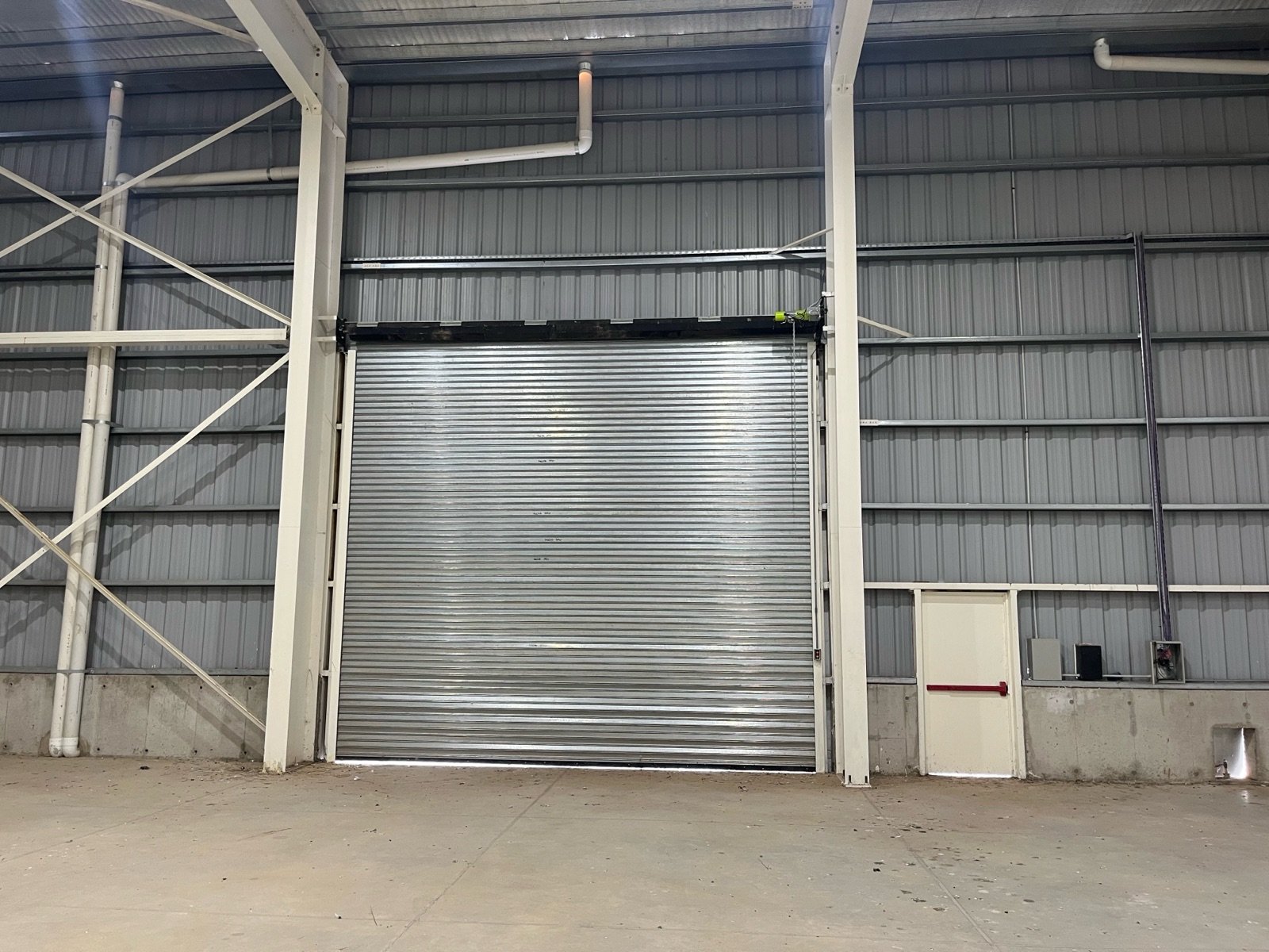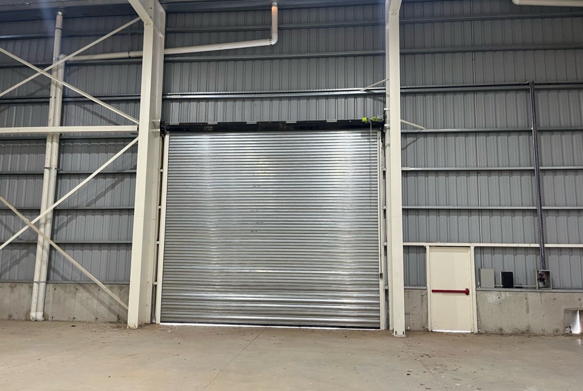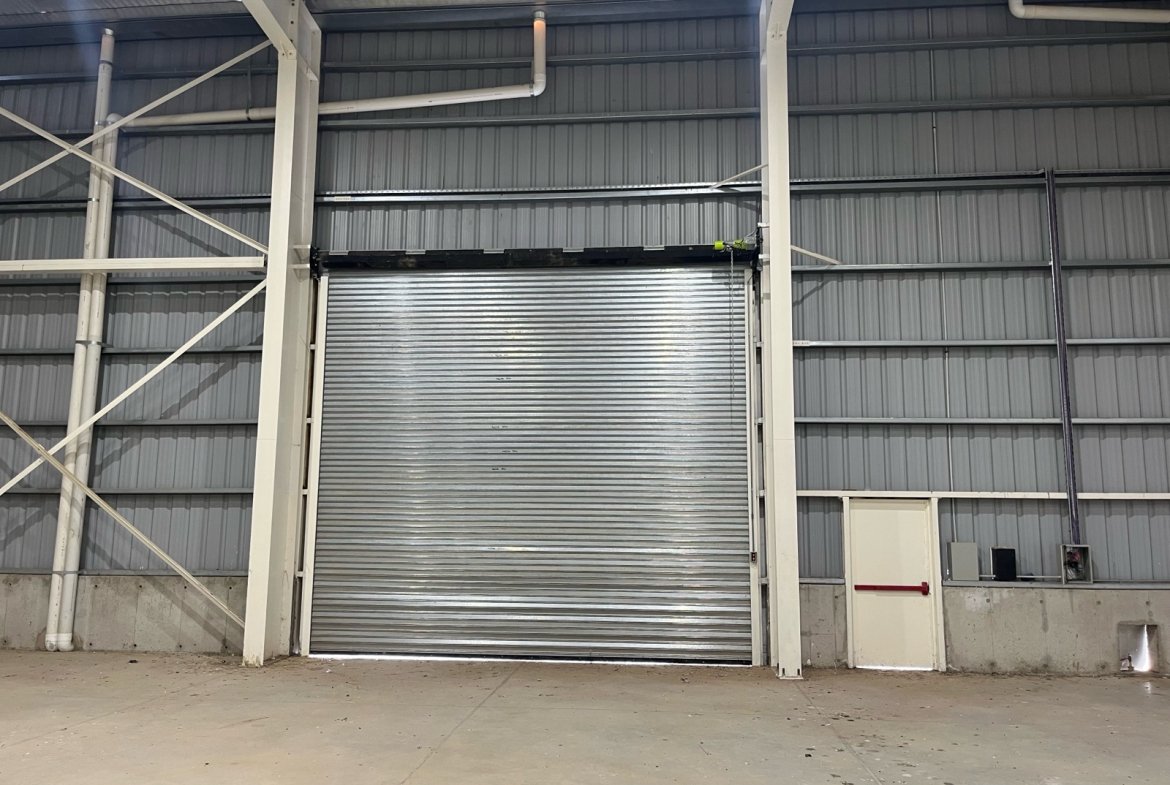 Cuenta con portón industrial enrollable de gran dimensión (5,50 m de ancho x 5,00 m de altura) que permite el ingreso de camiones y operaciones cómodas de carga y descarga.