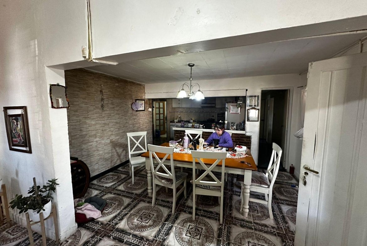 Posee ingreso principal por calle Bs.As. y por esquina da ingreso a patio y cochera donde actualmente funciona un almacén. Seguido al ingreso principal daremos con un living-comedor junto a cocina semi integrada por medio de una barra desayunadora, siguiendo al fondo de la propiedad daremos con 3 habitaciones, 2 baños y acceso al patio donde tendremos el lavadero y escalera para ingresar a la planta alta.