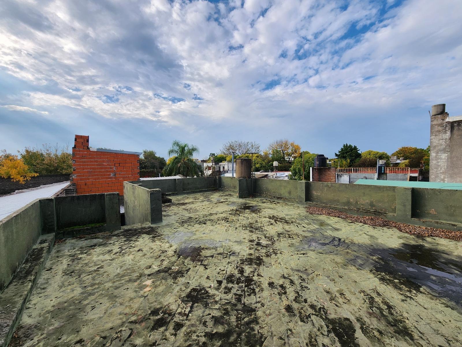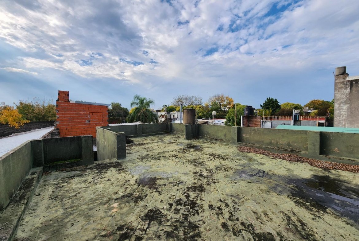 La propiedad dispone de un dormitorio al frente con ventilación natural hacia la calle y el segundo dormitorio con ventilación hacia el patio del inmueble. Baño con sector de ante baño sin sanitarios. A su vez, la casa presenta un patio trasero dispuesto en “L” semicubierto con techos de chapa y parrillero de ladrillo con mesada y espacio técnico para lavadero. Desde allí, se puede acceder a la terraza de la propiedad que es de libre tránsito.