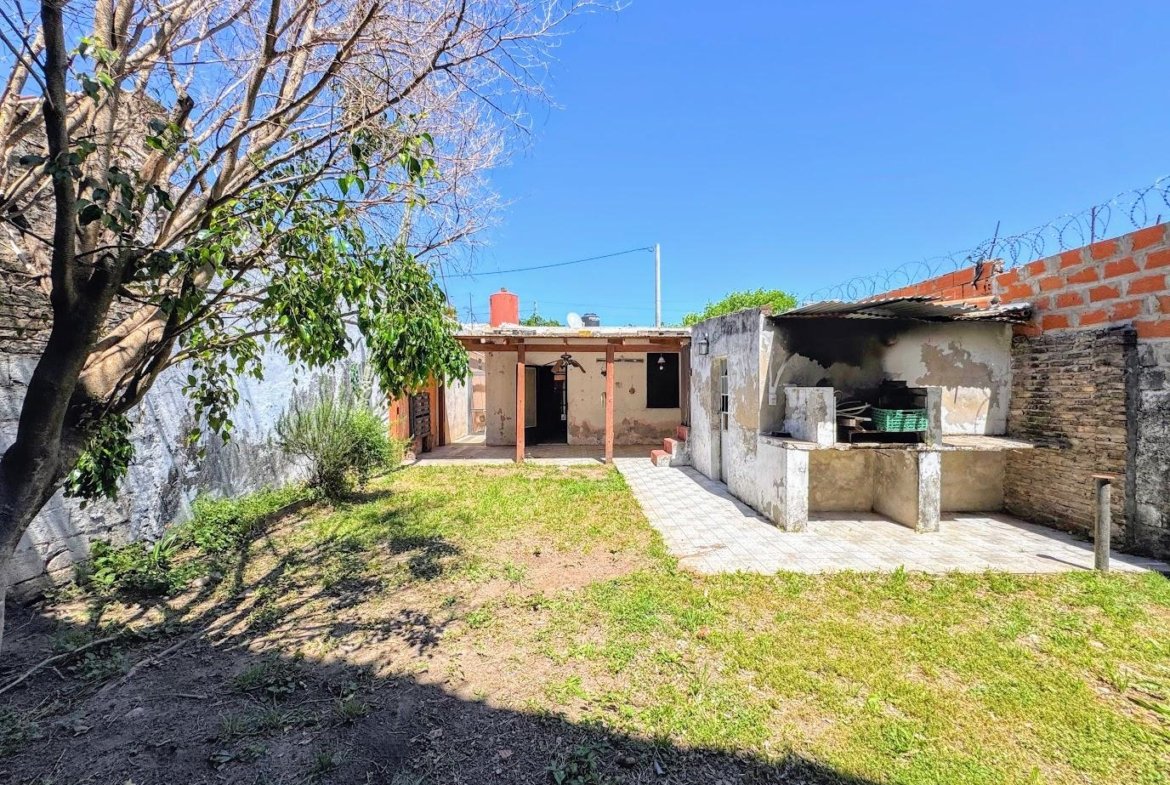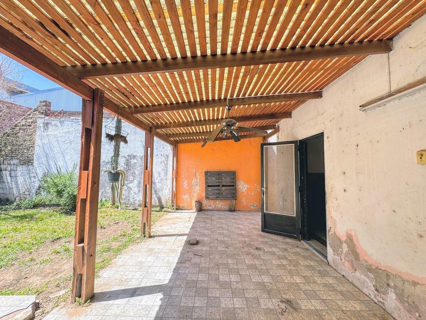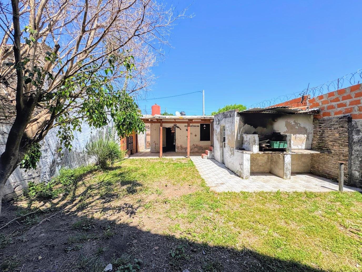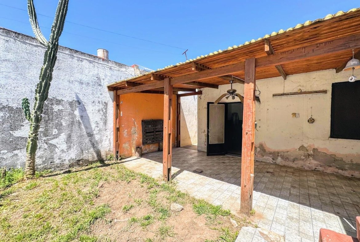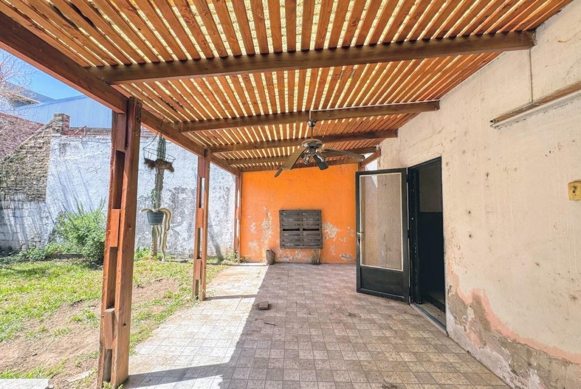 Casa al frente desarrollada en una planta. Al ingresar nos encontramos con un patio de recepción y una cochera doble cubierta (con techos de chapa) y portón eléctrico. A continuación, se presenta otro patio seco y una galeria que nos comunica a los dormitorios de la propiedad. Dormitorio principal en suite, de amplias dimensiones con ventilación hacia el patio delantero, lo cual le brinda muy buen ingreso de luz natural. Segundo dormitorio a refaccionar.