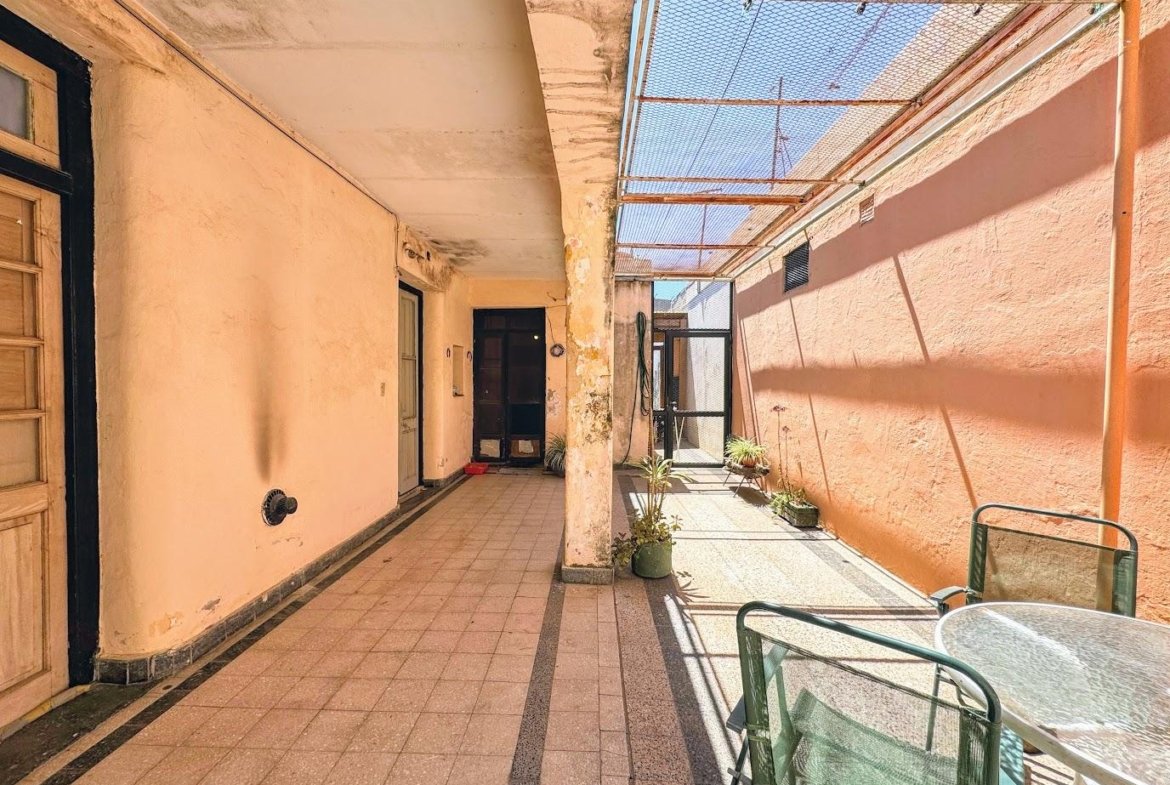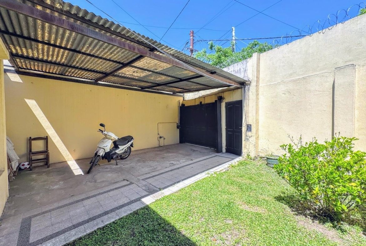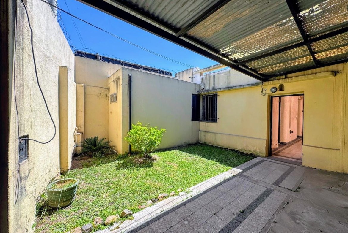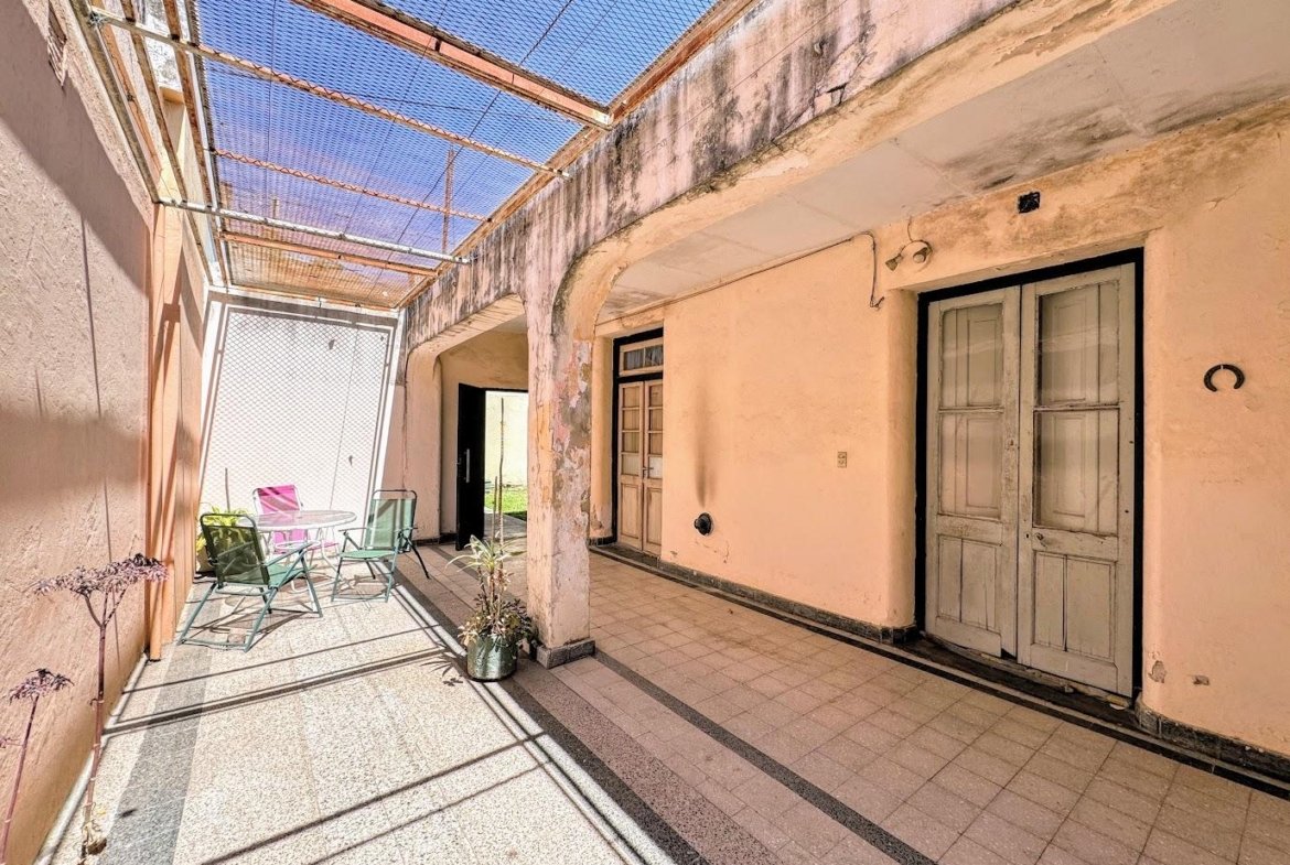 Casa al frente desarrollada en una planta. Al ingresar nos encontramos con un patio de recepción y una cochera doble cubierta (con techos de chapa) y portón eléctrico. A continuación, se presenta otro patio seco y una galeria que nos comunica a los dormitorios de la propiedad. Dormitorio principal en suite, de amplias dimensiones con ventilación hacia el patio delantero, lo cual le brinda muy buen ingreso de luz natural. Segundo dormitorio a refaccionar.