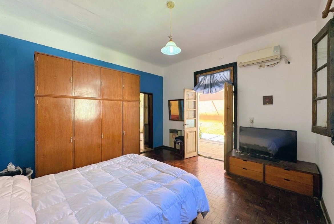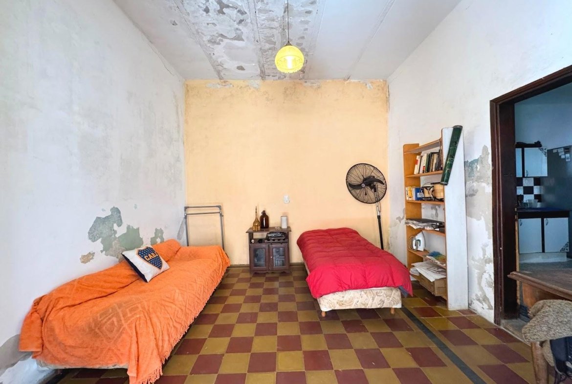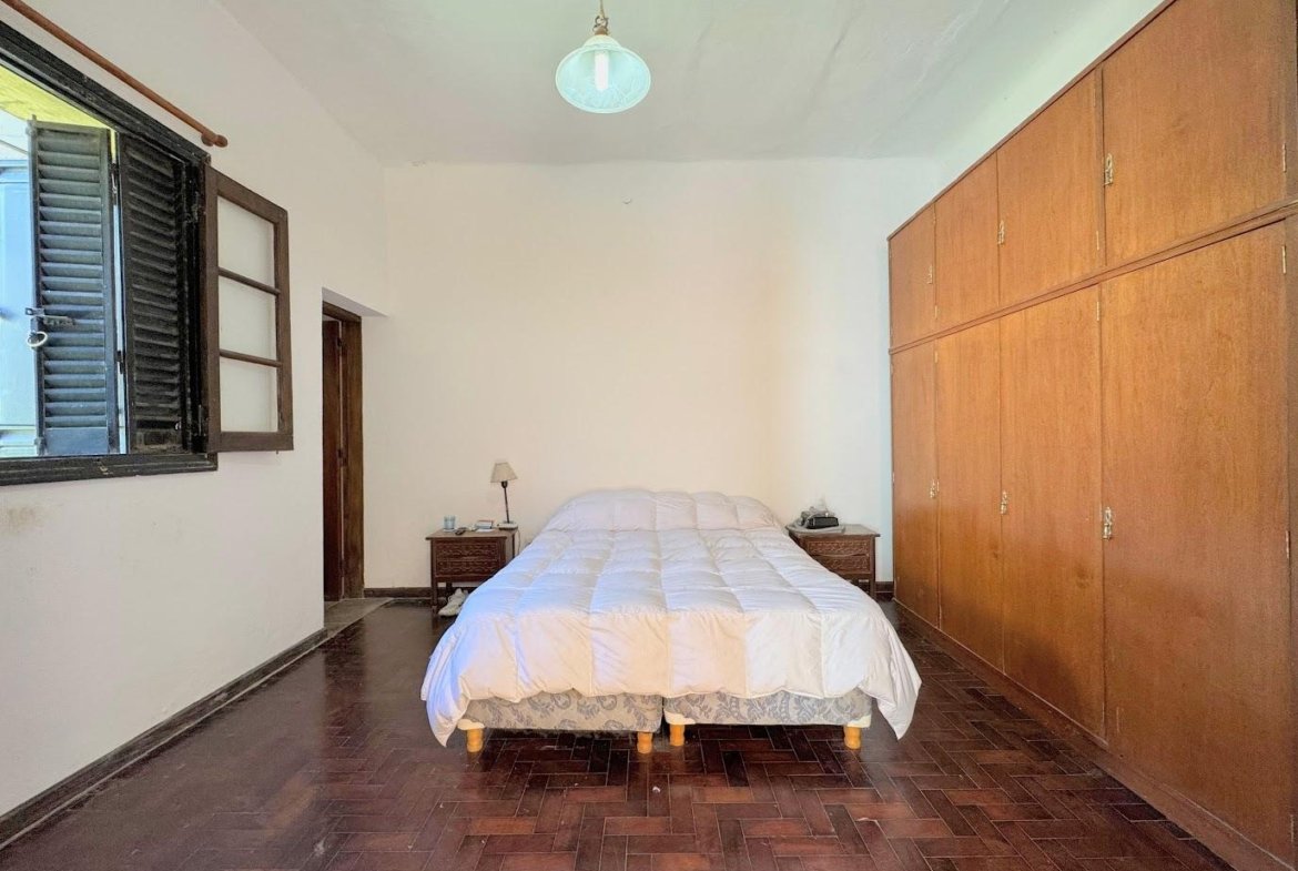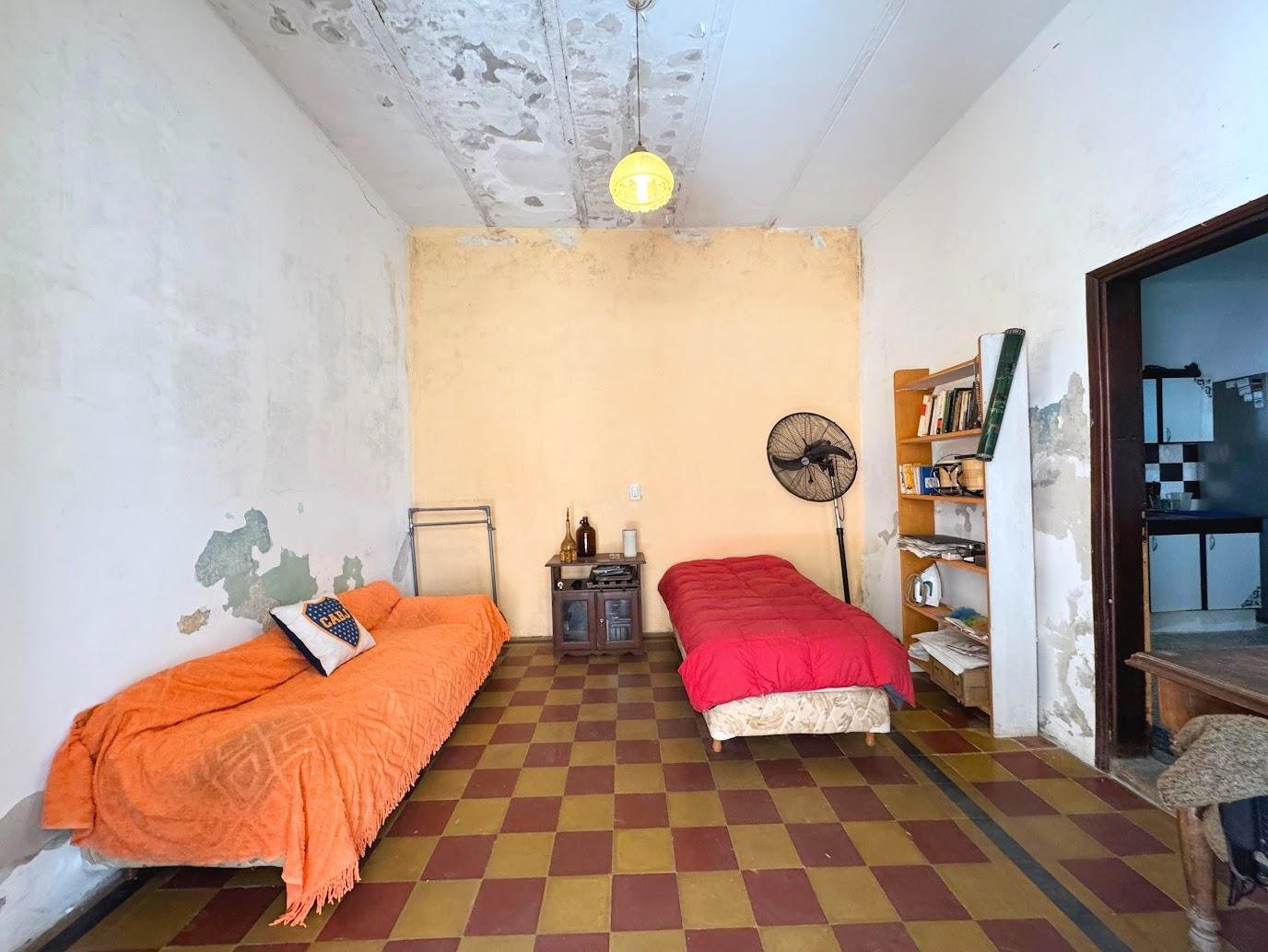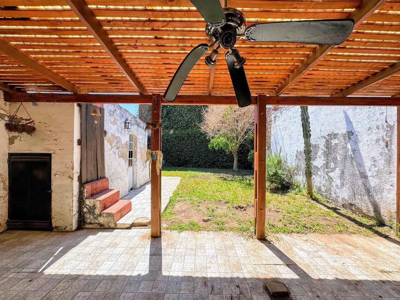 Casa al frente desarrollada en una planta. Al ingresar nos encontramos con un patio de recepción y una cochera doble cubierta (con techos de chapa) y portón eléctrico. A continuación, se presenta otro patio seco y una galeria que nos comunica a los dormitorios de la propiedad. Dormitorio principal en suite, de amplias dimensiones con ventilación hacia el patio delantero, lo cual le brinda muy buen ingreso de luz natural. Segundo dormitorio a refaccionar.
