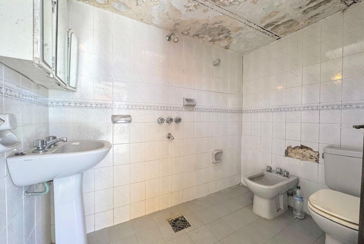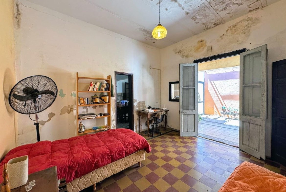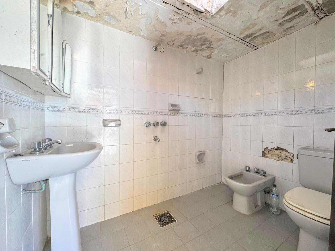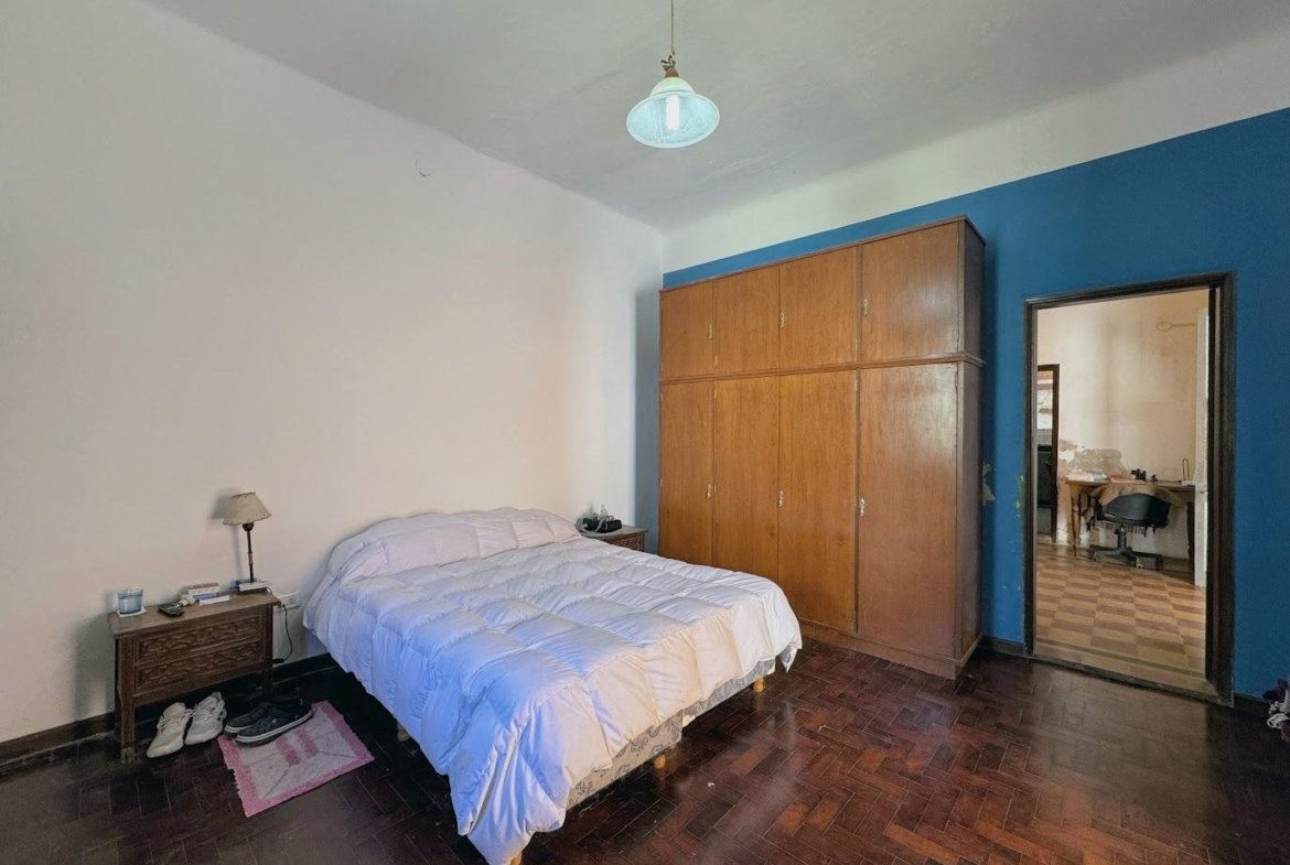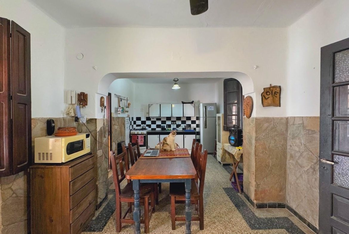 Casa al frente desarrollada en una planta. Al ingresar nos encontramos con un patio de recepción y una cochera doble cubierta (con techos de chapa) y portón eléctrico. A continuación, se presenta otro patio seco y una galeria que nos comunica a los dormitorios de la propiedad. Dormitorio principal en suite, de amplias dimensiones con ventilación hacia el patio delantero, lo cual le brinda muy buen ingreso de luz natural. Segundo dormitorio a refaccionar.