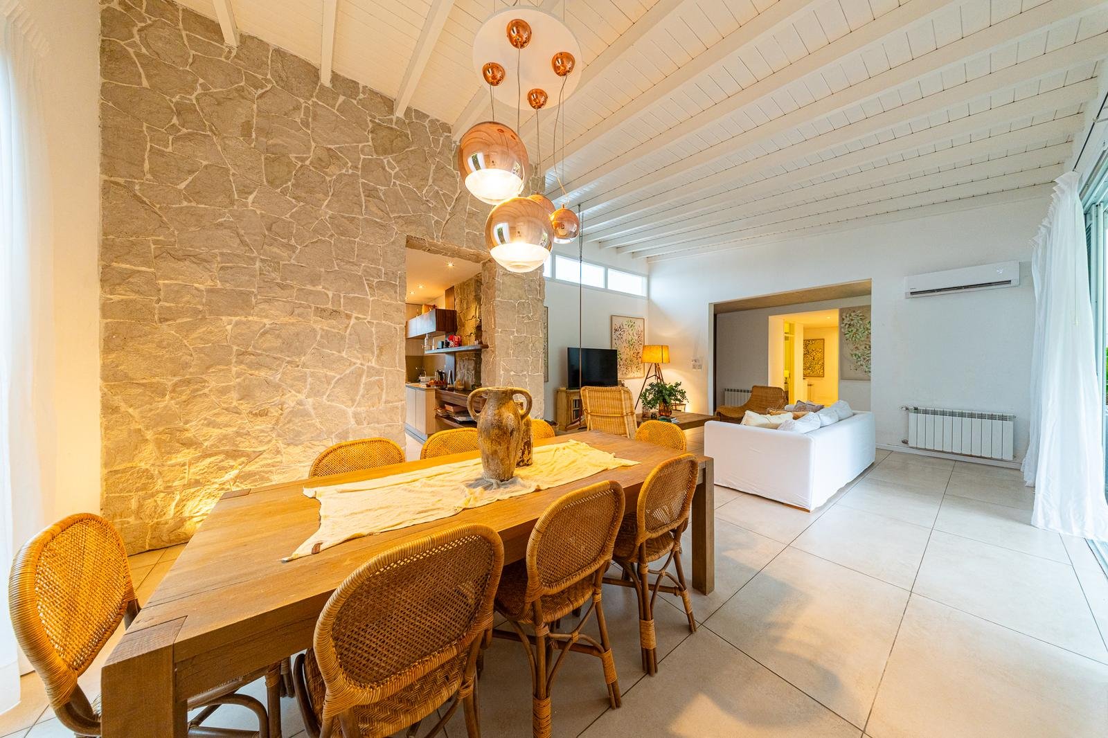 Desarrollada toda en planta baja. En el ingreso nos encontramos con un amplio living comedor muy luminoso, cocina separada, baño completo para el sector social. En el intimo de un pulmón de la casa un dormitorio con puerta balcón que comunica a la galería y un baño completo, En el otro pulmón de la propiedad se encuentran los otros 2 dormitorios con un baño para ellos dos, uno de dichos dormitorios con vestidor.