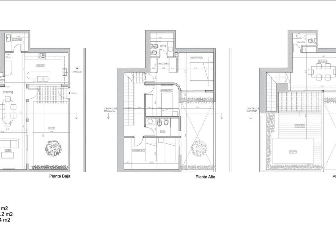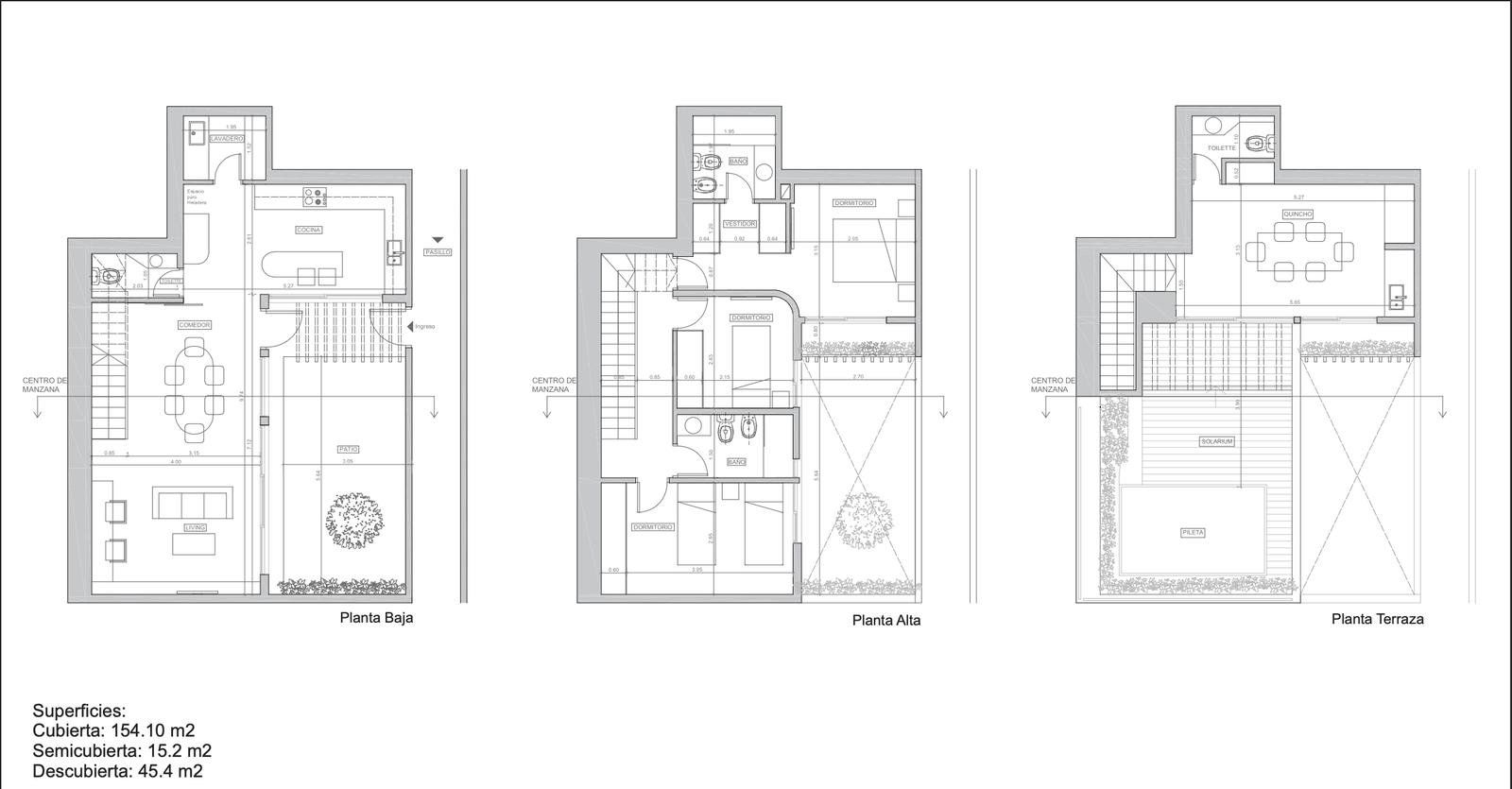 • Planta Alta: Zona íntima compuesta por 3 dormitorios de diseño moderno. Destaca la suite principal, junto a dos dormitorios secundarios con placares completos  que comparten un baño .