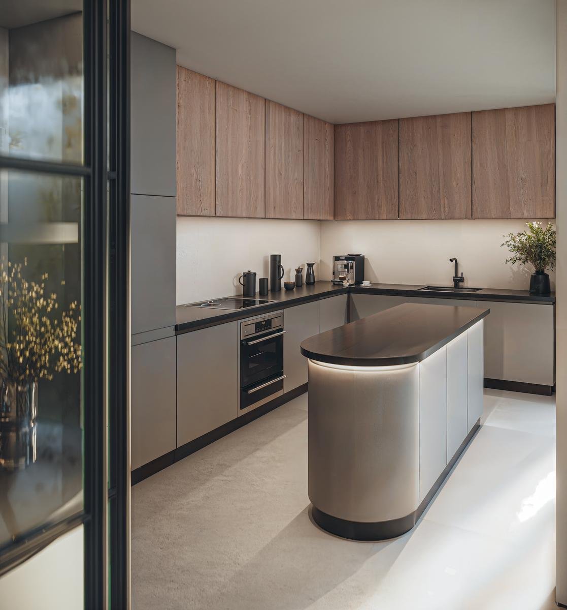 • Cocina de Alta Prestación: Mobiliario de diseño con iluminación integrada, mesada de Silestone, bacha de acero inoxidable, anafe a gas y horno eléctrico embutido.