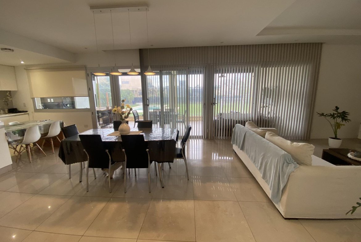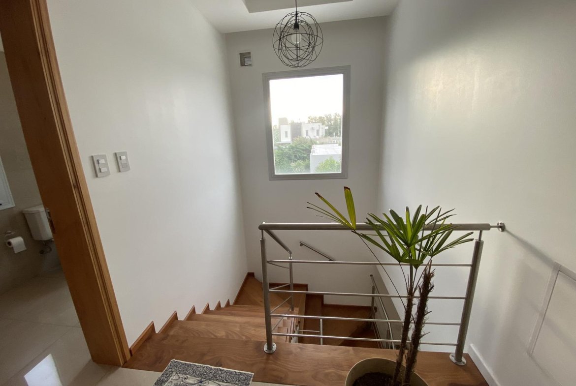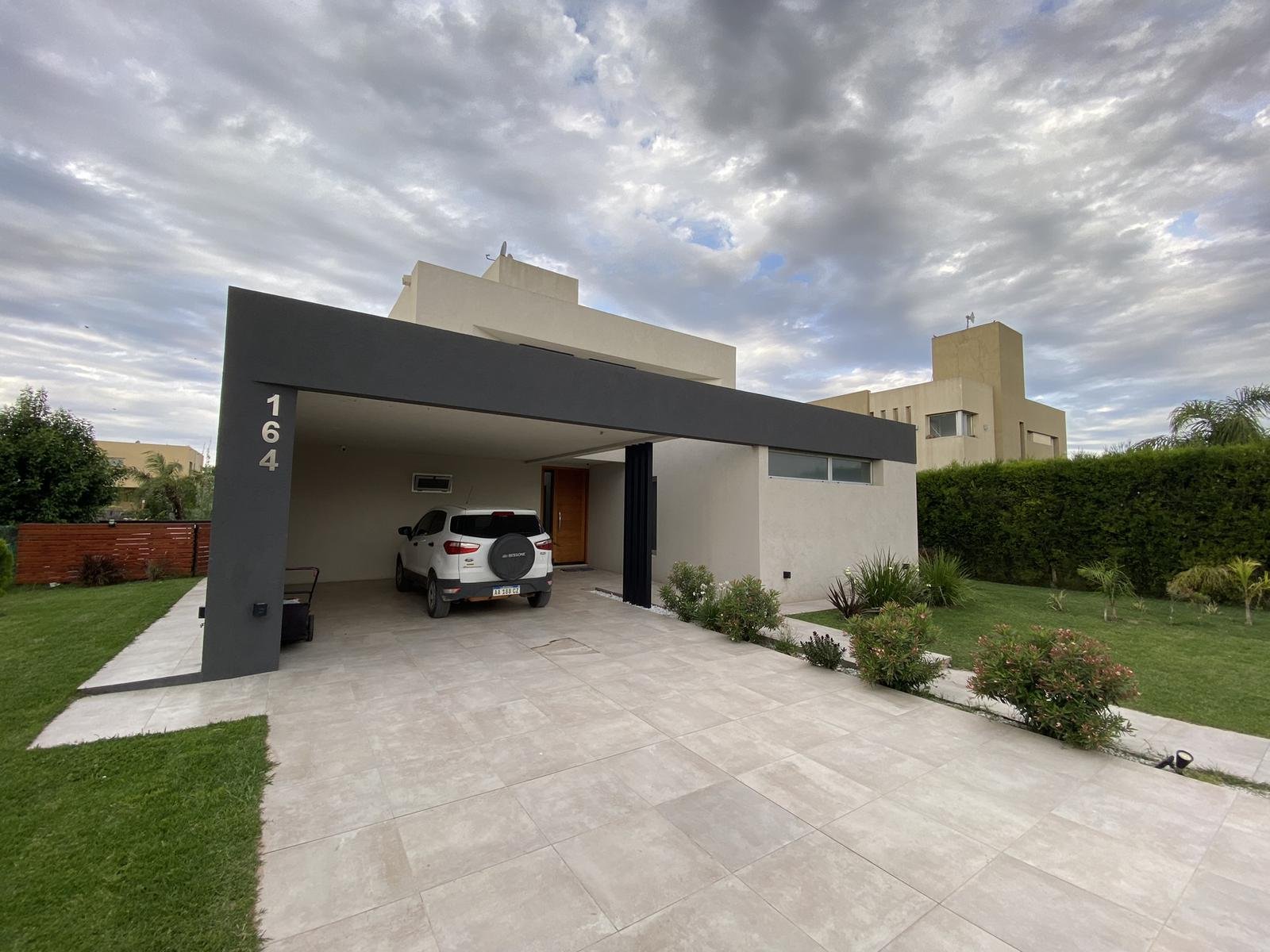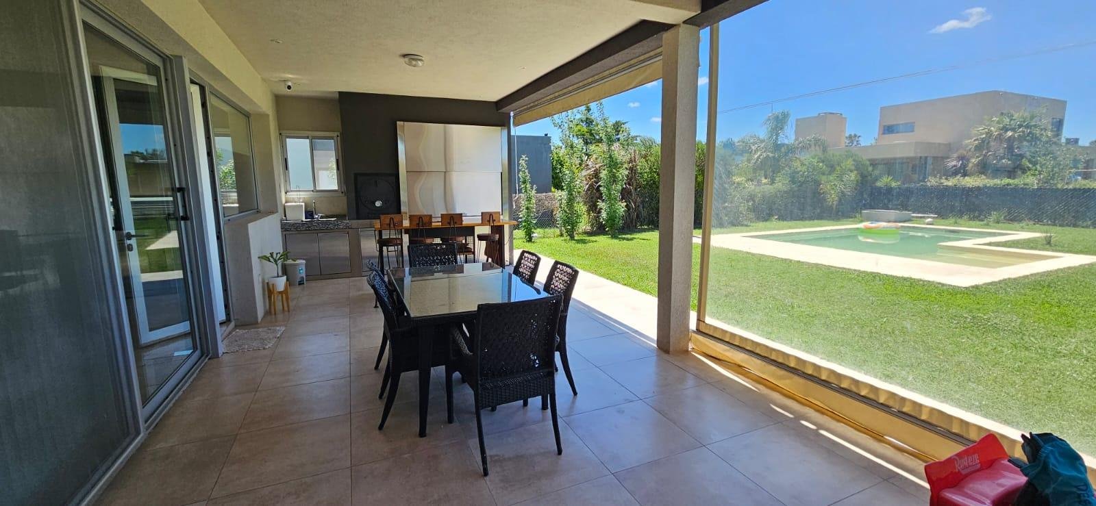 La casa se encuentra desarrollada en dos plantas, cuenta con un imponente frente y cochera cubierta para dos autos. En el interior nos encontramos con un hall recibidor el cual conecta el dormitorio principal en suite, segundo dormitorio con baño completo y la escalera hacia planta alta. Luego contamos con un amplio living comedor con cocina semi integrada y un espacio de Playroom, nos desplazamos por un lavadero independiente con salida hacia el patio lateral en el cual encontraremos un deposito o bicicletero. La casa cuenta con un quincho muy completo con living y barra, parrilla y horno de fundición; está cerrado por toldo movible para acceder al patio donde se encuentra la piscina de 32m2 y mini cancha de futbol; el patio cuenta con un baño de servicio en su exterior y un deposito. En planta alta: encontraremos un amplio espacio de gimnasio o sala de trabajo, un dormitorio de servicio, baño completo y deposito.