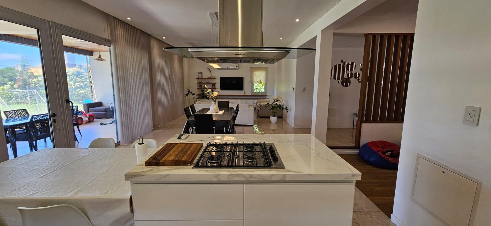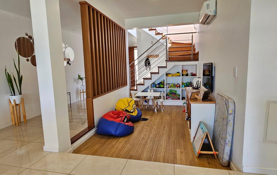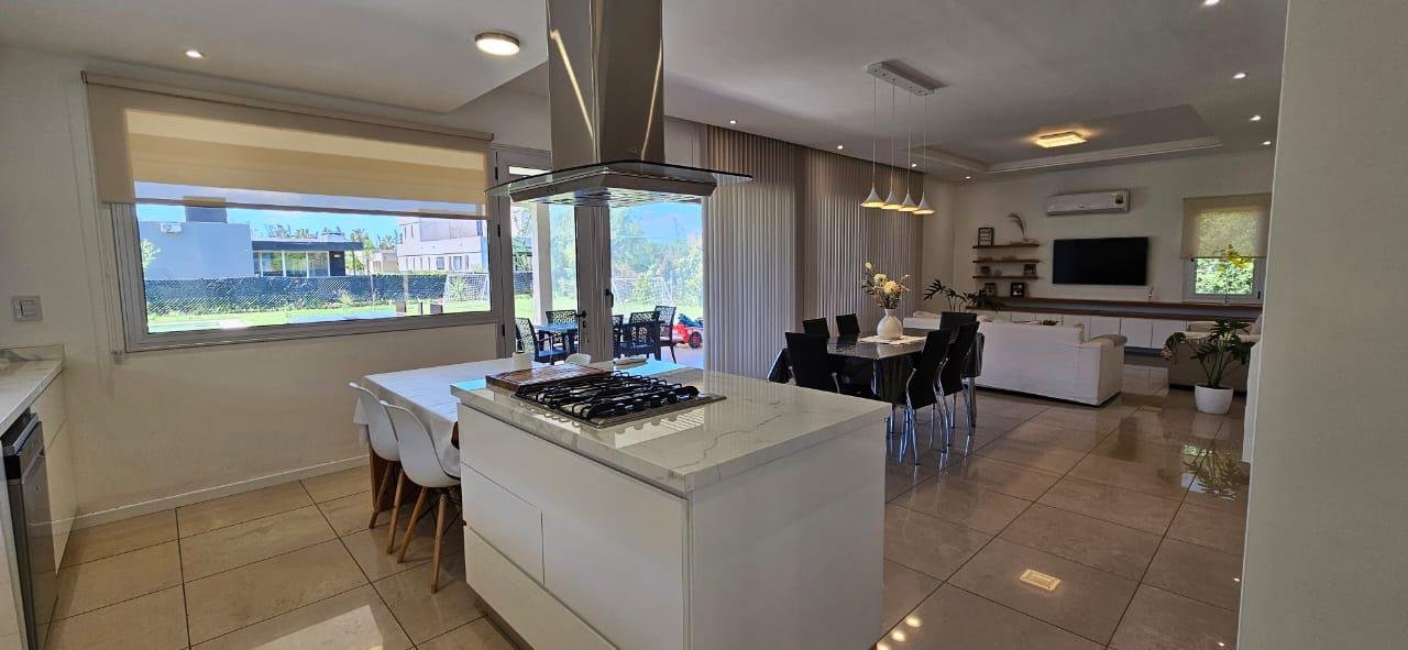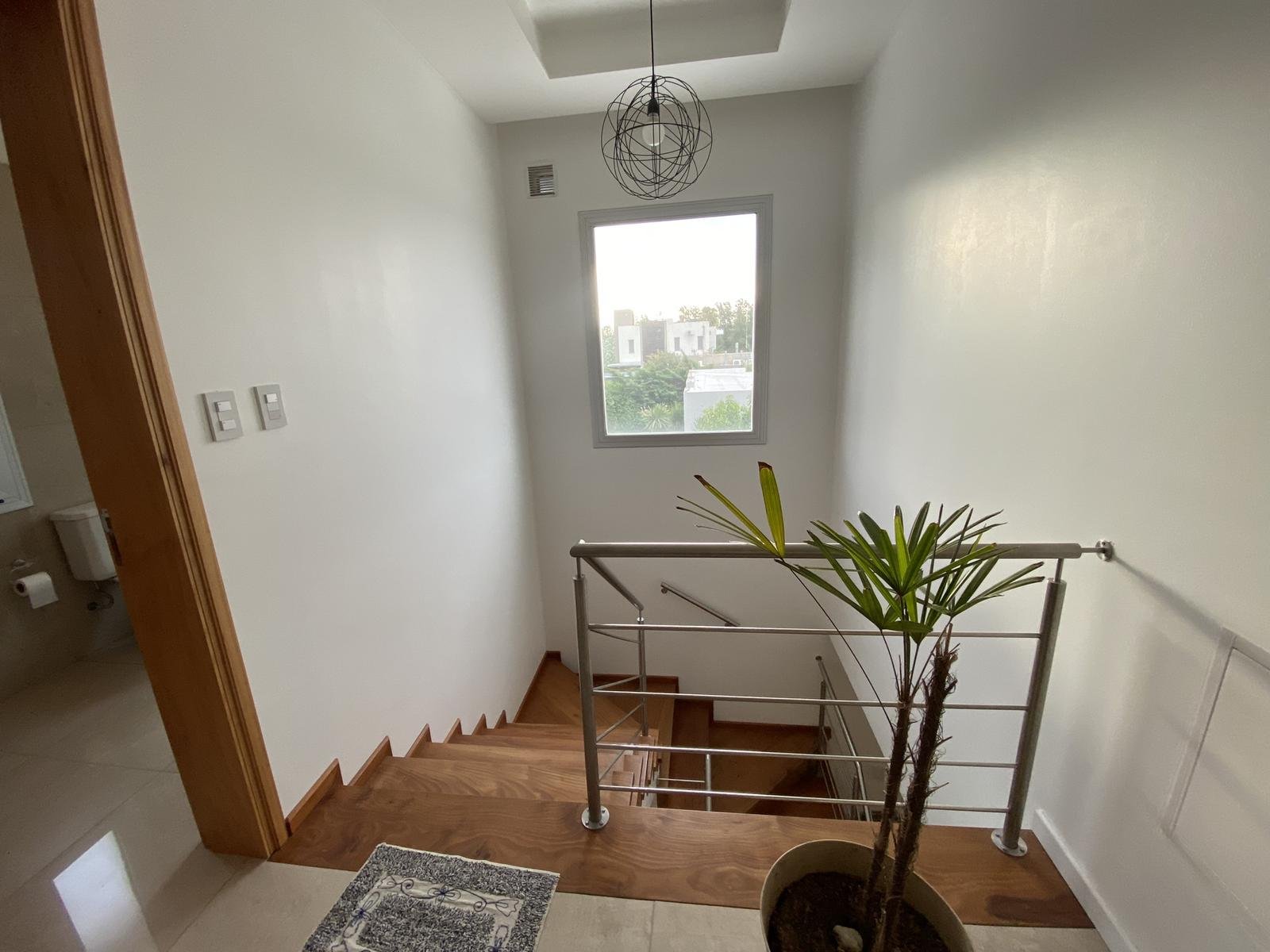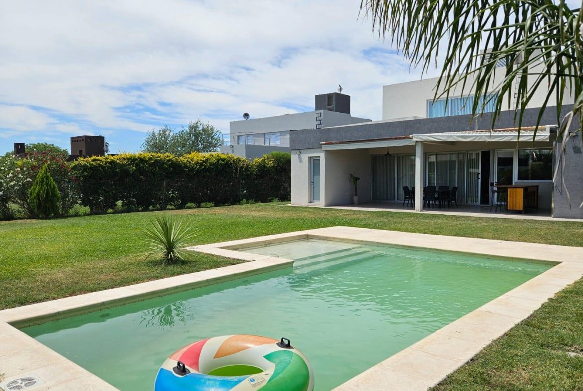 La casa se encuentra desarrollada en dos plantas, cuenta con un imponente frente y cochera cubierta para dos autos. En el interior nos encontramos con un hall recibidor el cual conecta el dormitorio principal en suite, segundo dormitorio con baño completo y la escalera hacia planta alta. Luego contamos con un amplio living comedor con cocina semi integrada y un espacio de Playroom, nos desplazamos por un lavadero independiente con salida hacia el patio lateral en el cual encontraremos un deposito o bicicletero. La casa cuenta con un quincho muy completo con living y barra, parrilla y horno de fundición; está cerrado por toldo movible para acceder al patio donde se encuentra la piscina de 32m2 y mini cancha de futbol; el patio cuenta con un baño de servicio en su exterior y un deposito. En planta alta: encontraremos un amplio espacio de gimnasio o sala de trabajo, un dormitorio de servicio, baño completo y deposito.