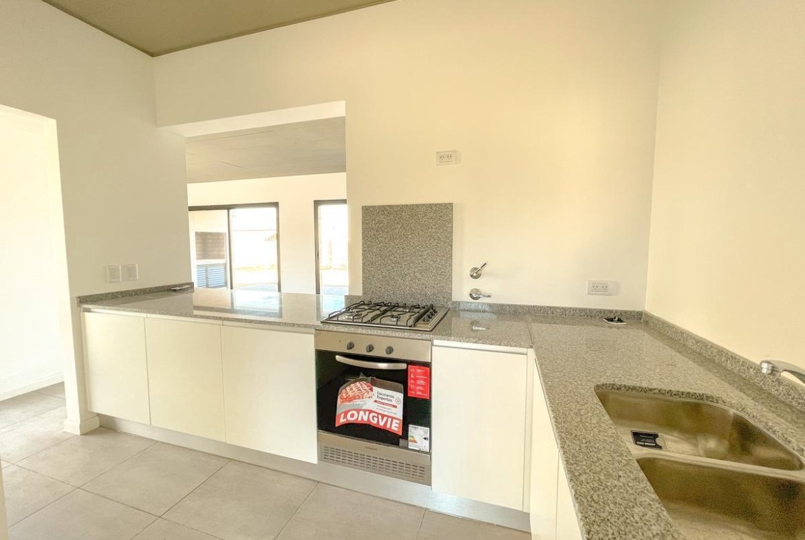 Cocina con mesadas en granito y bacha doble Johnson.