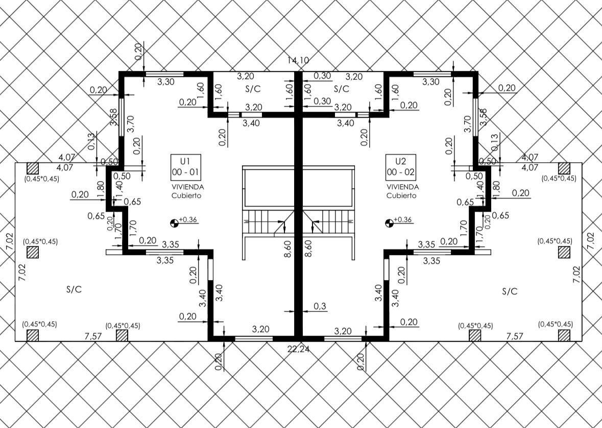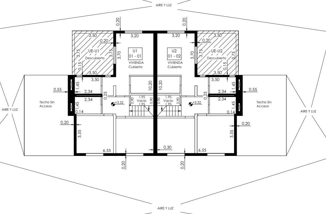 Construcción tipo espejo, compartiendo medianera con la casa vecina.