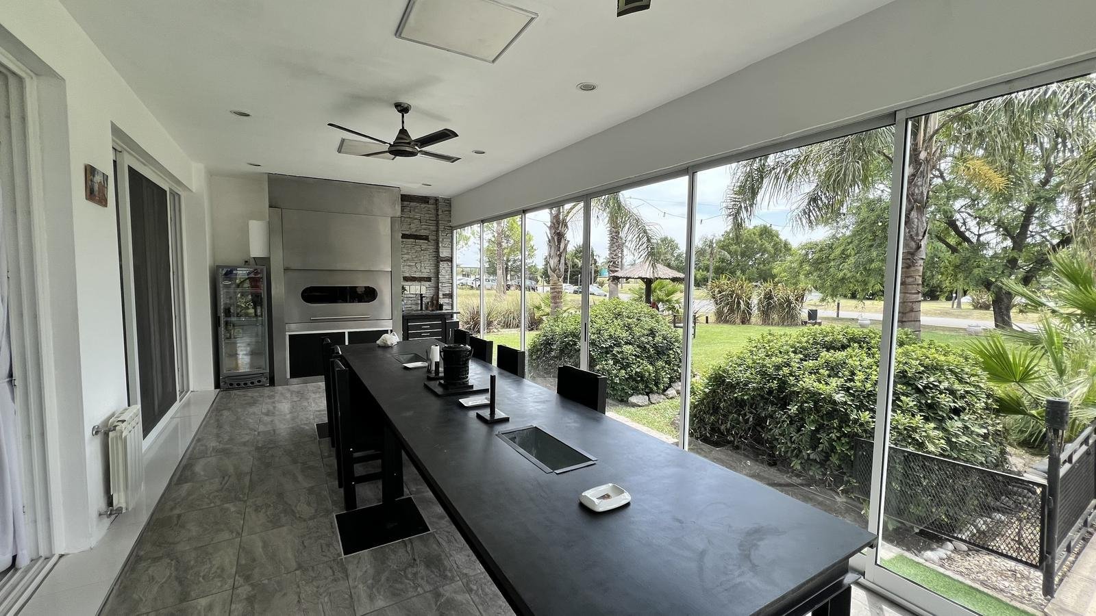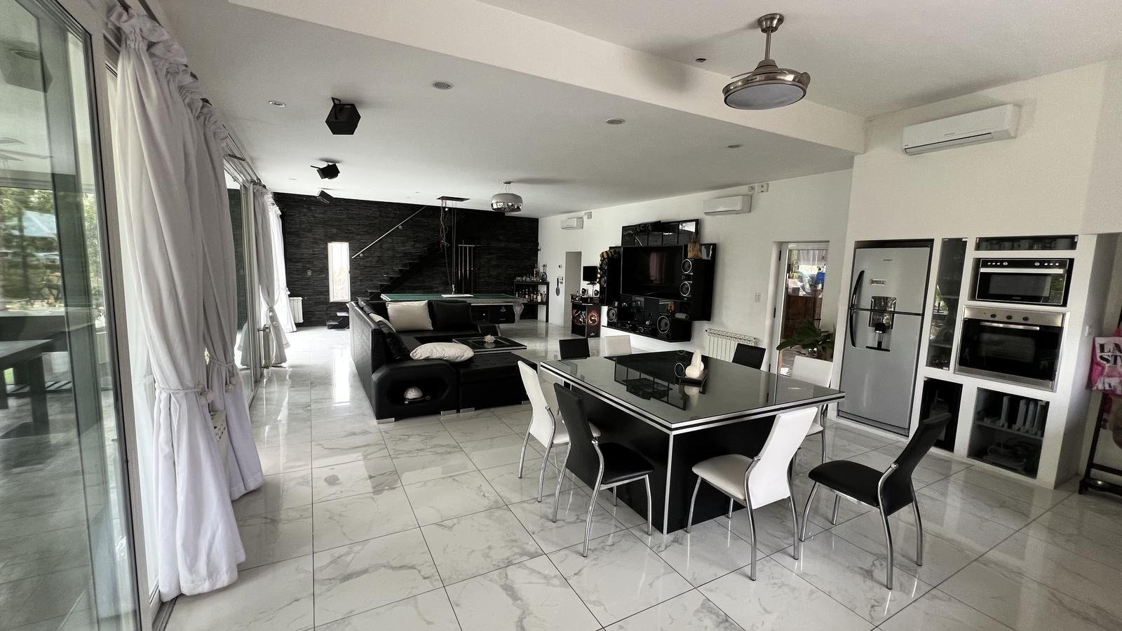 En planta baja: cocina americana, living comedor super amplio, quincho cerrado con puertas ventanas con parrillero, hermosa piscina, solárium, gran garaje y toilette.