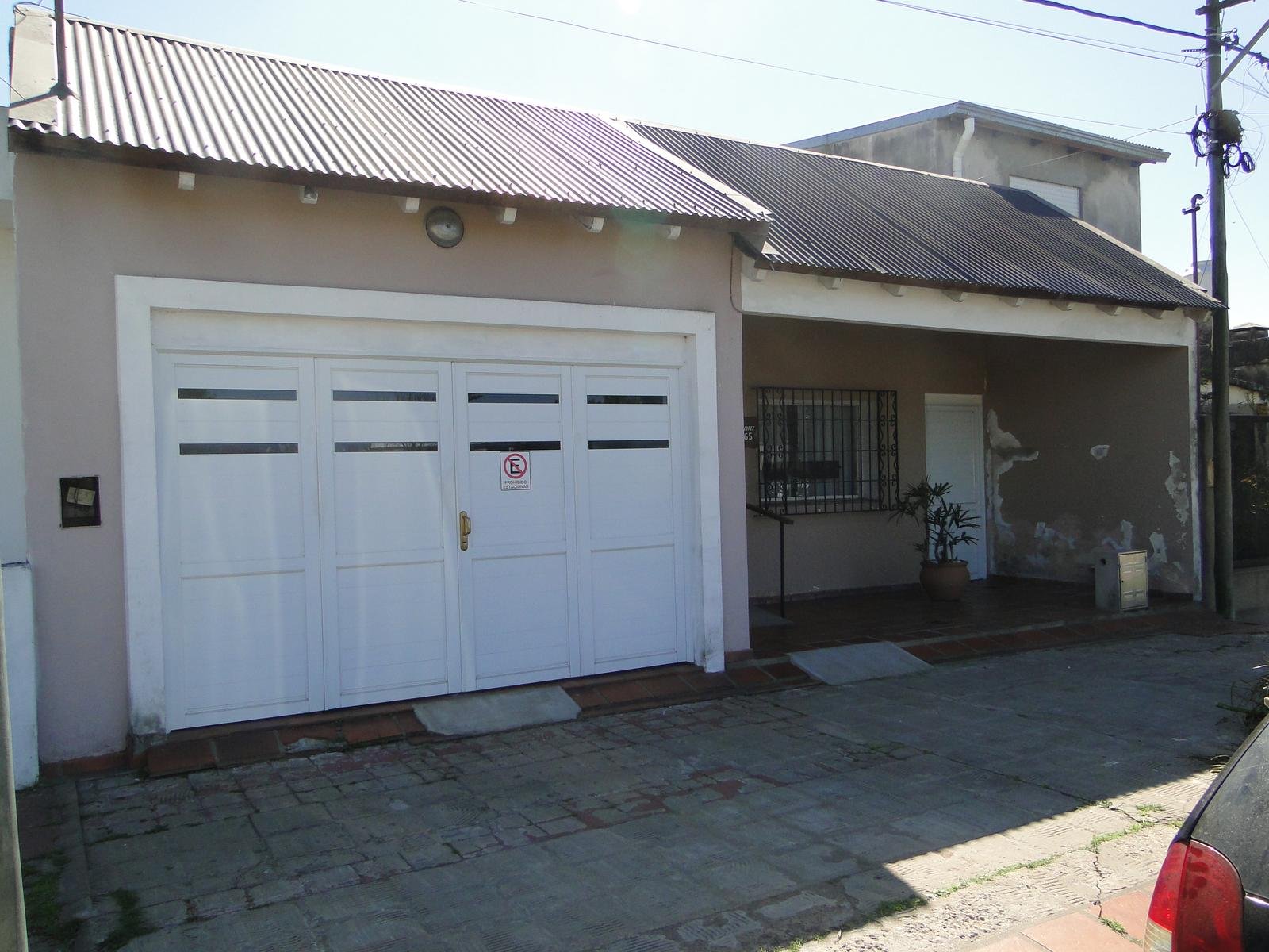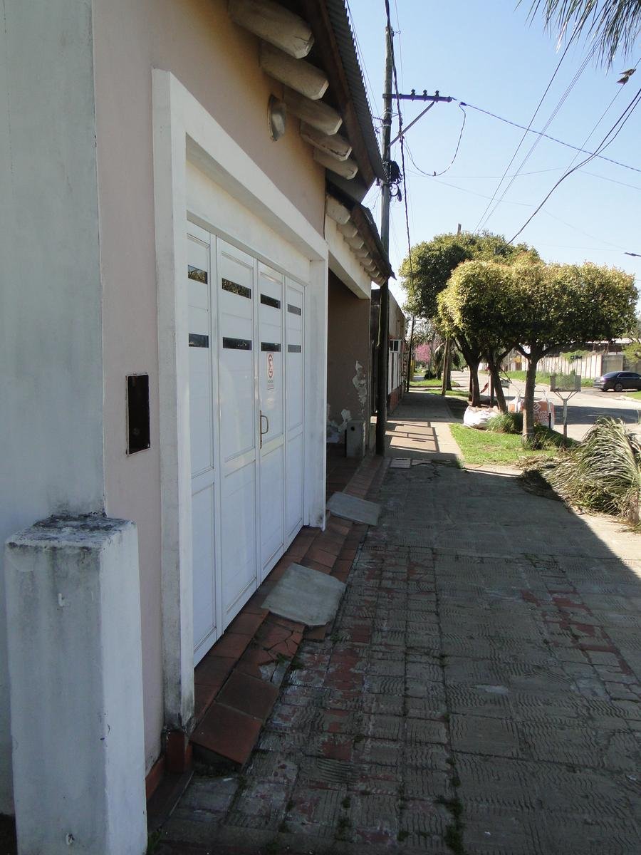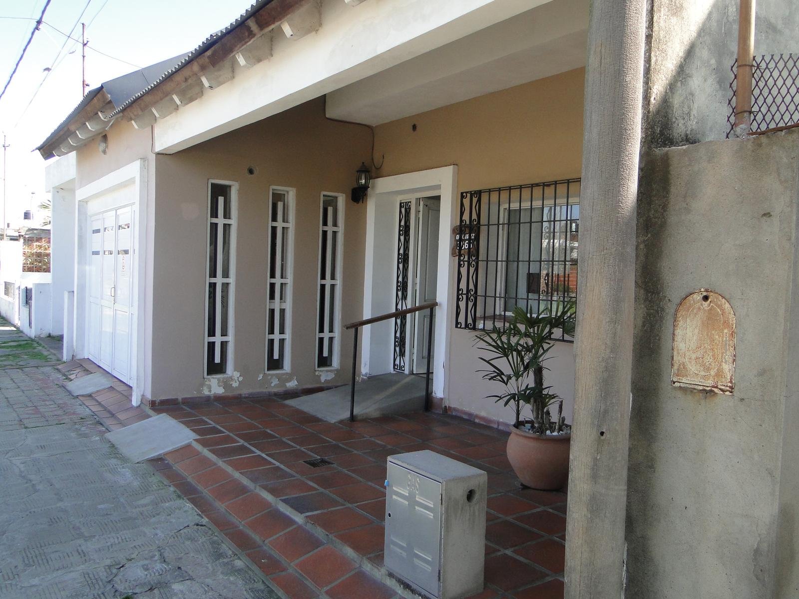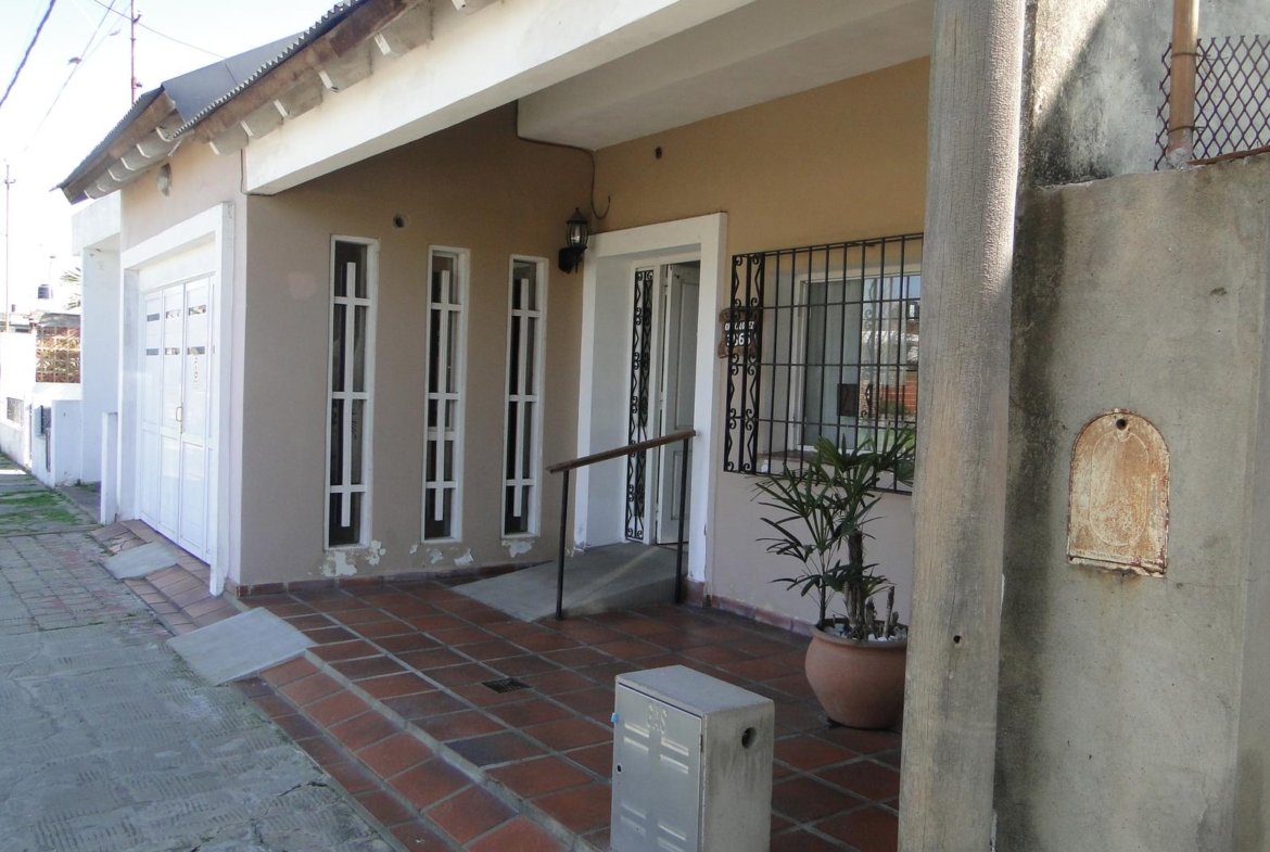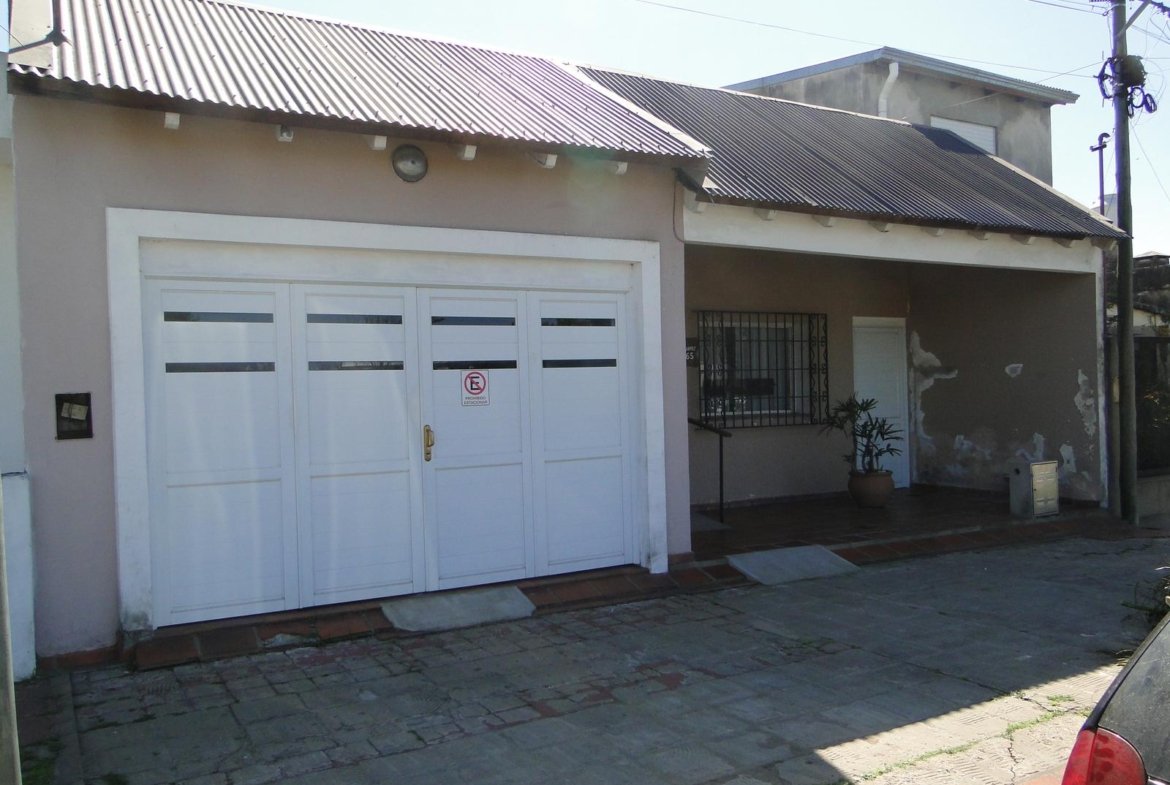 La casa posee un gran frente con un lindo ingreso, amplia cochera , living comedor, baño  , 2 dormitorios grandes, cocina y dependencias de servicio.