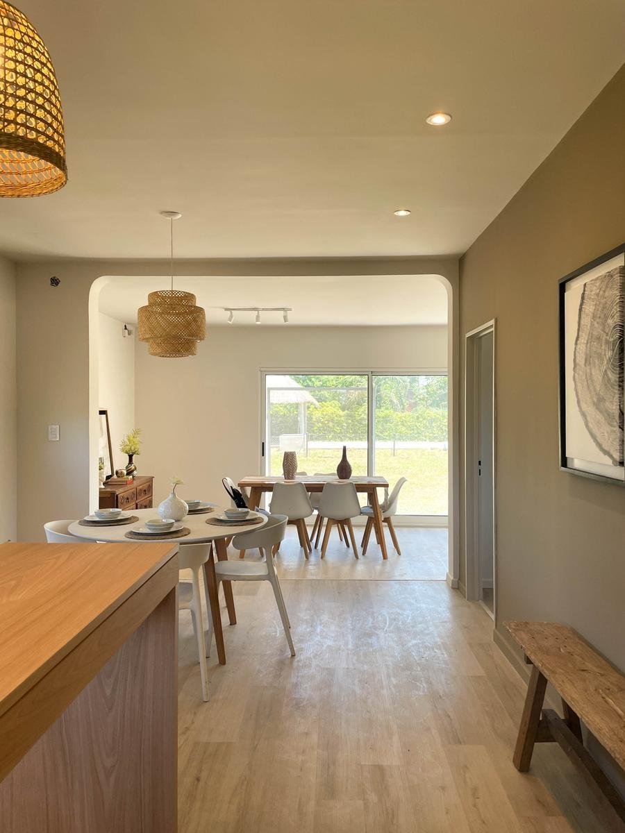 La propiedad con ambientes amplios y bien distribuidos, combina comodidad, funcionalidad y espacios pensados para disfrutar en familia o con amigos. Al ingresar, nos recibe un living comedor luminoso, conectado a una cocina práctica y moderna con barra desayunadora, alacenas y bajo mesada, ideal para el día a día. Además, cuenta con espacio de comedor diario y un toilette de recepción que suma comodidad cuando tenés visitas. En el área privada, encontramos dos dormitorios generosos, con placares, y un baño completo con ducha.