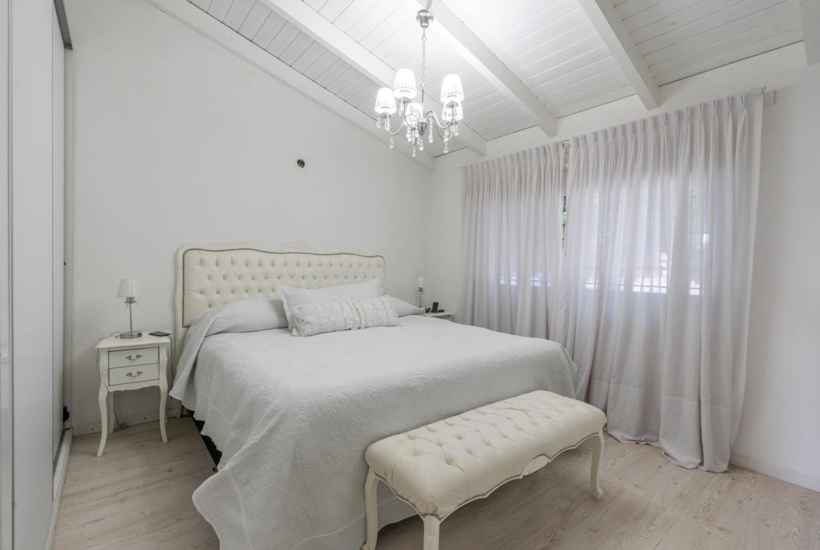 En planta alta se encuentran 3 dormitorios, uno de ellos cuenta con baño en suite; además un comodín y un baño completo. En el exterior se encuentra una terraza, lavadero o espacio de usos varios que continua con un  gimnasio.