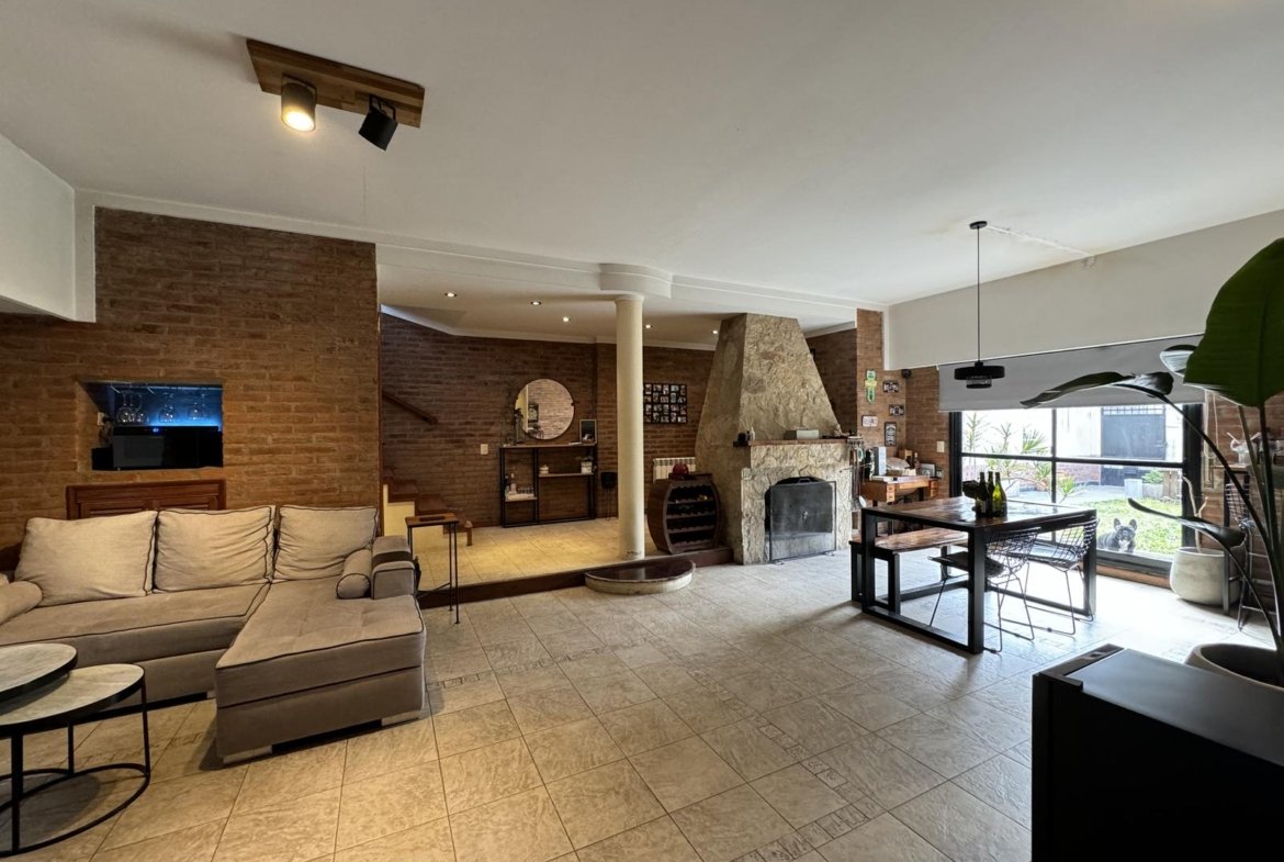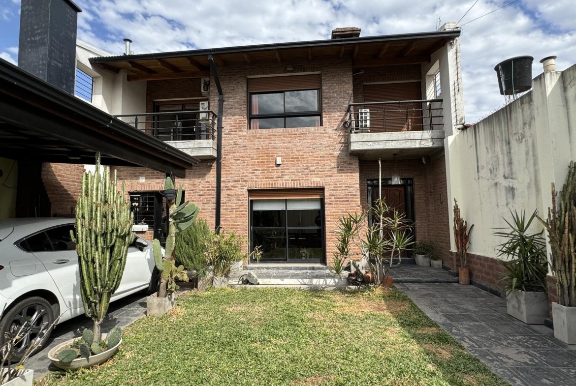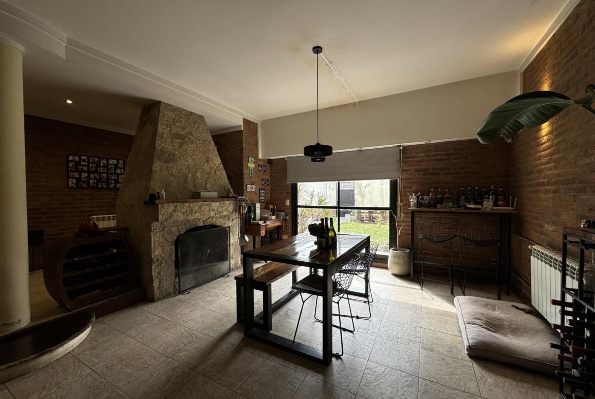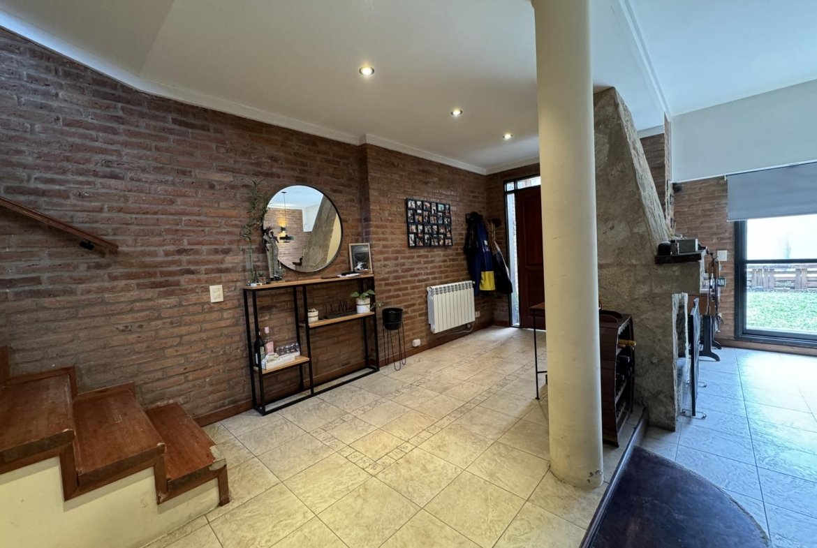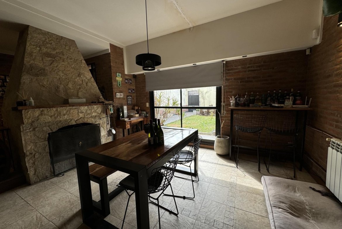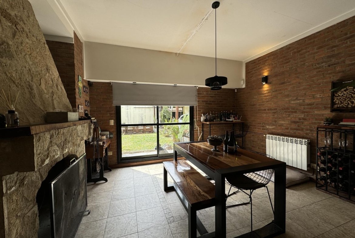 Hermosa propiedad distribuida en 2 plantas, sobre un lote de terreno de 198m2. La propiedad se encuentra recedida de la linea de edificación, primeramente tenemos un jardín, amplia cochera cubierta con espacio para dos vehículos, un parrillero. Dentro de la propiedad, nos encontramos con un hall de recepción, que nos conduce hacia el ambiente social principal. Un estar comedor de generosas dimensionas, con ventilación cruzada, y excelente luminosidad natural. Un hogar a leña hace de este ambiente un espacio ideal para disfrutar en épocas invernales. La cocina, totalmente sectorizada, dispone de amplio espacio de almacenamiento, bajomesada y alacenas y un mobiliario adicional al lateral, mesada de granito, horno a gas con extractor, este sector tiene ventilación natural, y un segundo ingreso. Contiguo a la cocina, un toilette de servicio, y el lavadero. Al fondo del terreno, un patio seco. En planta alta, 3 dormitorios con placard e interiores, asistidos por un baño que se encuentra dividido el sector bañera con ducha con el de sanitarios, en el medio de ambos el vanitory con dos bachas. El dormitorio principal posee vestidor y salida a un balcón.
