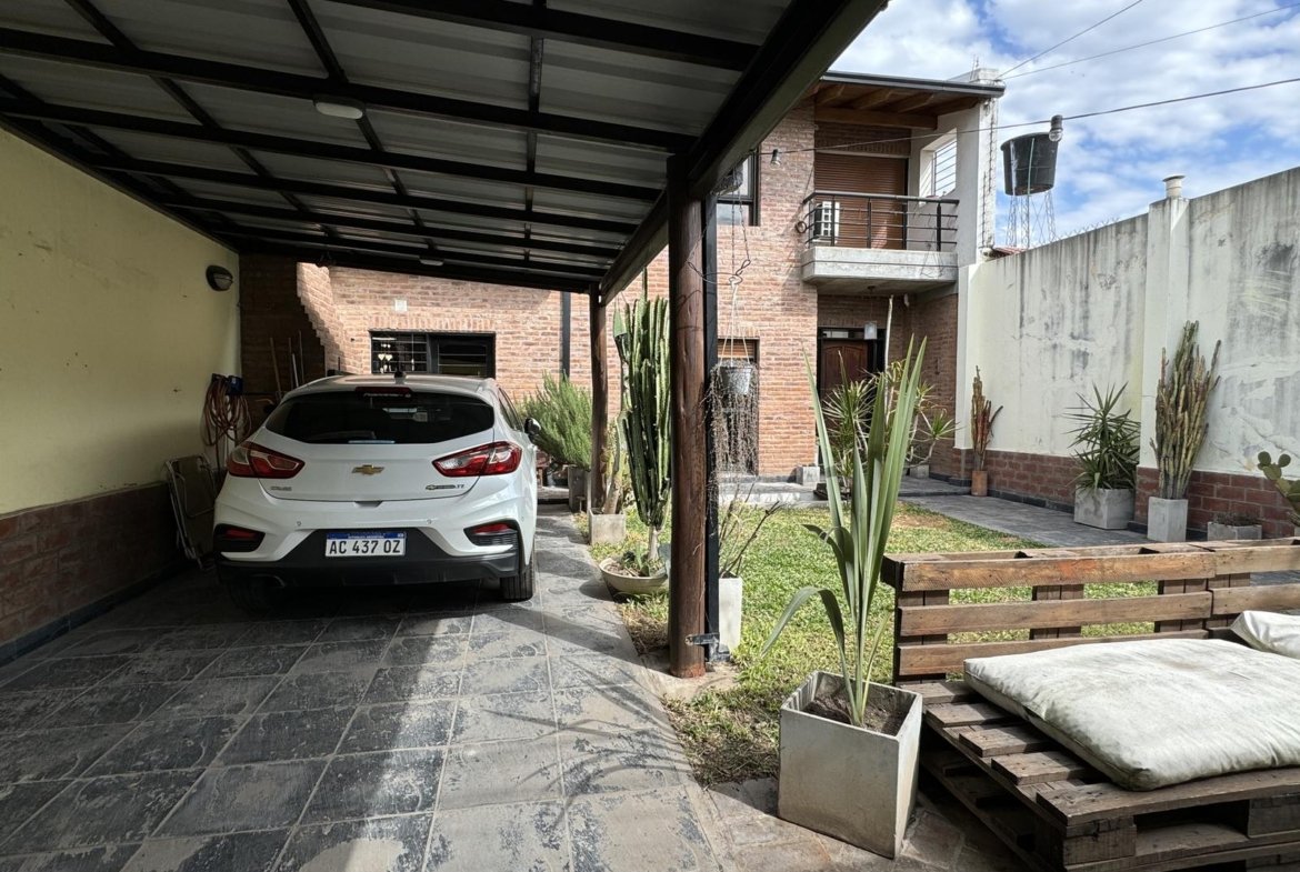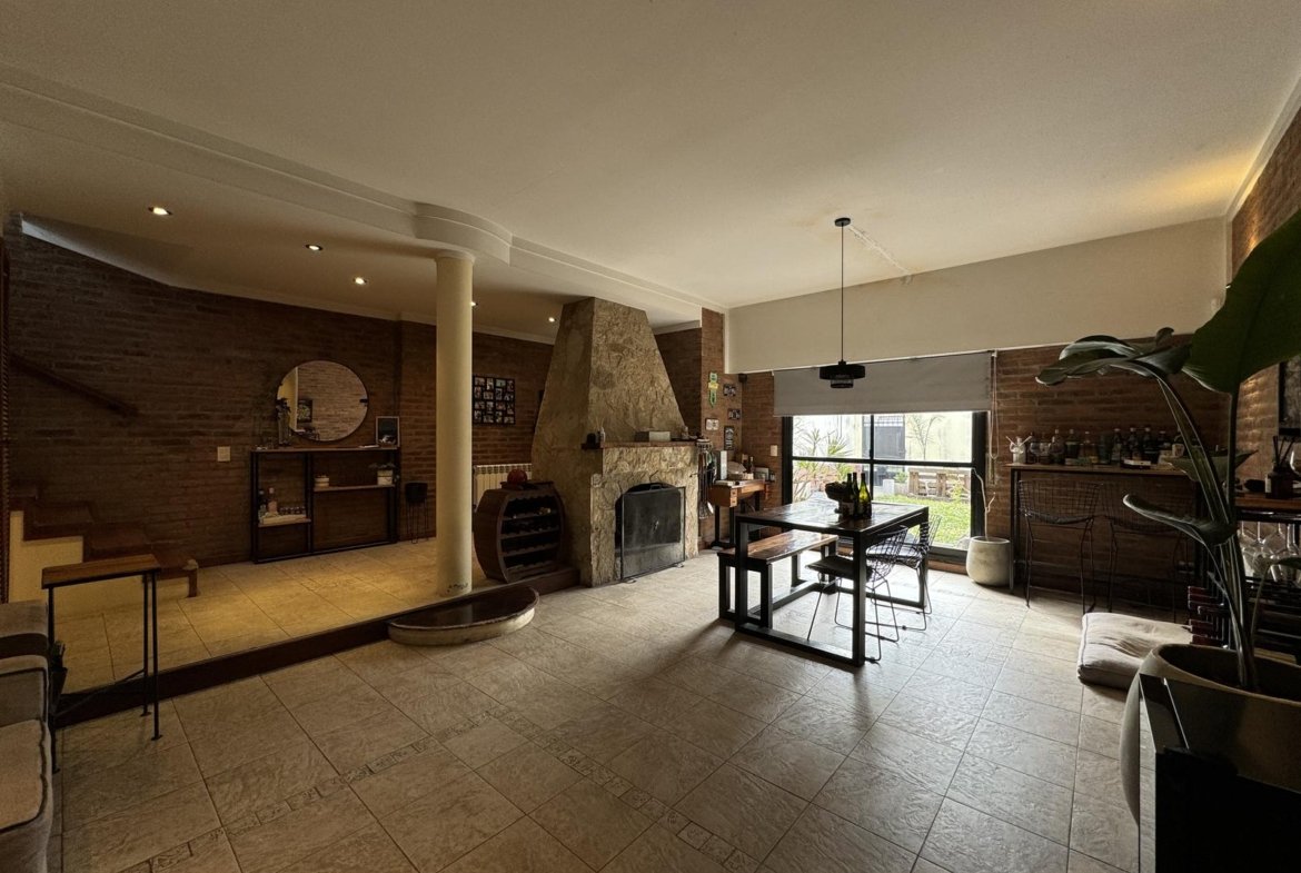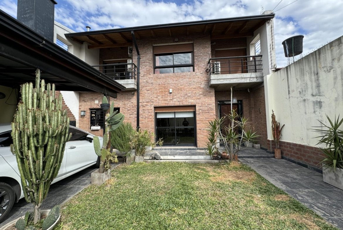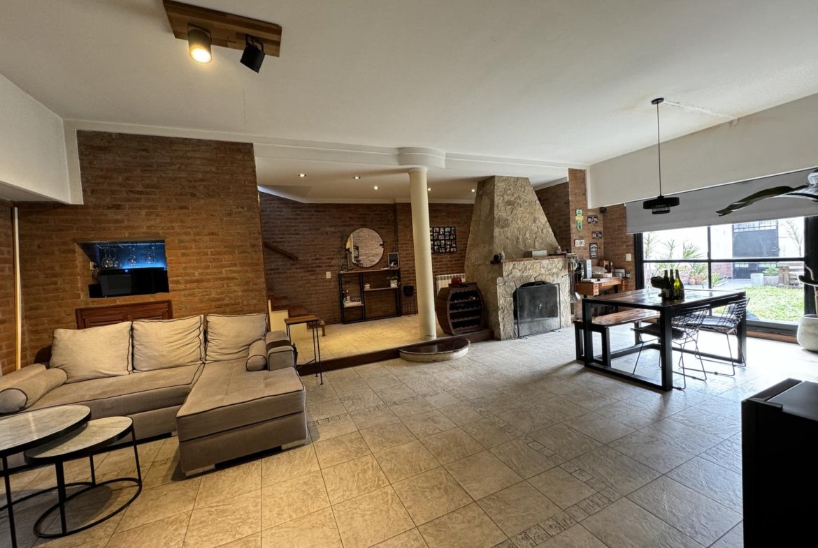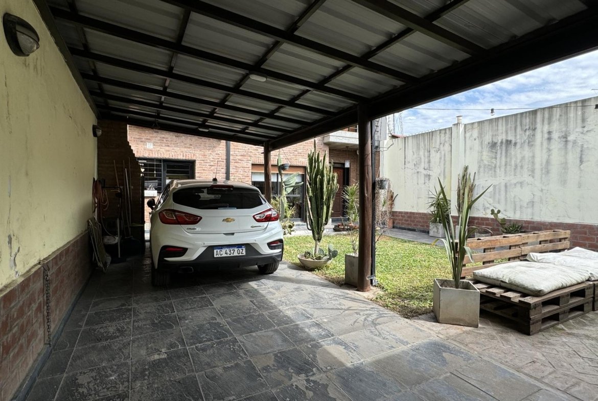 Hermosa propiedad distribuida en 2 plantas, sobre un lote de terreno de 198m2. La propiedad se encuentra recedida de la linea de edificación, primeramente tenemos un jardín, amplia cochera cubierta con espacio para dos vehículos, un parrillero. Dentro de la propiedad, nos encontramos con un hall de recepción, que nos conduce hacia el ambiente social principal. Un estar comedor de generosas dimensionas, con ventilación cruzada, y excelente luminosidad natural. Un hogar a leña hace de este ambiente un espacio ideal para disfrutar en épocas invernales. La cocina, totalmente sectorizada, dispone de amplio espacio de almacenamiento, bajomesada y alacenas y un mobiliario adicional al lateral, mesada de granito, horno a gas con extractor, este sector tiene ventilación natural, y un segundo ingreso. Contiguo a la cocina, un toilette de servicio, y el lavadero. Al fondo del terreno, un patio seco. En planta alta, 3 dormitorios con placard e interiores, asistidos por un baño que se encuentra dividido el sector bañera con ducha con el de sanitarios, en el medio de ambos el vanitory con dos bachas. El dormitorio principal posee vestidor y salida a un balcón.