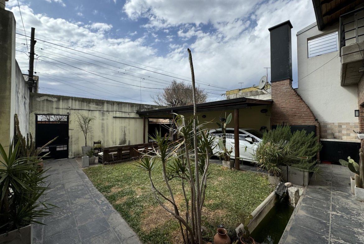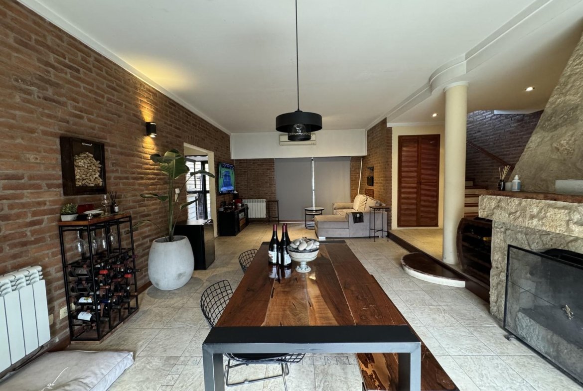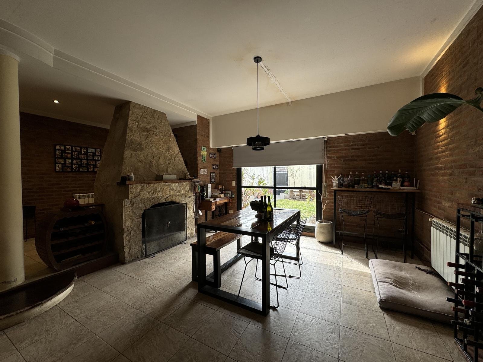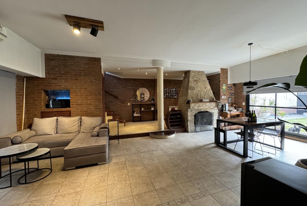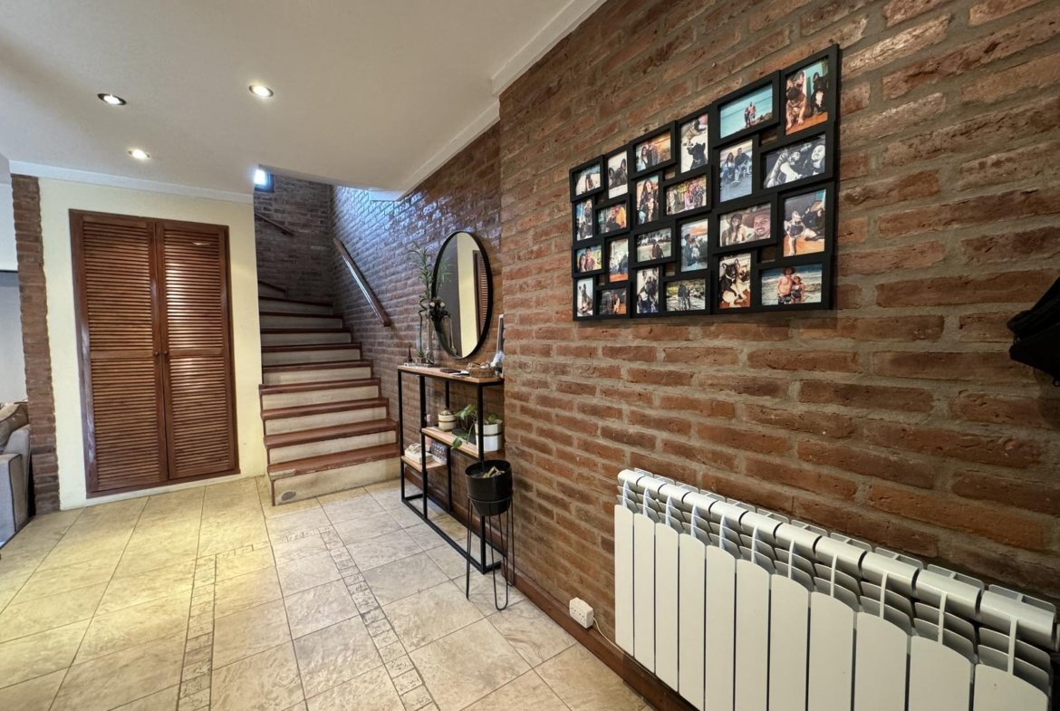Hermosa propiedad distribuida en 2 plantas, sobre un lote de terreno de 198m2. La propiedad se encuentra recedida de la linea de edificación, primeramente tenemos un jardín, amplia cochera cubierta con espacio para dos vehículos, un parrillero. Dentro de la propiedad, nos encontramos con un hall de recepción, que nos conduce hacia el ambiente social principal. Un estar comedor de generosas dimensionas, con ventilación cruzada, y excelente luminosidad natural. Un hogar a leña hace de este ambiente un espacio ideal para disfrutar en épocas invernales. La cocina, totalmente sectorizada, dispone de amplio espacio de almacenamiento, bajomesada y alacenas y un mobiliario adicional al lateral, mesada de granito, horno a gas con extractor, este sector tiene ventilación natural, y un segundo ingreso. Contiguo a la cocina, un toilette de servicio, y el lavadero. Al fondo del terreno, un patio seco. En planta alta, 3 dormitorios con placard e interiores, asistidos por un baño que se encuentra dividido el sector bañera con ducha con el de sanitarios, en el medio de ambos el vanitory con dos bachas. El dormitorio principal posee vestidor y salida a un balcón.