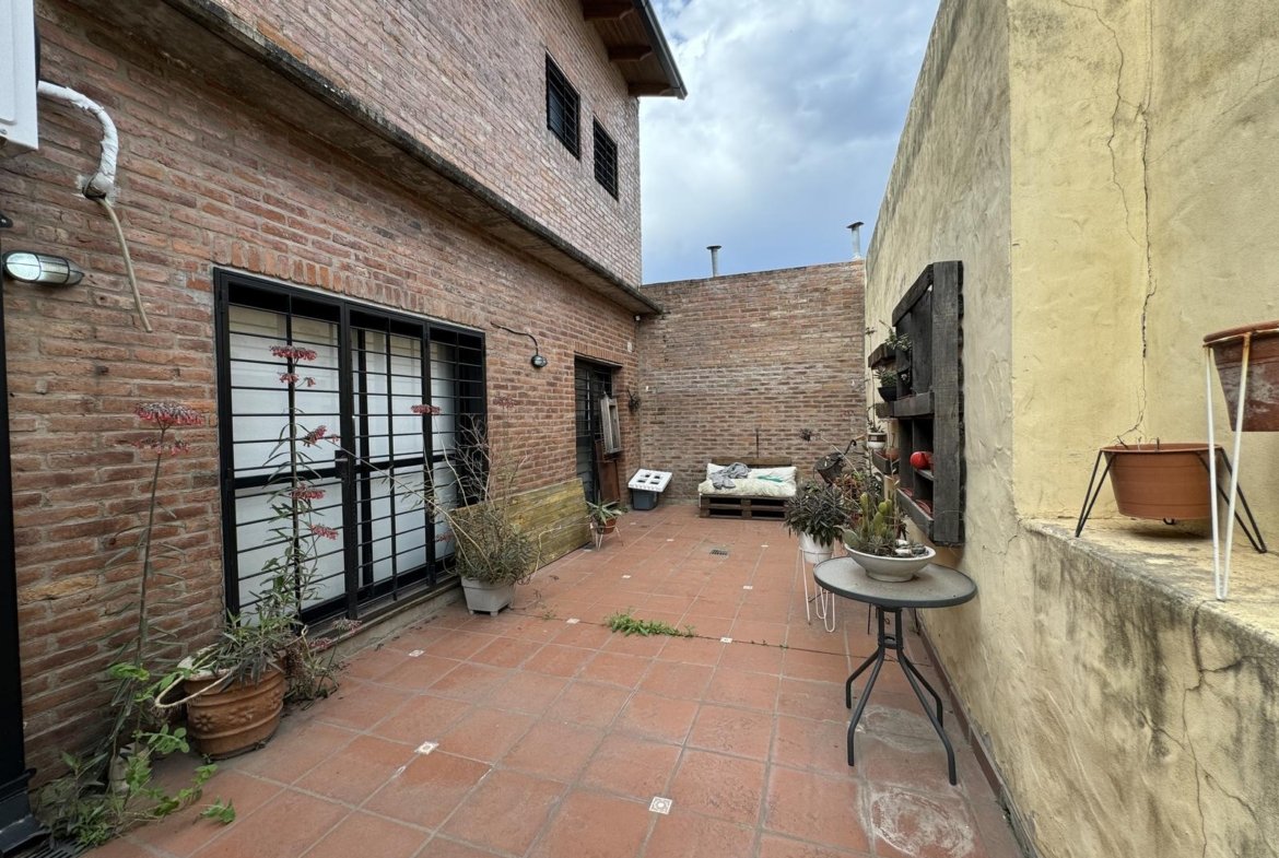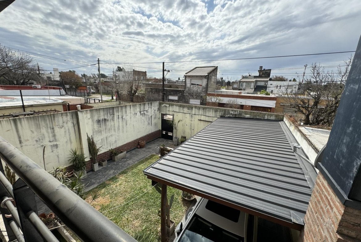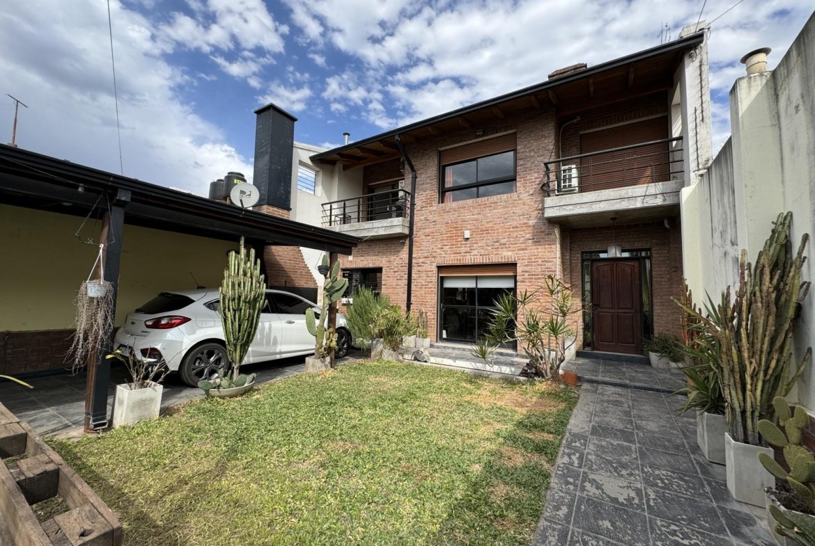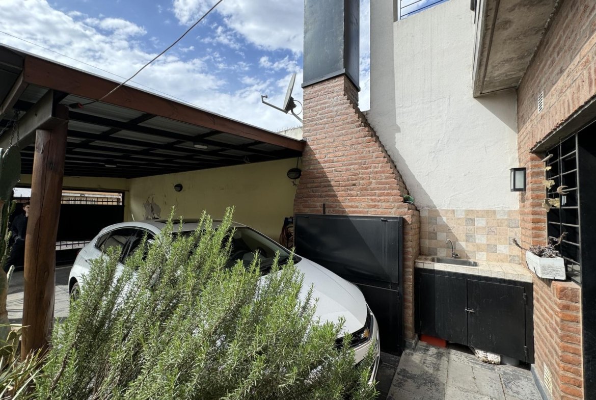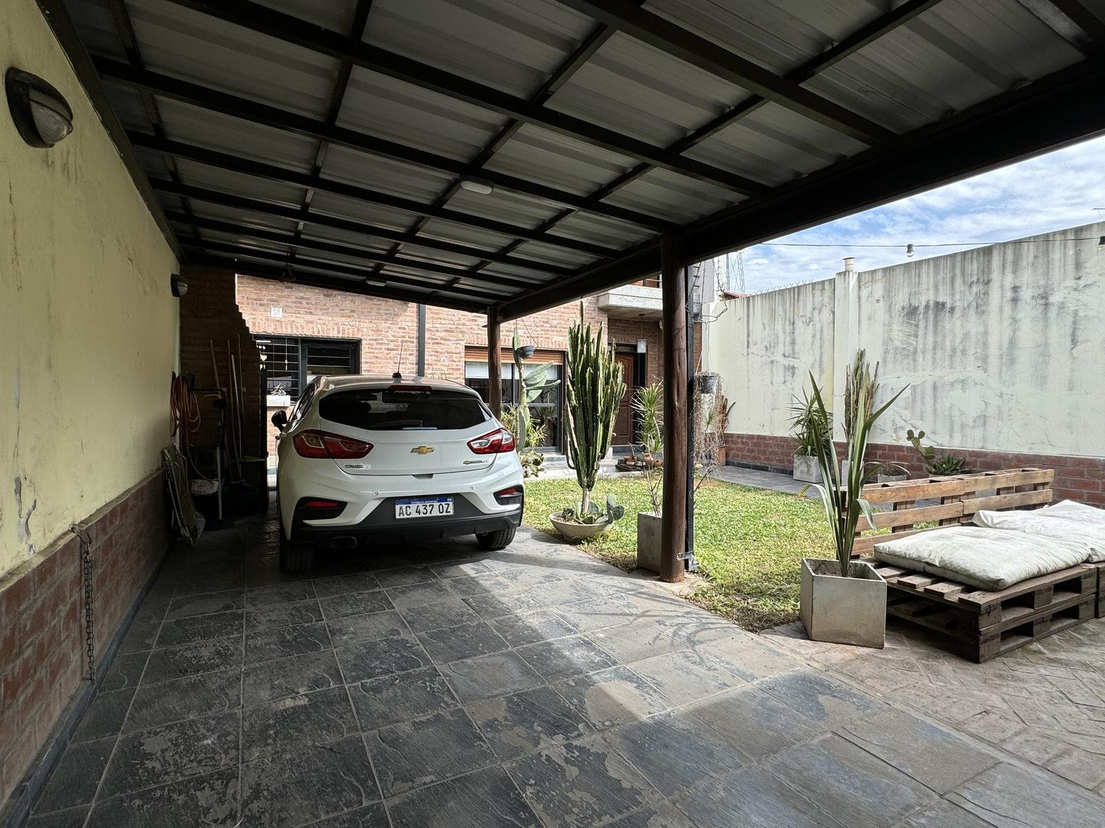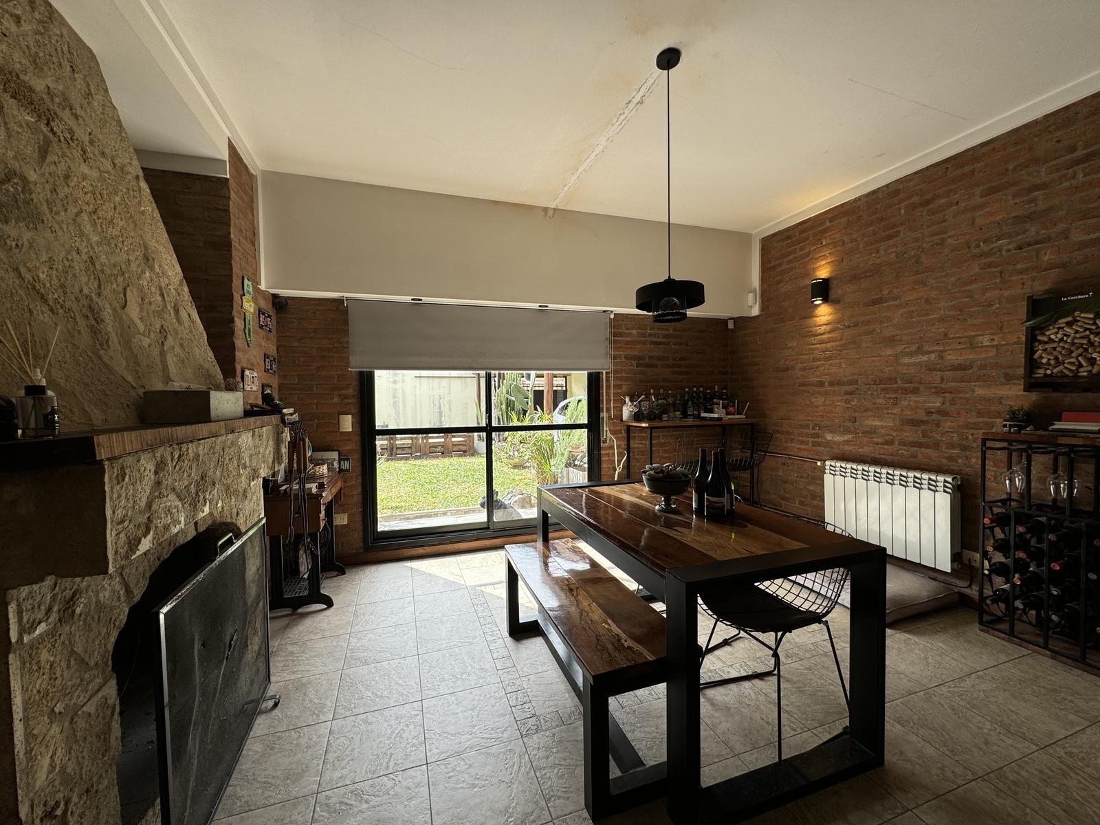 Hermosa propiedad distribuida en 2 plantas, sobre un lote de terreno de 198m2. La propiedad se encuentra recedida de la linea de edificación, primeramente tenemos un jardín, amplia cochera cubierta con espacio para dos vehículos, un parrillero. Dentro de la propiedad, nos encontramos con un hall de recepción, que nos conduce hacia el ambiente social principal. Un estar comedor de generosas dimensionas, con ventilación cruzada, y excelente luminosidad natural. Un hogar a leña hace de este ambiente un espacio ideal para disfrutar en épocas invernales. La cocina, totalmente sectorizada, dispone de amplio espacio de almacenamiento, bajomesada y alacenas y un mobiliario adicional al lateral, mesada de granito, horno a gas con extractor, este sector tiene ventilación natural, y un segundo ingreso. Contiguo a la cocina, un toilette de servicio, y el lavadero. Al fondo del terreno, un patio seco. En planta alta, 3 dormitorios con placard e interiores, asistidos por un baño que se encuentra dividido el sector bañera con ducha con el de sanitarios, en el medio de ambos el vanitory con dos bachas. El dormitorio principal posee vestidor y salida a un balcón.