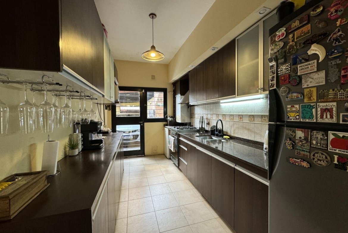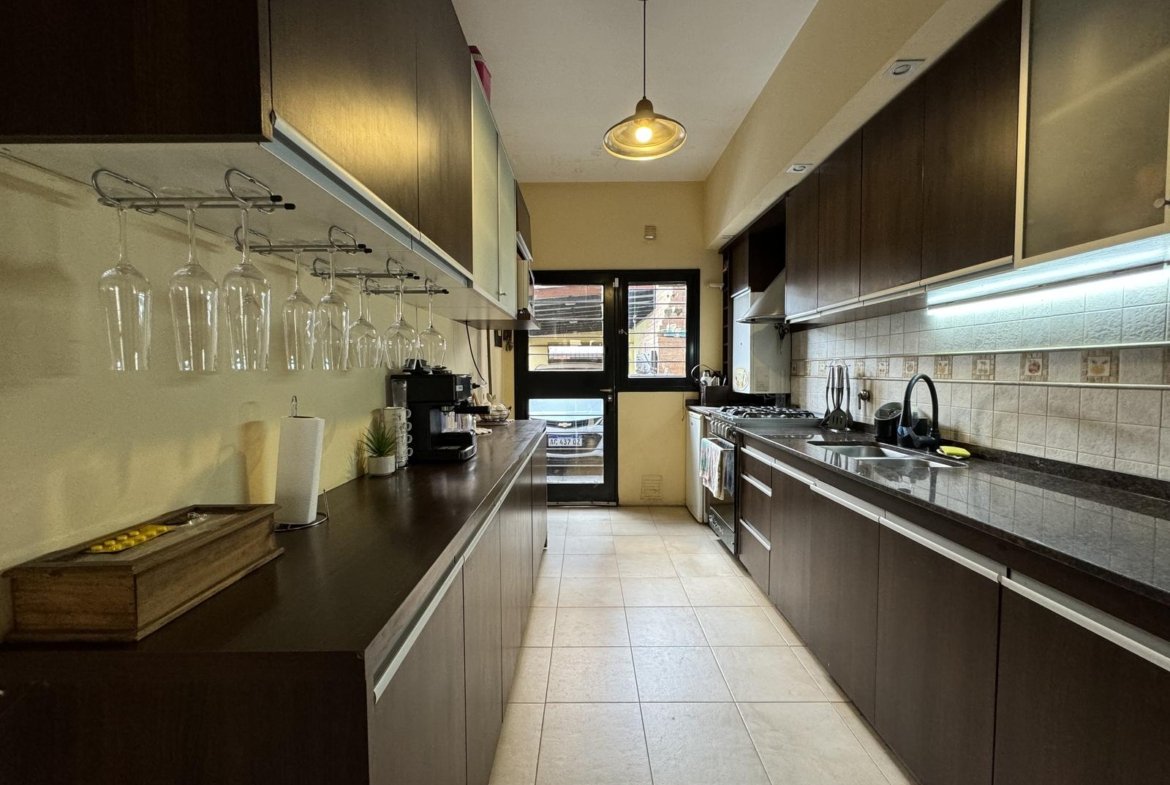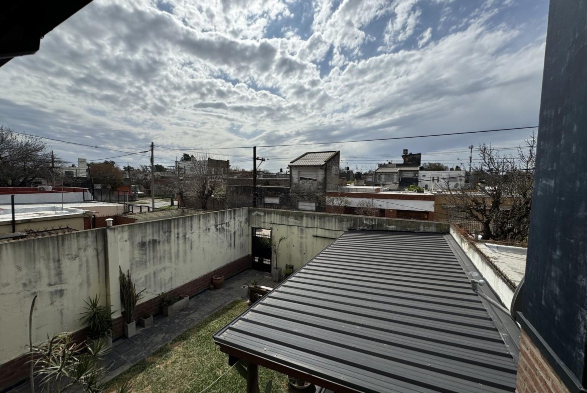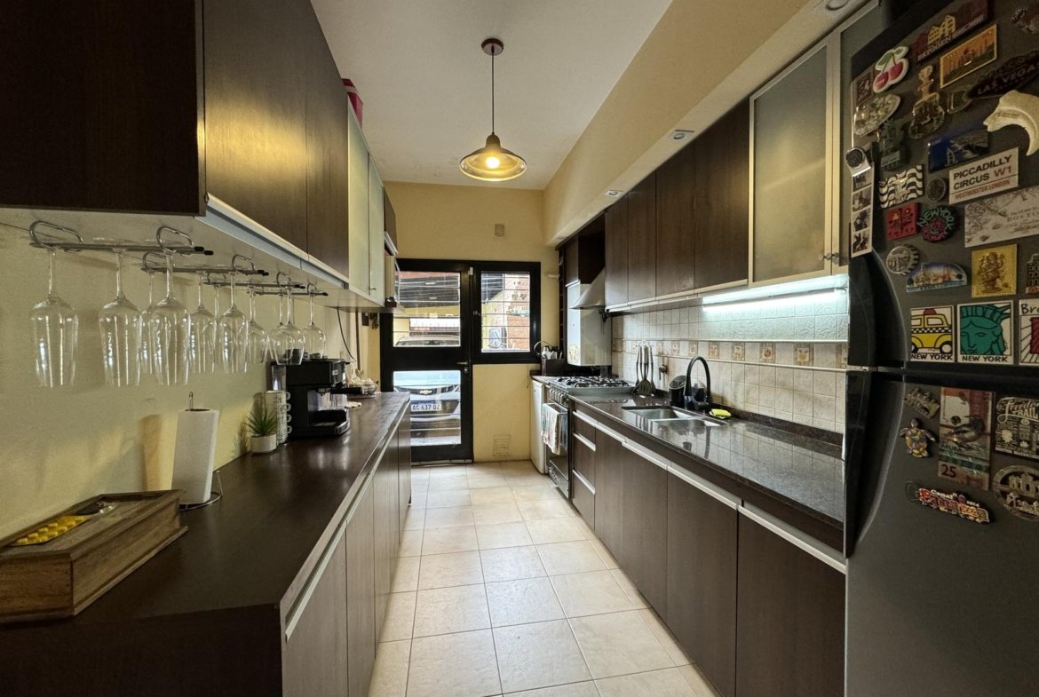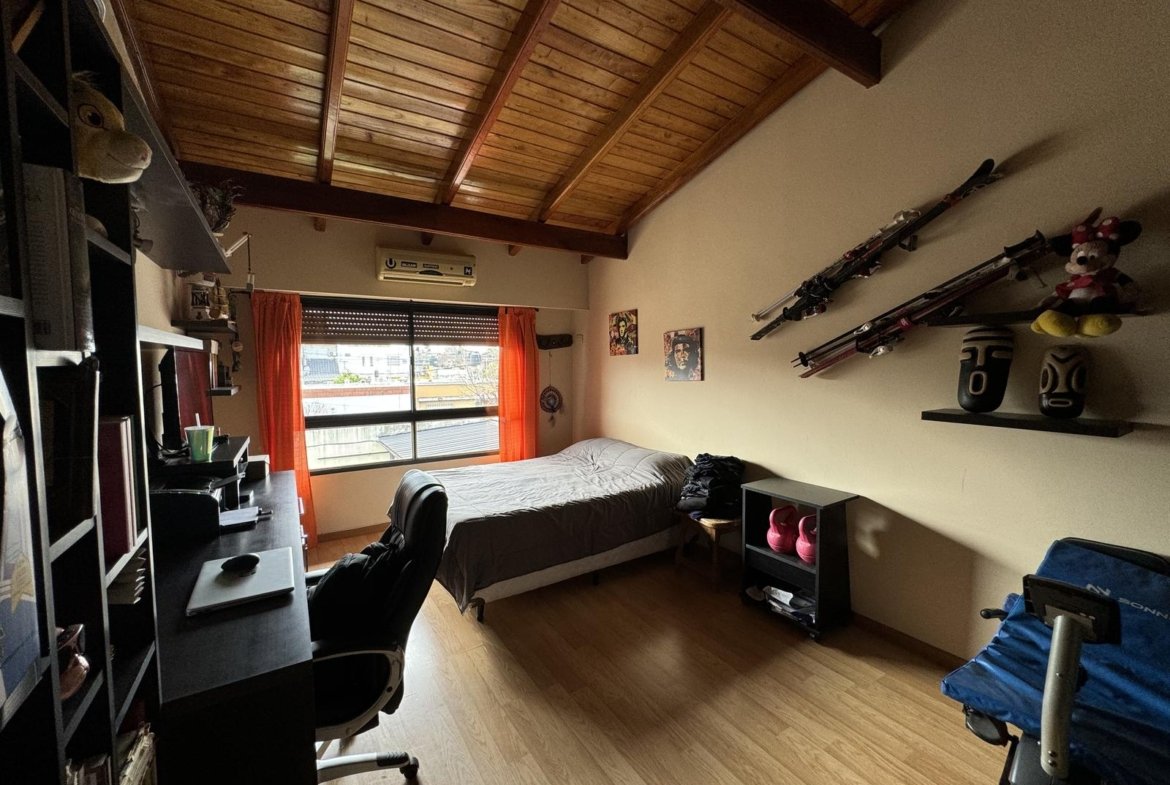 Hermosa propiedad distribuida en 2 plantas, sobre un lote de terreno de 198m2. La propiedad se encuentra recedida de la linea de edificación, primeramente tenemos un jardín, amplia cochera cubierta con espacio para dos vehículos, un parrillero. Dentro de la propiedad, nos encontramos con un hall de recepción, que nos conduce hacia el ambiente social principal. Un estar comedor de generosas dimensionas, con ventilación cruzada, y excelente luminosidad natural. Un hogar a leña hace de este ambiente un espacio ideal para disfrutar en épocas invernales. La cocina, totalmente sectorizada, dispone de amplio espacio de almacenamiento, bajomesada y alacenas y un mobiliario adicional al lateral, mesada de granito, horno a gas con extractor, este sector tiene ventilación natural, y un segundo ingreso. Contiguo a la cocina, un toilette de servicio, y el lavadero. Al fondo del terreno, un patio seco. En planta alta, 3 dormitorios con placard e interiores, asistidos por un baño que se encuentra dividido el sector bañera con ducha con el de sanitarios, en el medio de ambos el vanitory con dos bachas. El dormitorio principal posee vestidor y salida a un balcón.