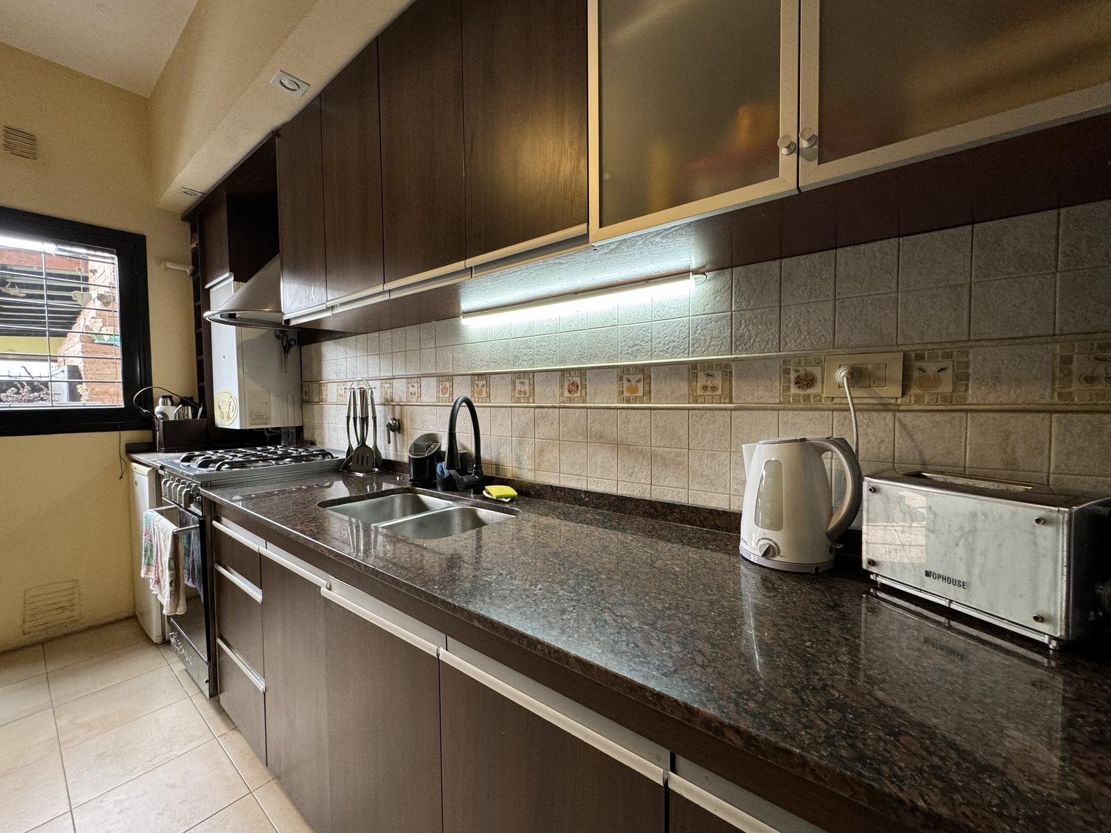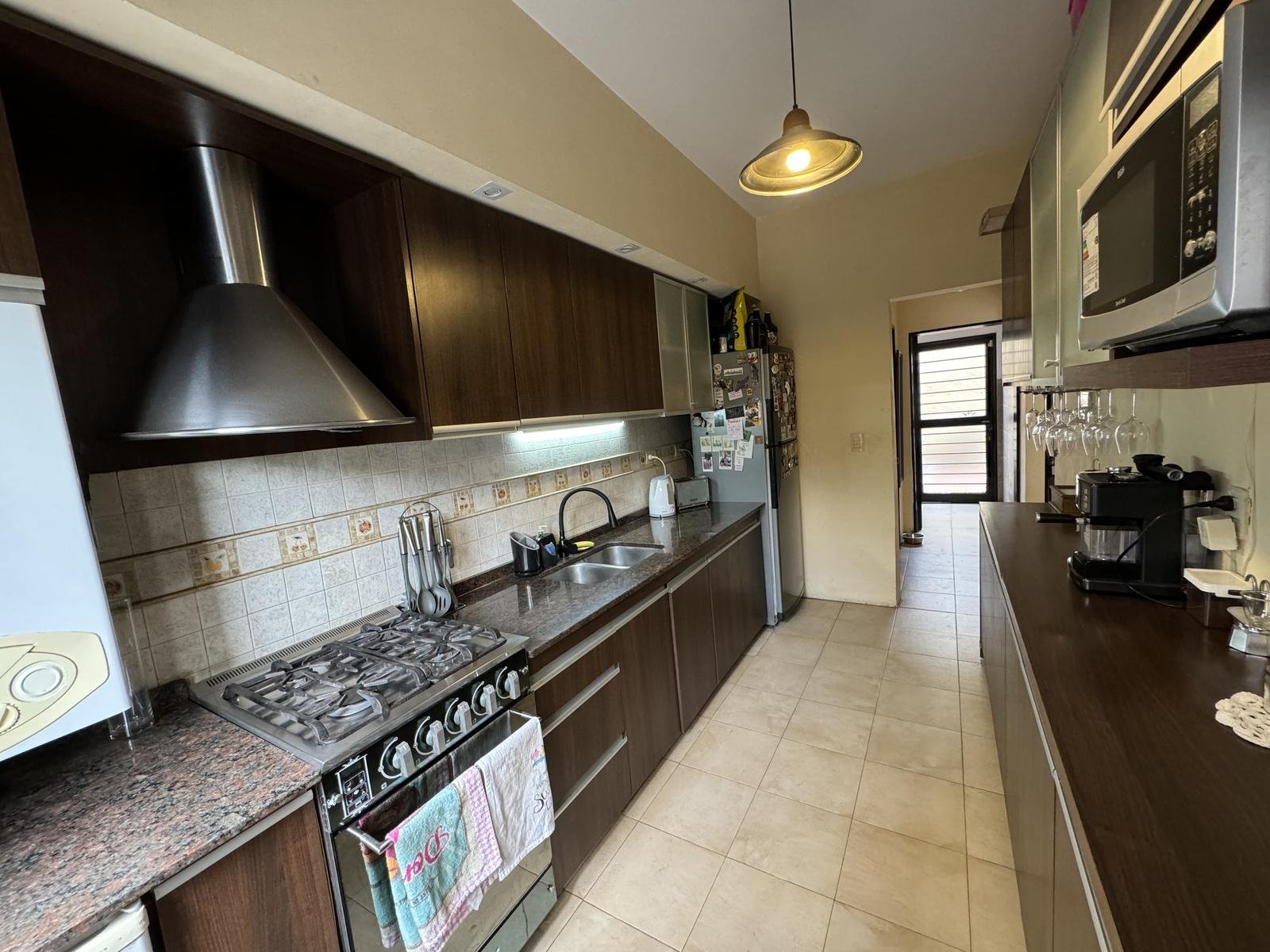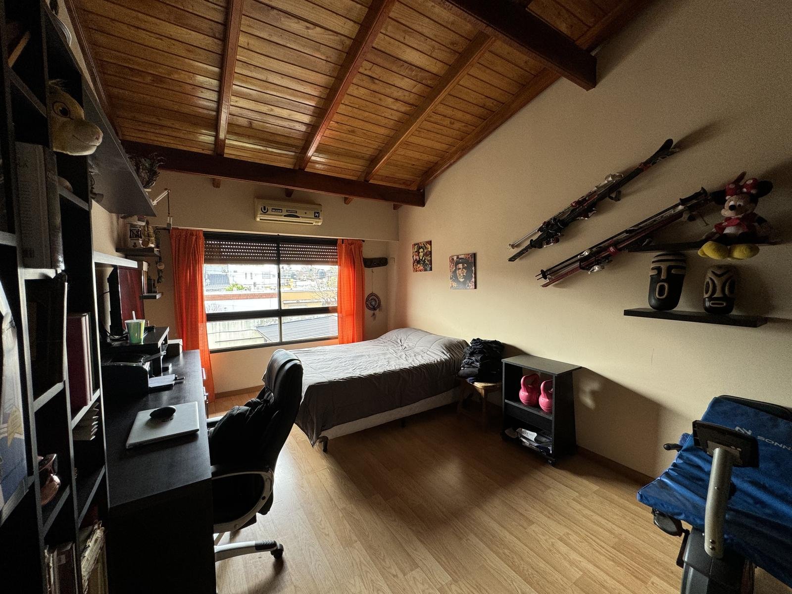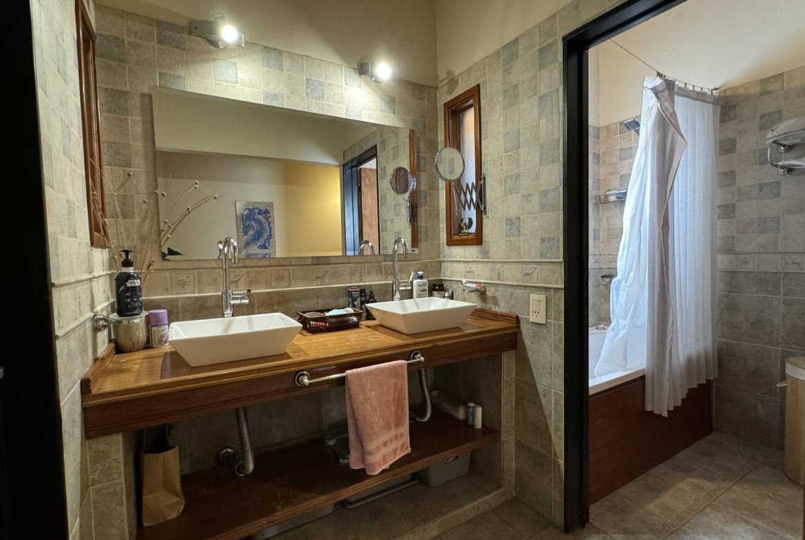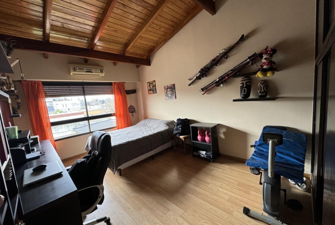 Hermosa propiedad distribuida en 2 plantas, sobre un lote de terreno de 198m2. La propiedad se encuentra recedida de la linea de edificación, primeramente tenemos un jardín, amplia cochera cubierta con espacio para dos vehículos, un parrillero. Dentro de la propiedad, nos encontramos con un hall de recepción, que nos conduce hacia el ambiente social principal. Un estar comedor de generosas dimensionas, con ventilación cruzada, y excelente luminosidad natural. Un hogar a leña hace de este ambiente un espacio ideal para disfrutar en épocas invernales. La cocina, totalmente sectorizada, dispone de amplio espacio de almacenamiento, bajomesada y alacenas y un mobiliario adicional al lateral, mesada de granito, horno a gas con extractor, este sector tiene ventilación natural, y un segundo ingreso. Contiguo a la cocina, un toilette de servicio, y el lavadero. Al fondo del terreno, un patio seco. En planta alta, 3 dormitorios con placard e interiores, asistidos por un baño que se encuentra dividido el sector bañera con ducha con el de sanitarios, en el medio de ambos el vanitory con dos bachas. El dormitorio principal posee vestidor y salida a un balcón.