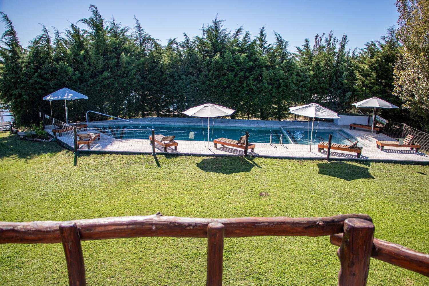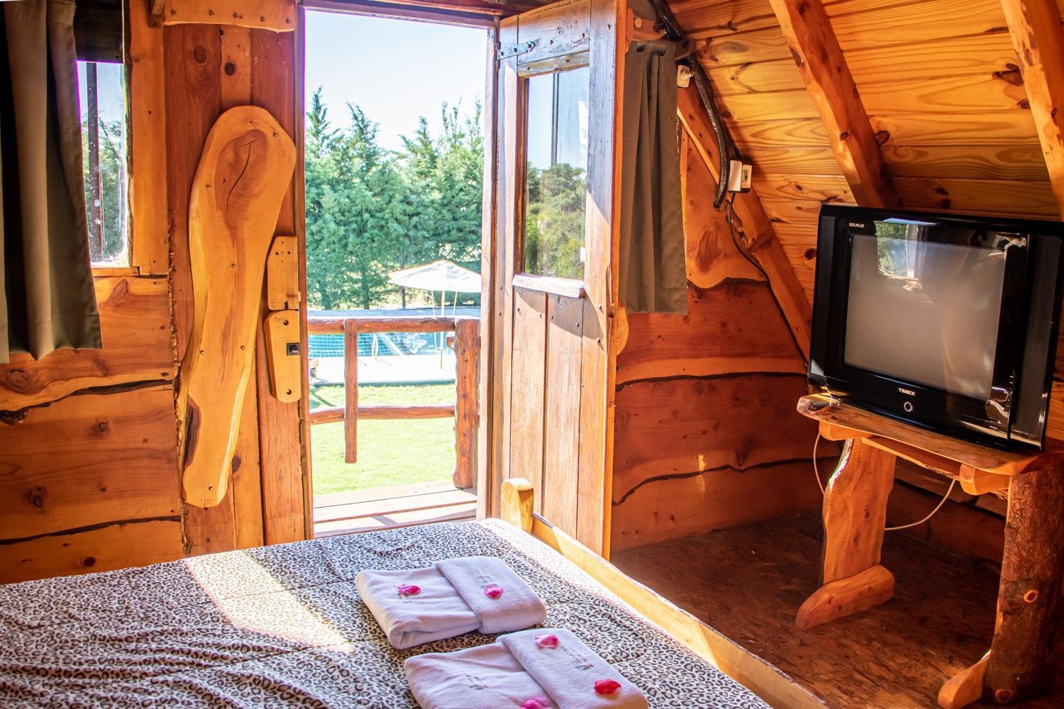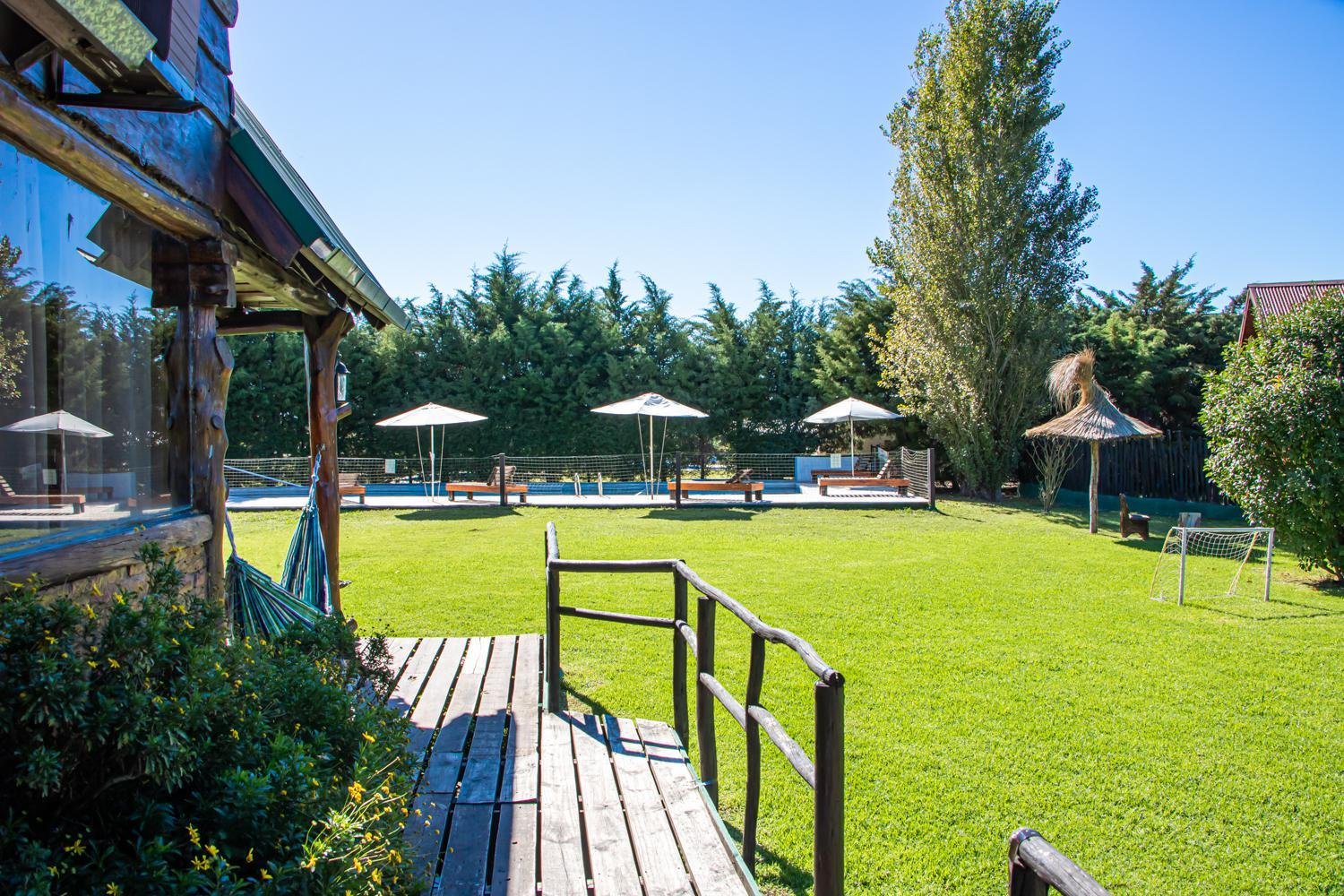 Pileta exterior no climatizada (desde Octubre hasta Semana Santa), solárium, un camastro de madera y una sombrilla por cabaña.