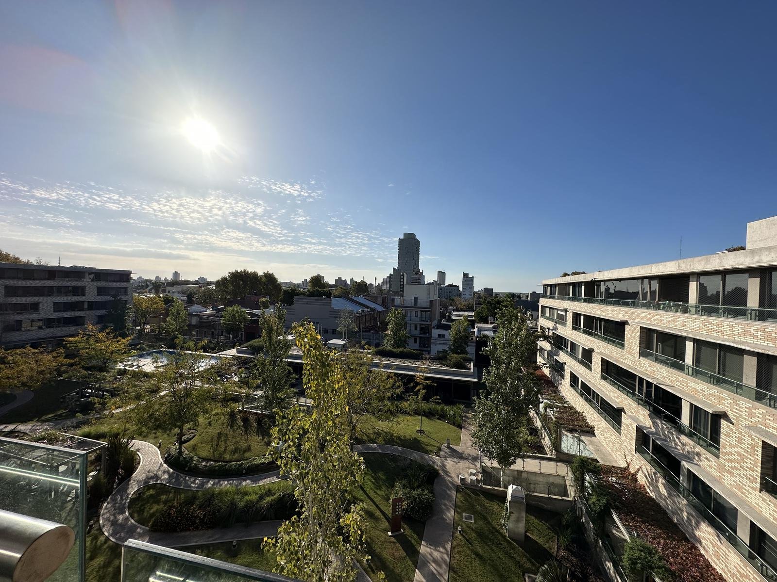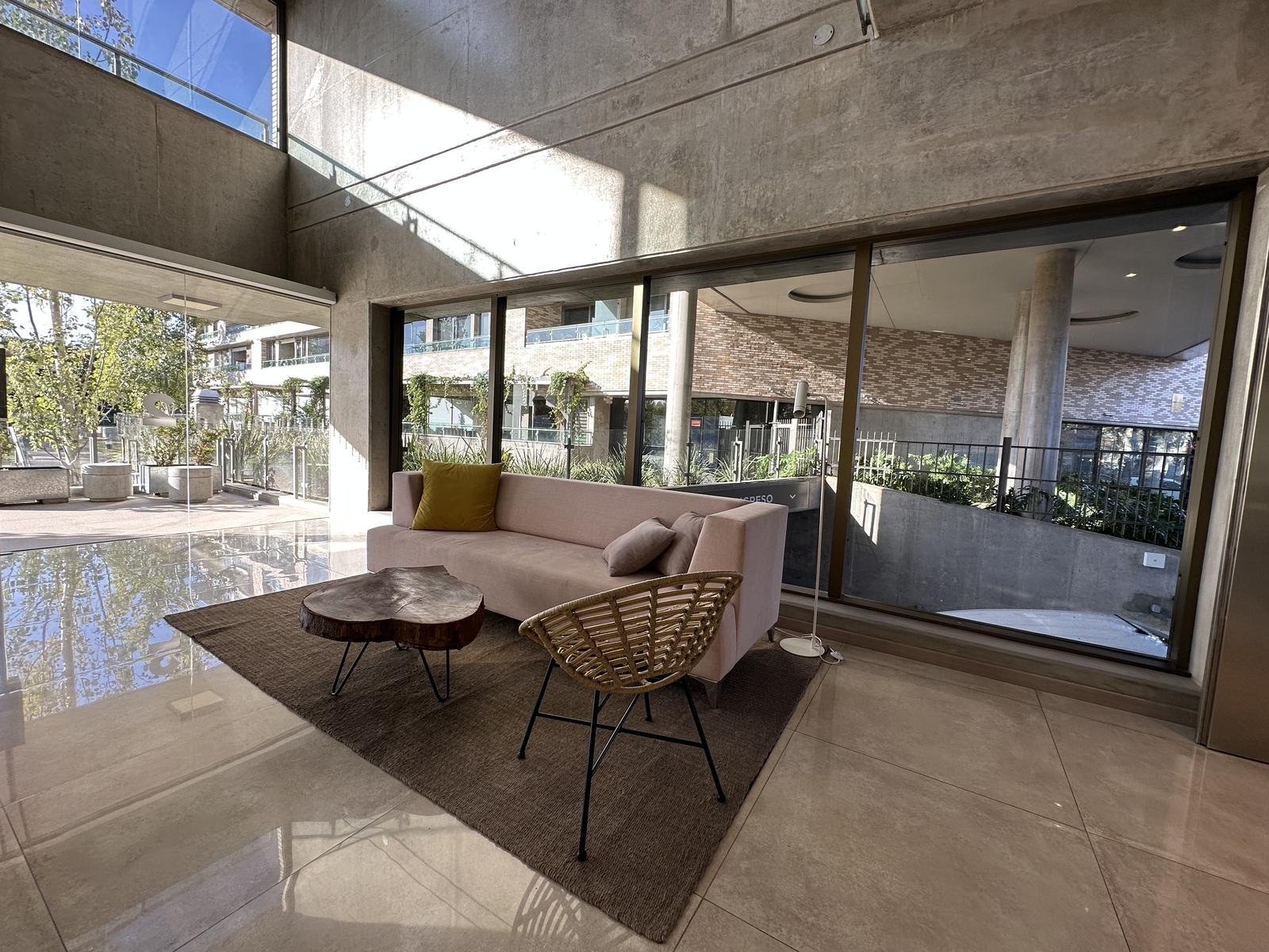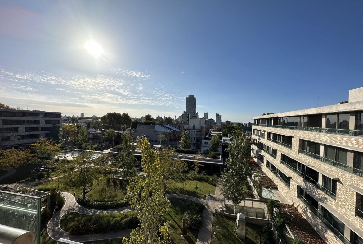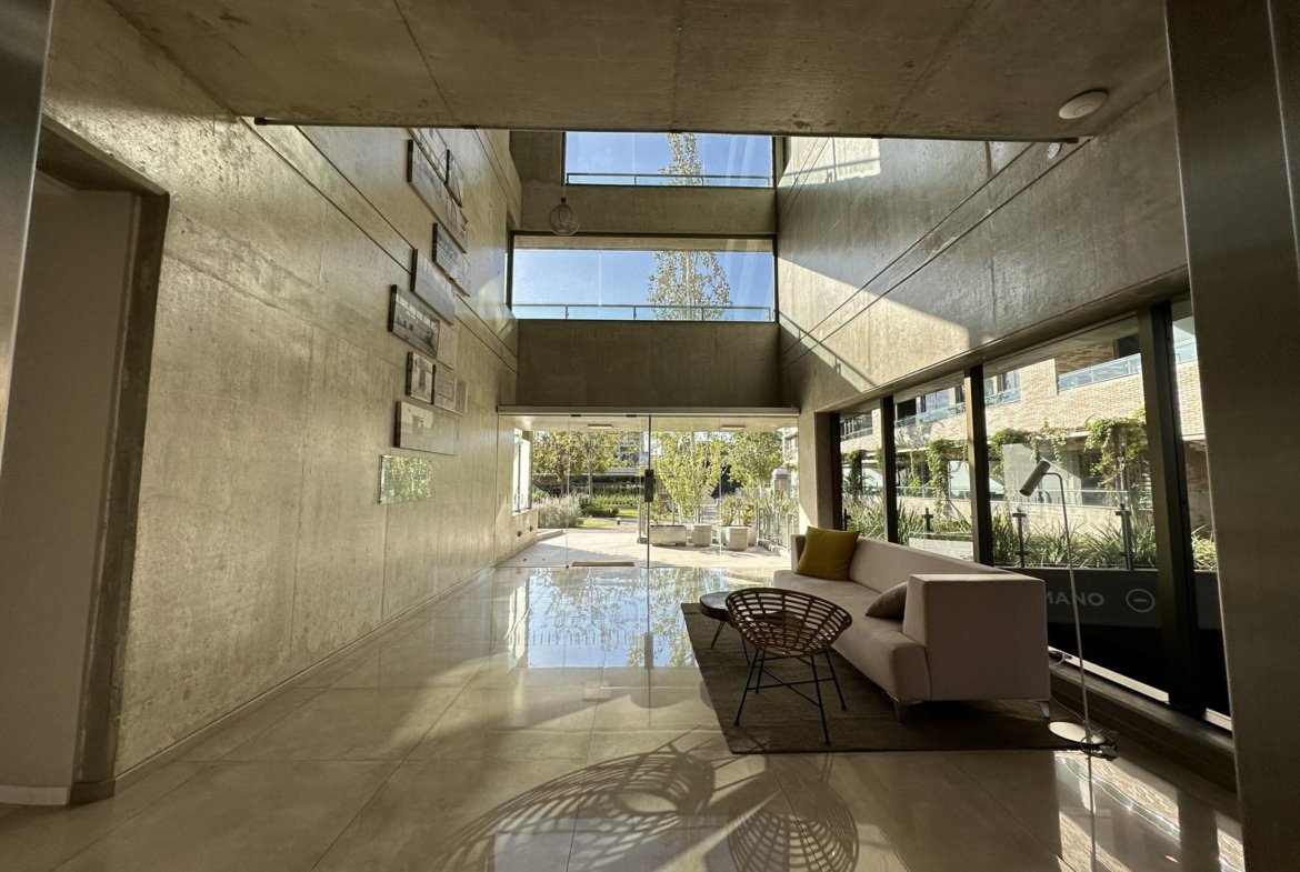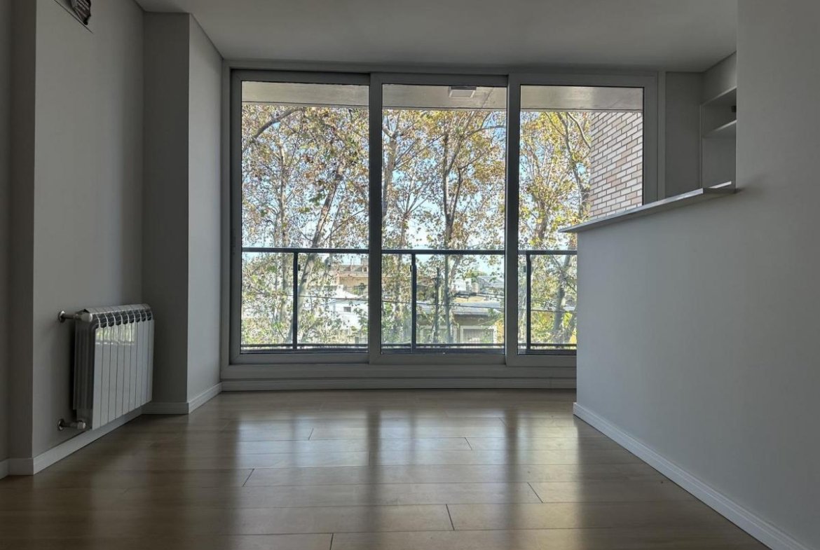 Ingreso al ambiente principal con cocina integrada, con mobiliario de bajo mesada y alacenas, bacha de acero inoxidable, horno y anafe. Ventanales de piso a techo y placar empotrado con interiores. Baño completo con vanitory y duchador, griferías de primera línea. Terminaciones de calidad con aberturas de PVC – doble vidriado hermético, pisos porcelanatos símil madera, aires acondicionados y radiadores. La unidad cuenta con cochera.