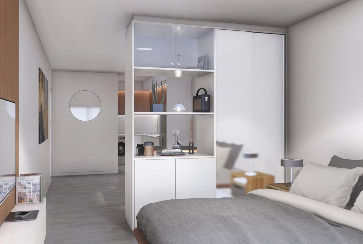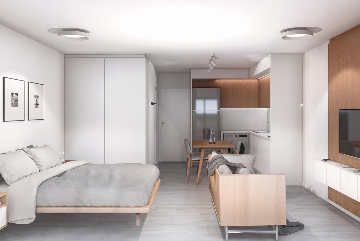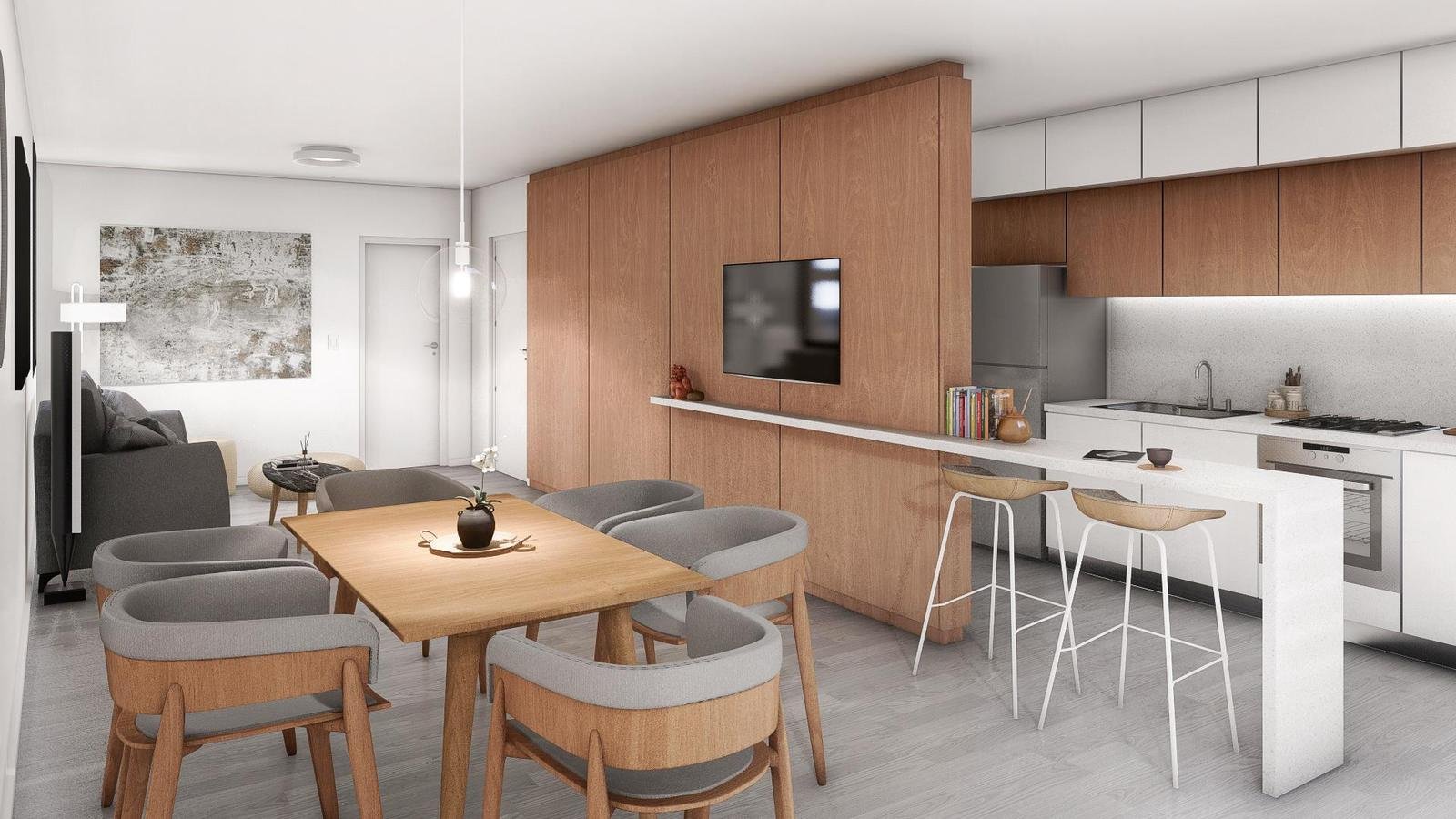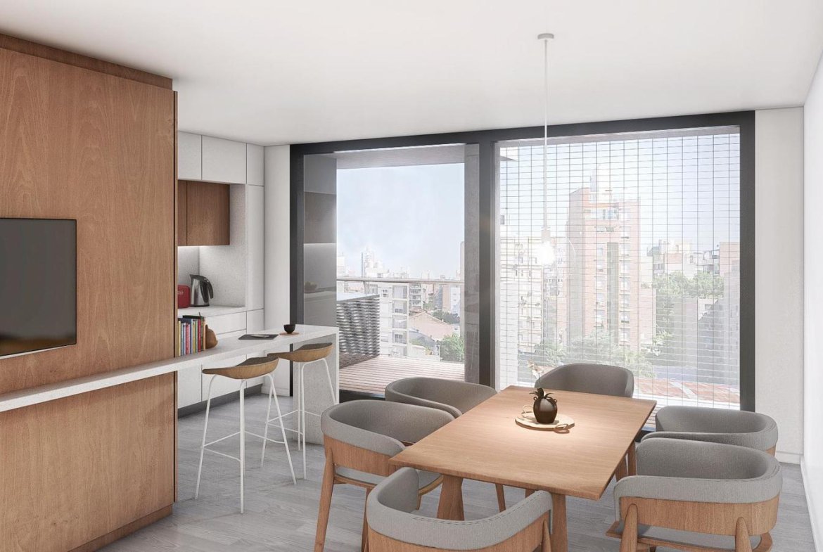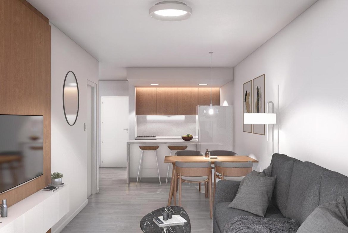 Edificio de excelente diseño y calidad, muy luminoso, cocina integrada al living comedor, dormitorio en suite, dos baños completos.UBICACION