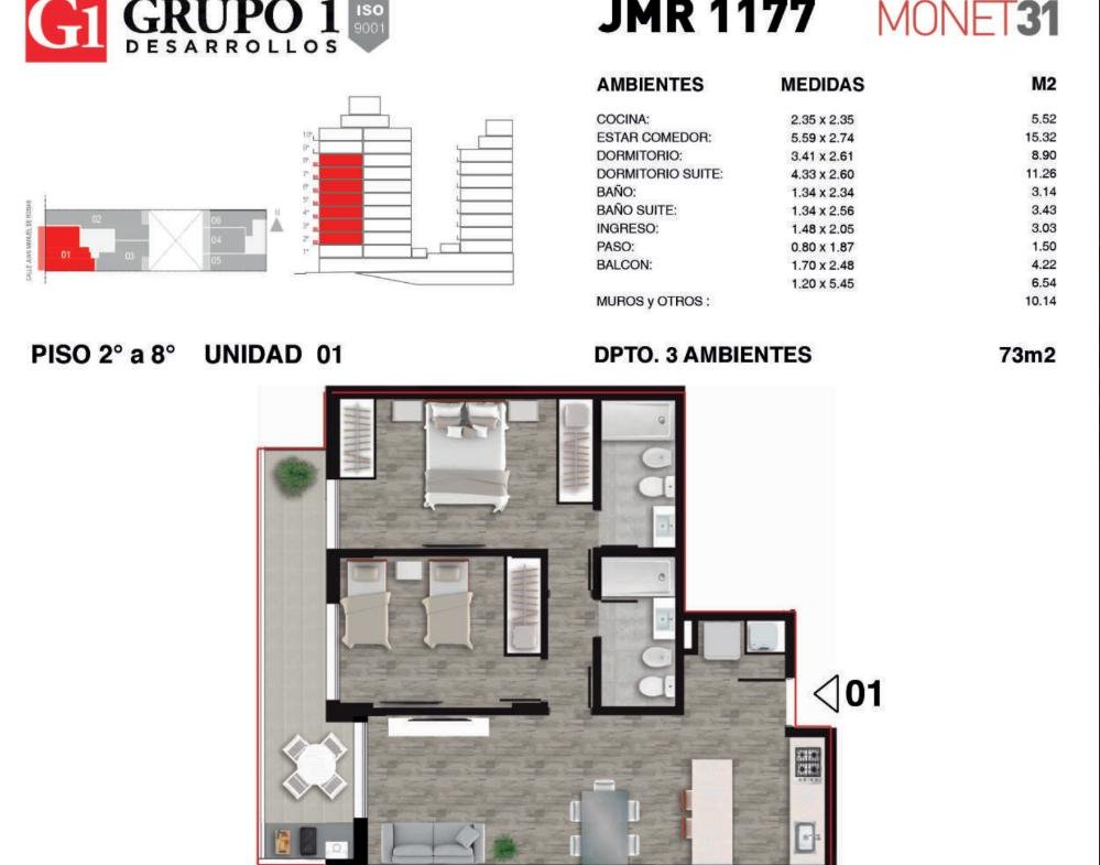 • Área cubierta: 73 M2