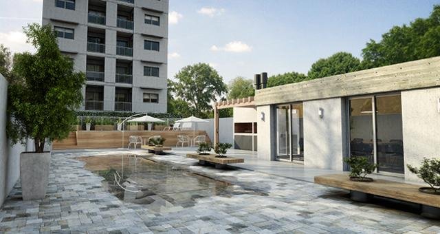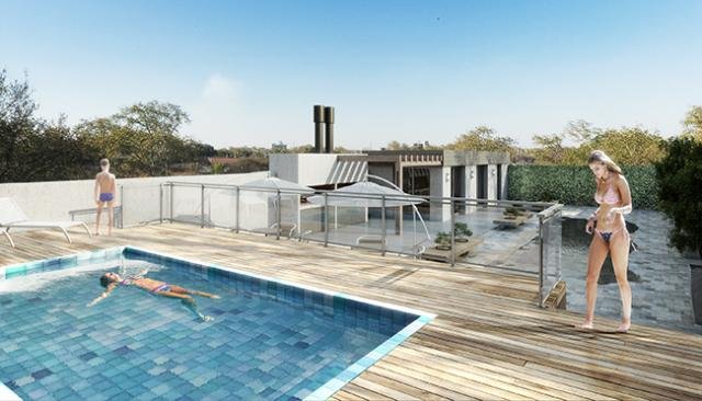 Amenities: piscina con solarium, espejo de agua, amplio espacio verde, quincho y parrillero con pérgola.