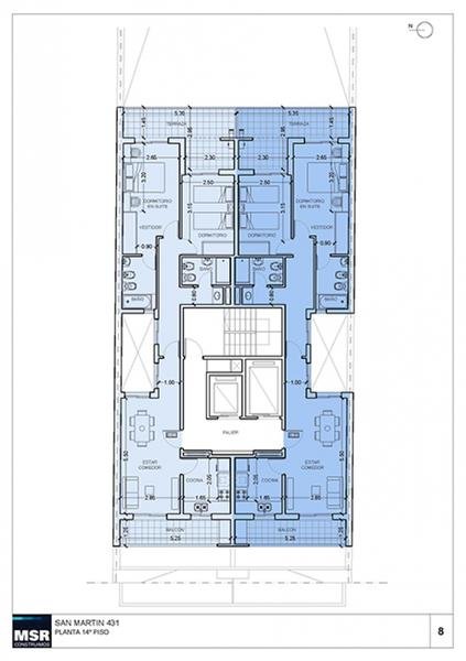 Unidad al frente sobre calle San Martin. Amplio living comedor con cocina separada y salida a un balcón terraza al frente. Dormitorio principal en suite con vestidor y un segundo dormitorio con placard incorporado y espacio para escritorio asistido por un baño completo. Segundo balcón al contrafrente con acceso desde los dormitorios. Lavadero independiente.