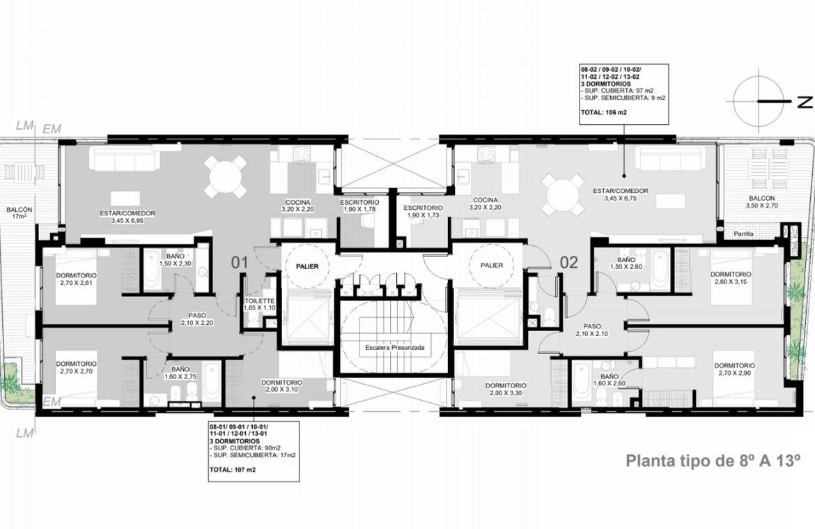 -Ingreso Principal y Espacios Comunes CONTROLES DE ACCESO Y SEGURIDAD CON TECNOLOGÍA DE PUNTA: • Edificio diseñado y monitoreado 24hs mediante sistema de seguridad en tiempo real VIDEOWALL y posibilidad de seguridad con sistema ACUDA mediante móvil privado para algúnsiniestro o preventivo (contratable). • Todos sus espacios monitoreados por camaras de alta definicion con reglas de InteligenciaArtificial, abarcando desde el exterior, palieres, ascensores, espacios comunes, etc; y filmando24hs y a libre disposición de cada usuario. • Video Porteria con pantalla digital, reconocimento facial, táctil o tarjeta de seguridad. • Sensores de humo en espacios comunes y en todas las unidades internas con posibilidad demonitoreo (contratable) • Botón de pánico en sectores estratégicos. • Pantalla táctil en unidades y espacios comunes situadas en espacios estratégicos paravisualización de cámaras e intercomunicación entre todo el edificio. • Wifi gratuito en espacios comunes – Ascensores • Dos equipos de última generación y alta velocidad con terminaciones en acero y vidrio y con panel táctil. – Gimnasio • Gimnasio equipado con tecnología de avanzada. – SUM • Equipamiento full para workspace y espacio de relax. • Sector kids y espacio de encuentro equipados – Cochera • Bicicleteros con espacio de guardado. • Sector de bauleras. • Conexión individual para carga de monopatín eléctrico – Azotea de Uso Comun • Azotea de uso común con quincho abierto, equipado con baño. • Sector de esparcimiento y solárium. • Sector de relax equipado con mobiliario y fogonero. • Piscina lounge en altura de 8.50 x 2.50m (medidas estimadas). • Sector de relax equipado con mobiliario y fogonero. MUROS Y TERMINACIONES • Doble muro compuesto aislado para máxima calidad térmica. • Terminación con yeso en paredes y cielorraso ABERTURAS •Cerramiento de aluminio o similar de alta prestación con vidrios DVH (doble vidriado hermético) PUERTAS •Puerta de seguridad de ingreso a departamentos con tecnología de avanzada y cerradura Smart bluetooth. •Puertas interiores de alta prestación con marcos y hoja de WPC, con herrajes de tecnología, hermeticidad y alto peso específico MOBILIARIO DE COCINA •Alacenas y bajo mesadas de diseño: MDF 18mm laminados con filos de PVC, zócalos de acero inoxidable o similar. •Iluminación en mobiliario. •Mesadas de diseño . •Bacha de acero inoxidable con griferías. •Horno embutido y anafe separados sobre mesada. •Espacio provisto para purificadores de aire. •Mobiliario para lavarropas y termotanques. EQUIPAMIENTO DE BAÑO •Sanitarios y griferías de primera marca. •Bañera sin mampara o receptáculo de ducha. •Vanitory de diseño o mesada de mármol con bacha de apoyo. •Accesorios de baños y espejo retroiluminado. •Diseños en cielorraso con iluminación difusa. BALCONES •Canteros integrados a la estructura del edificio, provistos de vegetación y automatizados con riego por goteo. •Estructuras metálicas con vegetación. •Iluminación en cielorraso. •Provisión de canilla de servicio de agua. •Provisión de toma de electricidad. •Parrillero a carbón en balcones de unidades: PISO 2º A 7º: UNIDAD 03 Y 04 PISO 8º A 13º: UNIDAD 02 PISO 14º