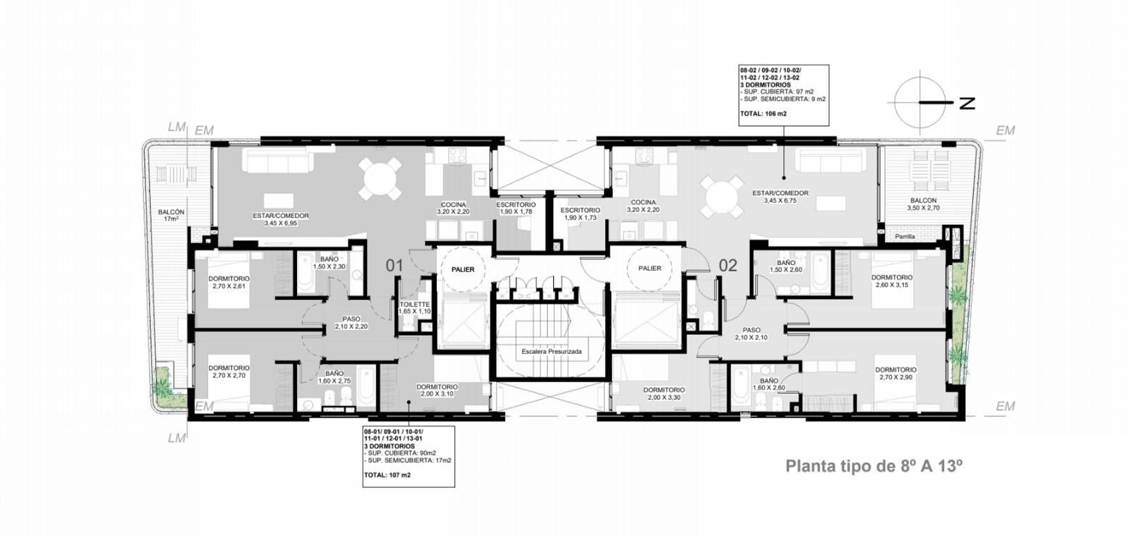 El desarrollo constará de un total de 14 pisos, los cuales albergarán unidades que van desde 1 hasta 4 dormitorios, adaptandose de esa forma, a cada una de las necesidades de cada residente. El edifcio contará con tres niveles de cocheras, incluyendo dos subsuelos y una planta baja. Por otro lado, el emprendimiento se caracteriza por las comodidades, las facilidades y espacios de esparcimiento que lograrán que cada vecino pueda desarrollar diferentes actividades dentro del mismo edificio dentro de un entorno armonioso y de manera sustentable, priorizando espacios comunes en un entorno verde y amigable con el medio ambiente. En este sentido, la Planta Baja contará con un local comercial, junto con cocheras y bauleras. En el primer piso habrá una oficina al frente, mientras que en la parte trasera se encontrará una zona de amenities premium que contará con un espacio de encuentro versartil que podrá emplearse como área de coworking o para desarrollar actividades recreativas y una zona de juegos para niños. Además en esta planta, se dispondrá un gimnasio totalmente equipado y un spa con solarium. En la terraza del edificio se podrá disfrutar de una pileta panorámica, un amplio solarium, un quincho semicubierto, y un living fogonero. Así mismo, en el desarrollo habrá unidades que cuenten con parrillero en los balcones brindando a los residentes la oportunidad de disfrutar de la cocina al aire libre y las vistas panorámicas.