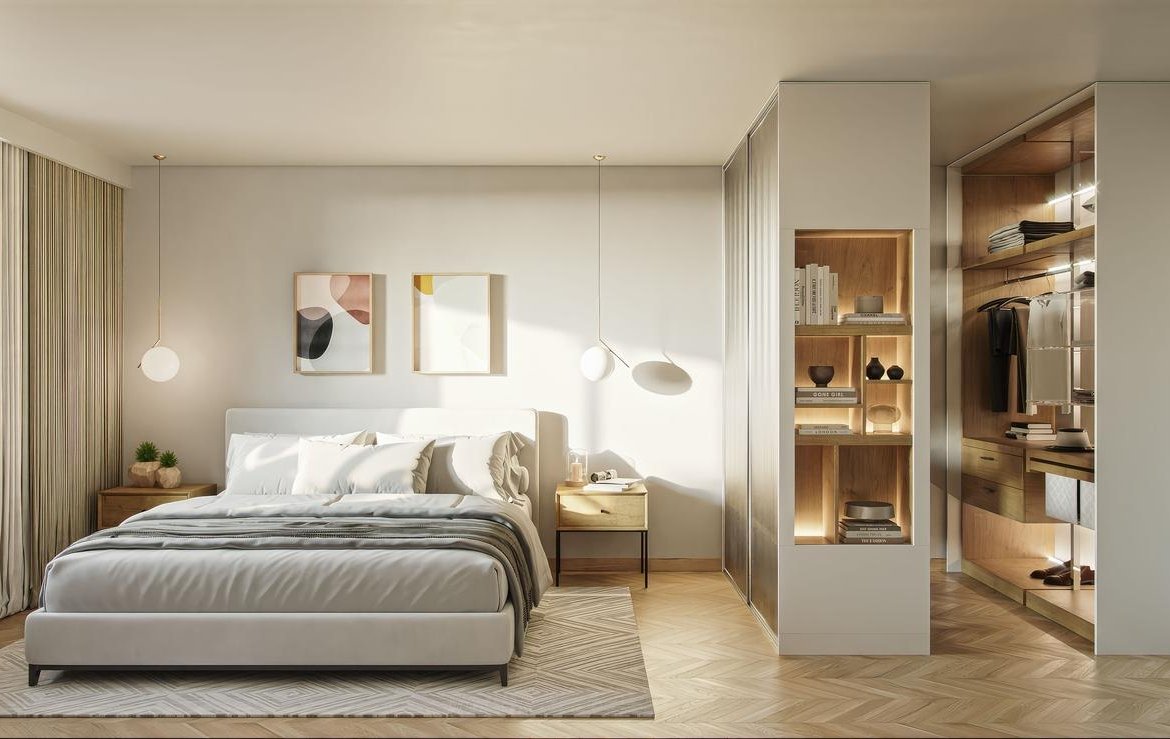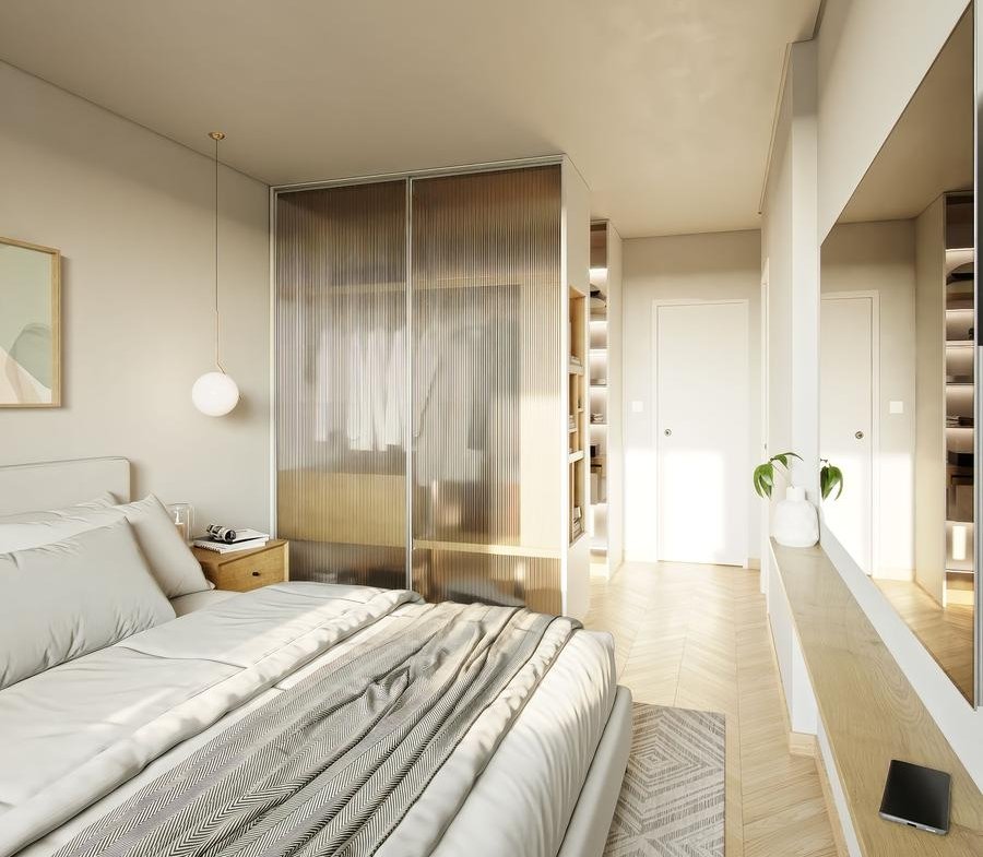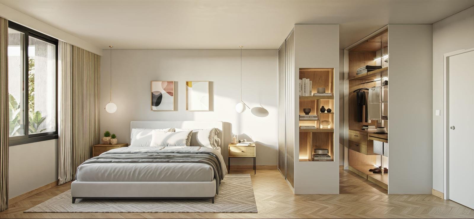 El dormitorio principal de la unidad se dispone en suite con baño completo con bañera y, a su vez, cuenta con sector de vestidor. Segundo dormitorio de buenas dimensiones con placares completos con interiores. Segundo baño completo.