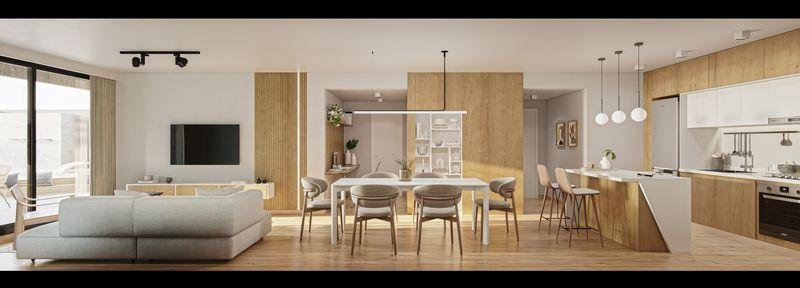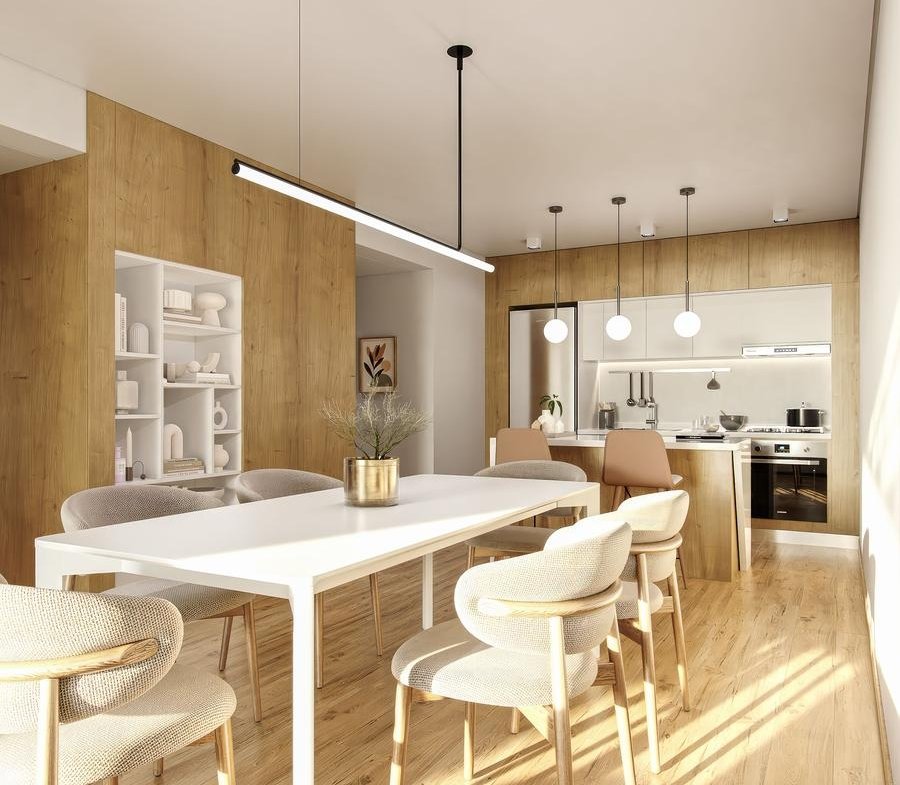 La propiedad se ubica en el primer piso hacia el contrafrente del edificio. Al acceder a la unidad nos encontramos con un hall de ingreso que nos comunica con el sector de cocina que se encuentra semi integrada con el living y separada por una isla. A su vez, la cocina cuenta con horno empotrado y anafe a gas, mesadas de silestone y mobiliario de primera calidad con iluminación en los mismo.