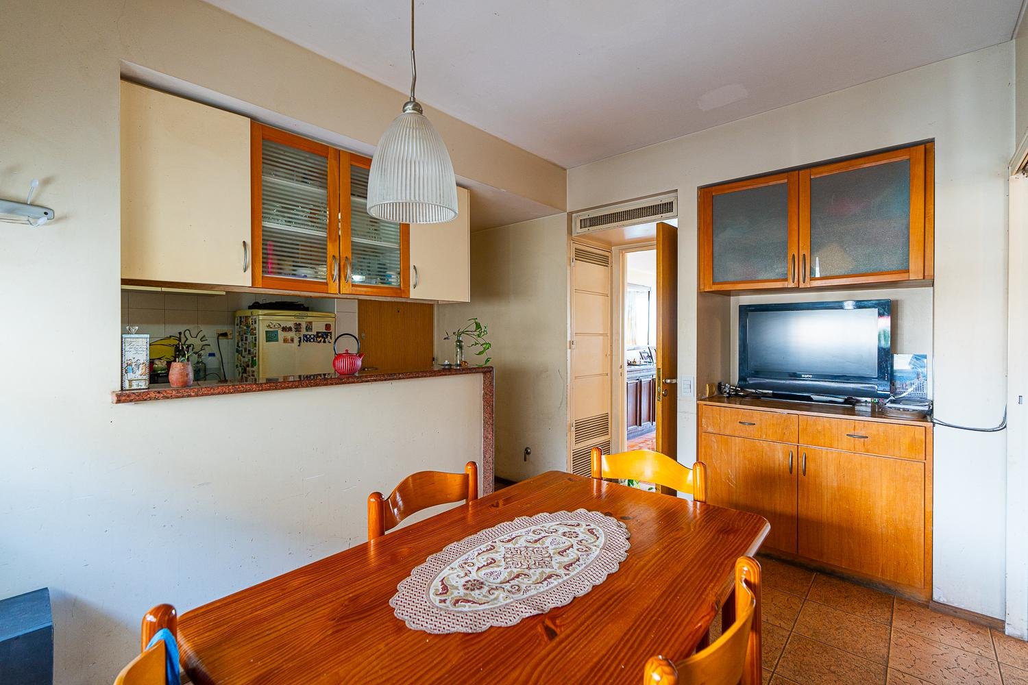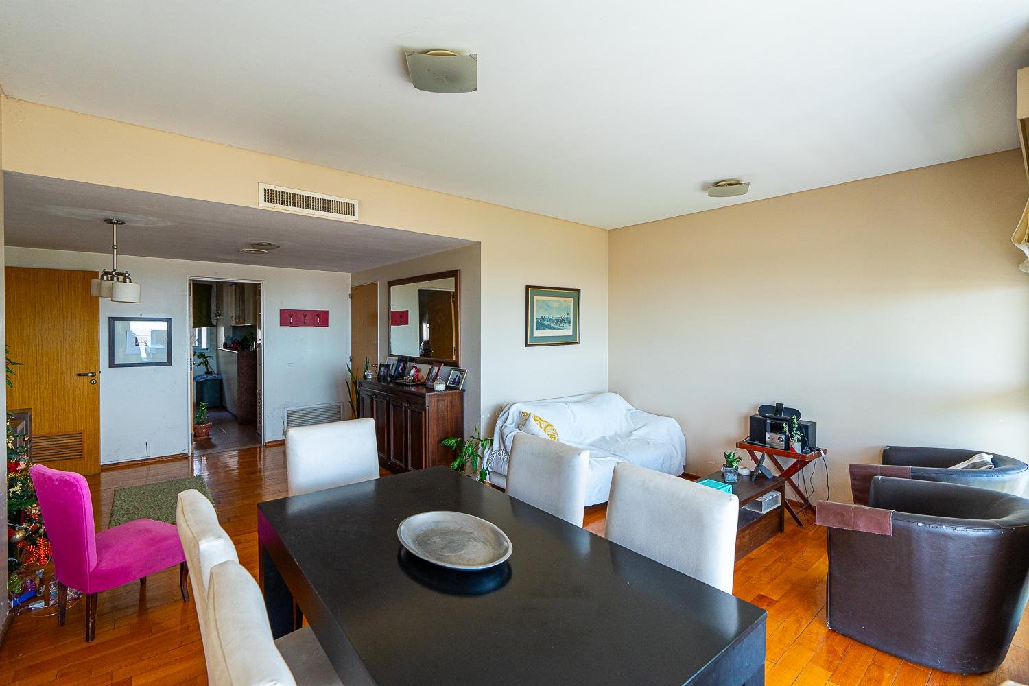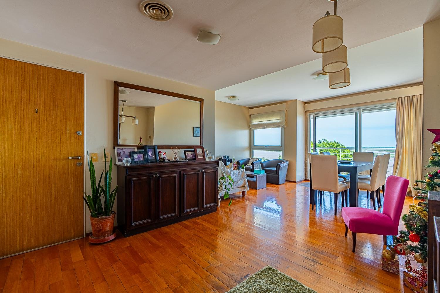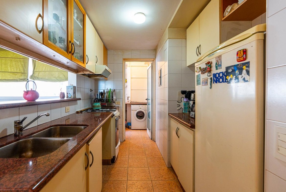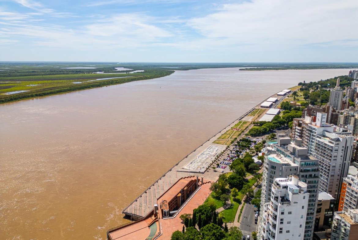 El departamento cuenta con doble ingreso por dos ascensores. Al ingresar, se encuentra un amplio living-comedor con balcón al frente y vista franca despejada al rio, esto genera que todo el ambiente sea muy luminoso. Además la unidad cuenta con un comedor diario con cocina separada, lavadero en el balcón al contra frente con vista semi despejada que continua la cocina,