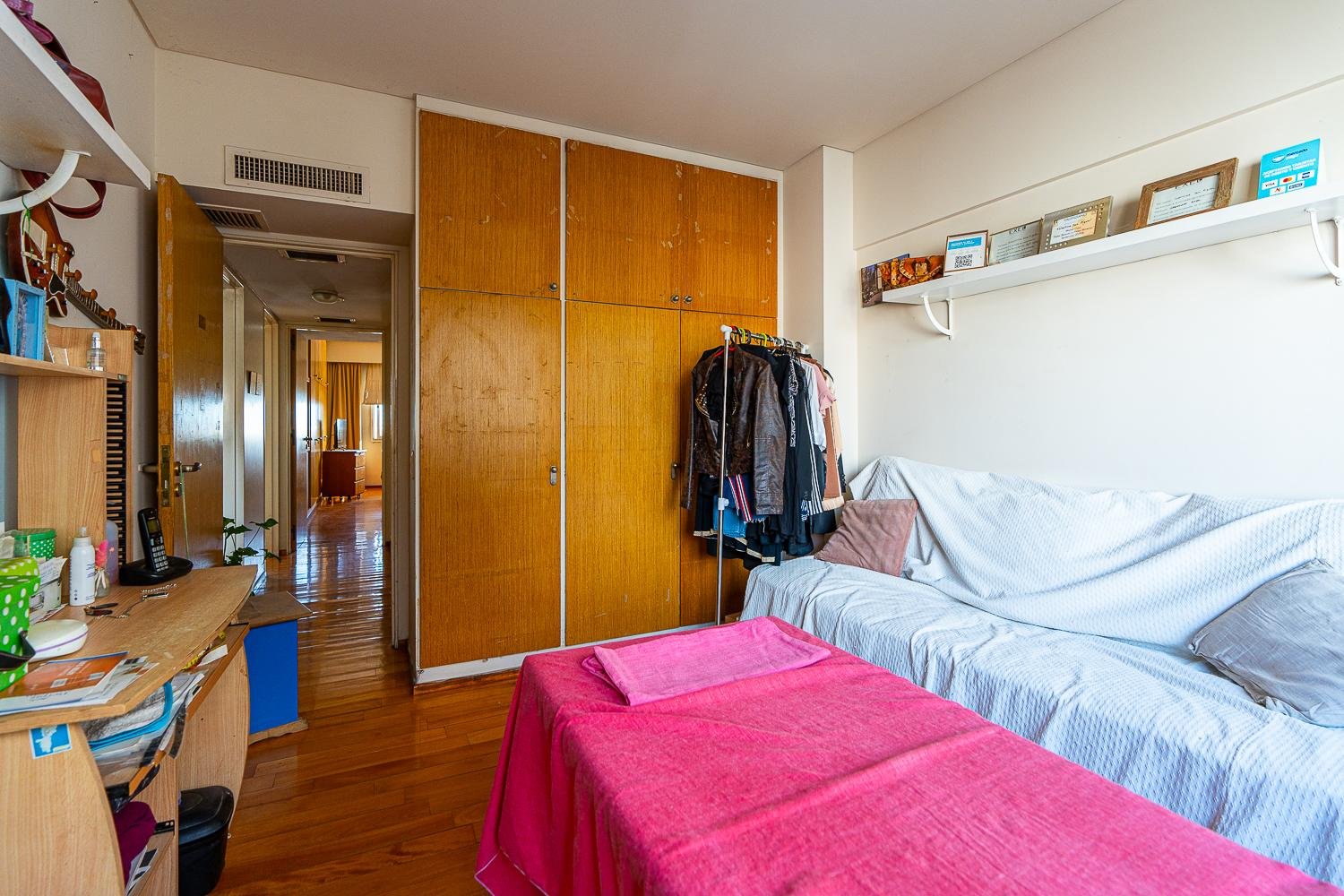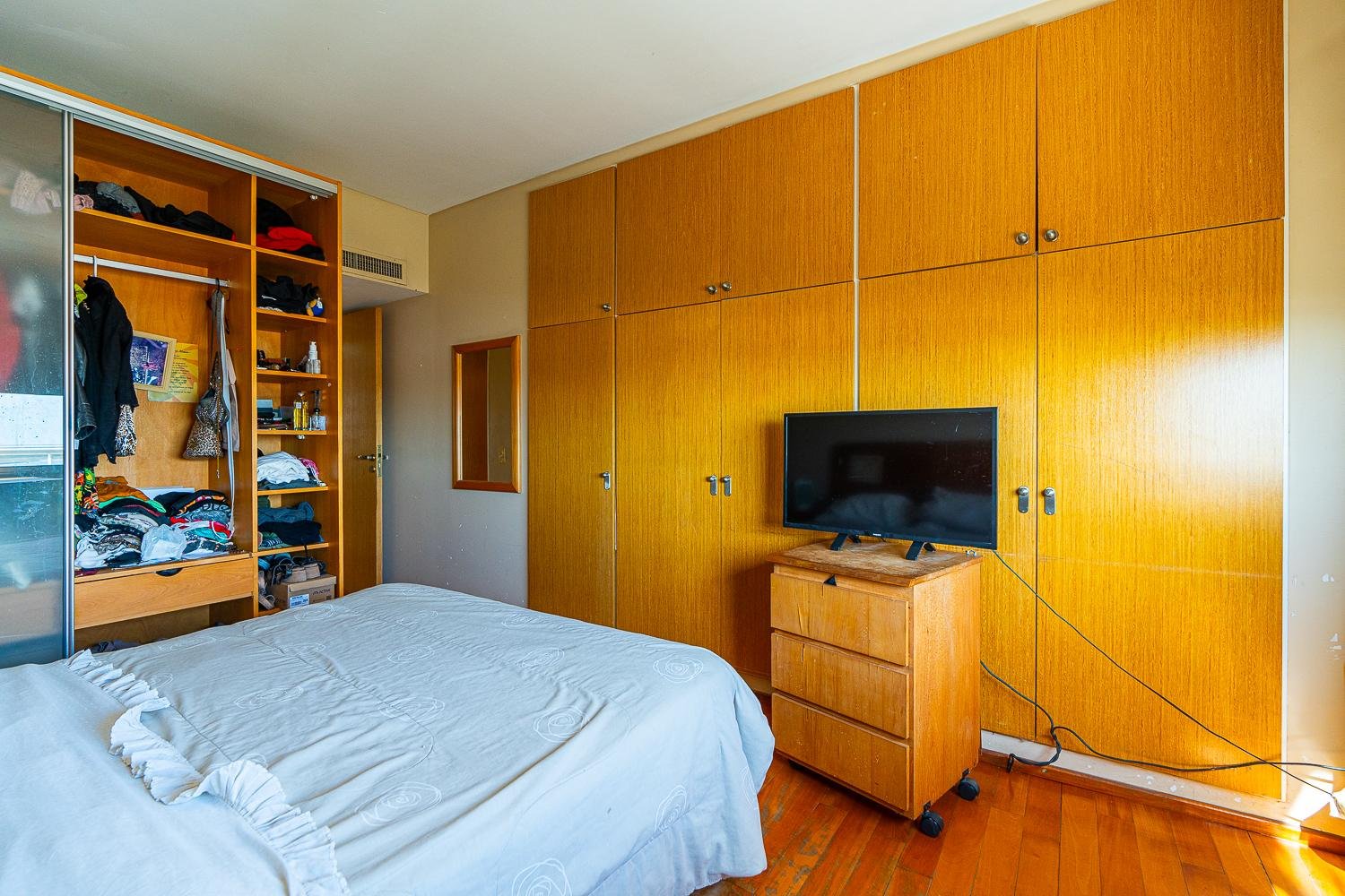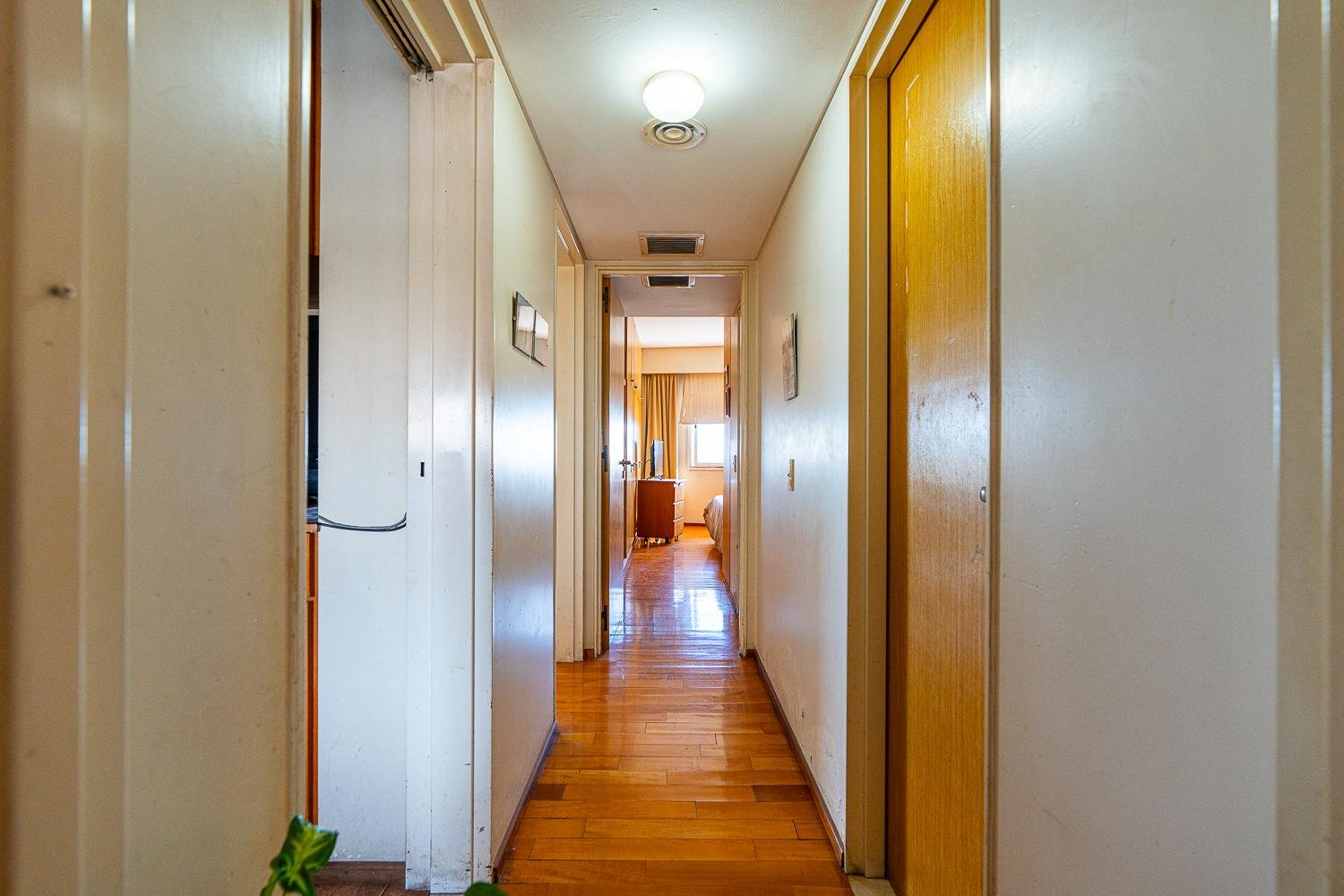 Pasando al intimo nos encontramos con 2 dormitorios, 1 al frente con vista al rio , placares empotrados y baño en suite y al contra frente 1 dormitorio, un baño completo. La unidad posee calefaccion como acondicionador frio central en todo el departamento.