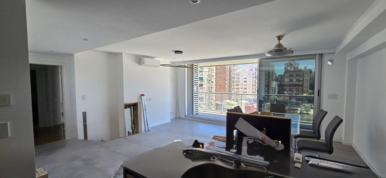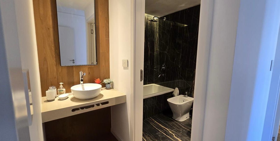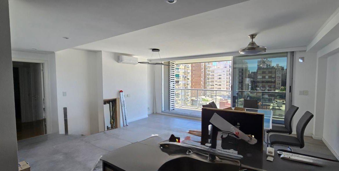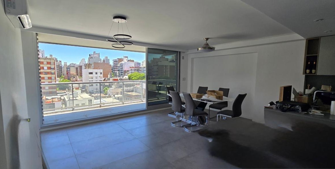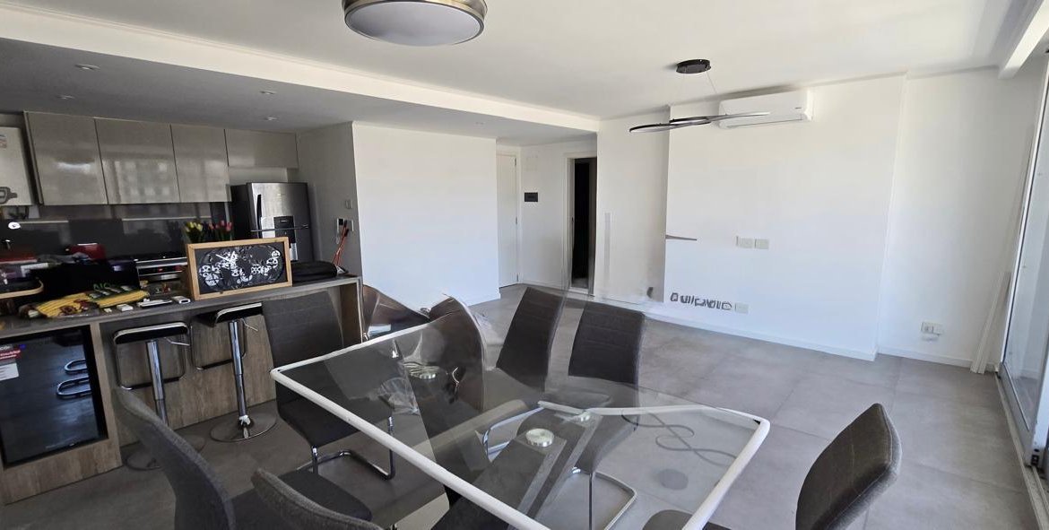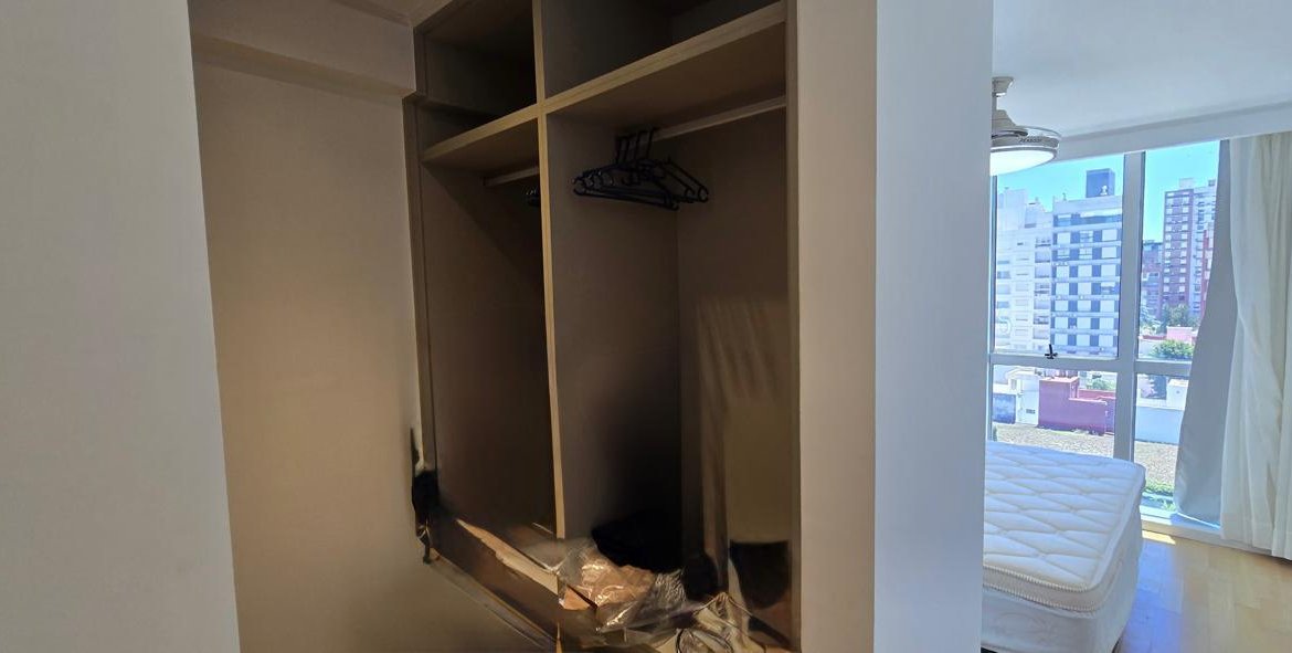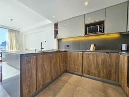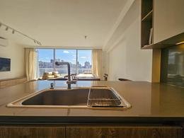 Dos dormitorios. Principal en suite con vestidor. Ingreso por sector social abierto hacia el Norte. Cocina integrada en isla equipada con minibar y mobiliario moderno completo. Instalación para lavavajillas y lavarropas. Barra desayunadora. Sector social de living y comedor con salidas al gran balcón con piel de vidrio corrido al frente y visuales abiertas a la ciudad. Paso a los íntimos con ante baño y baño principal con bañera. Dormitorio con salida hacia el balcón y placares completos. Unidad equipada con mobiliario de diseño personalizado.